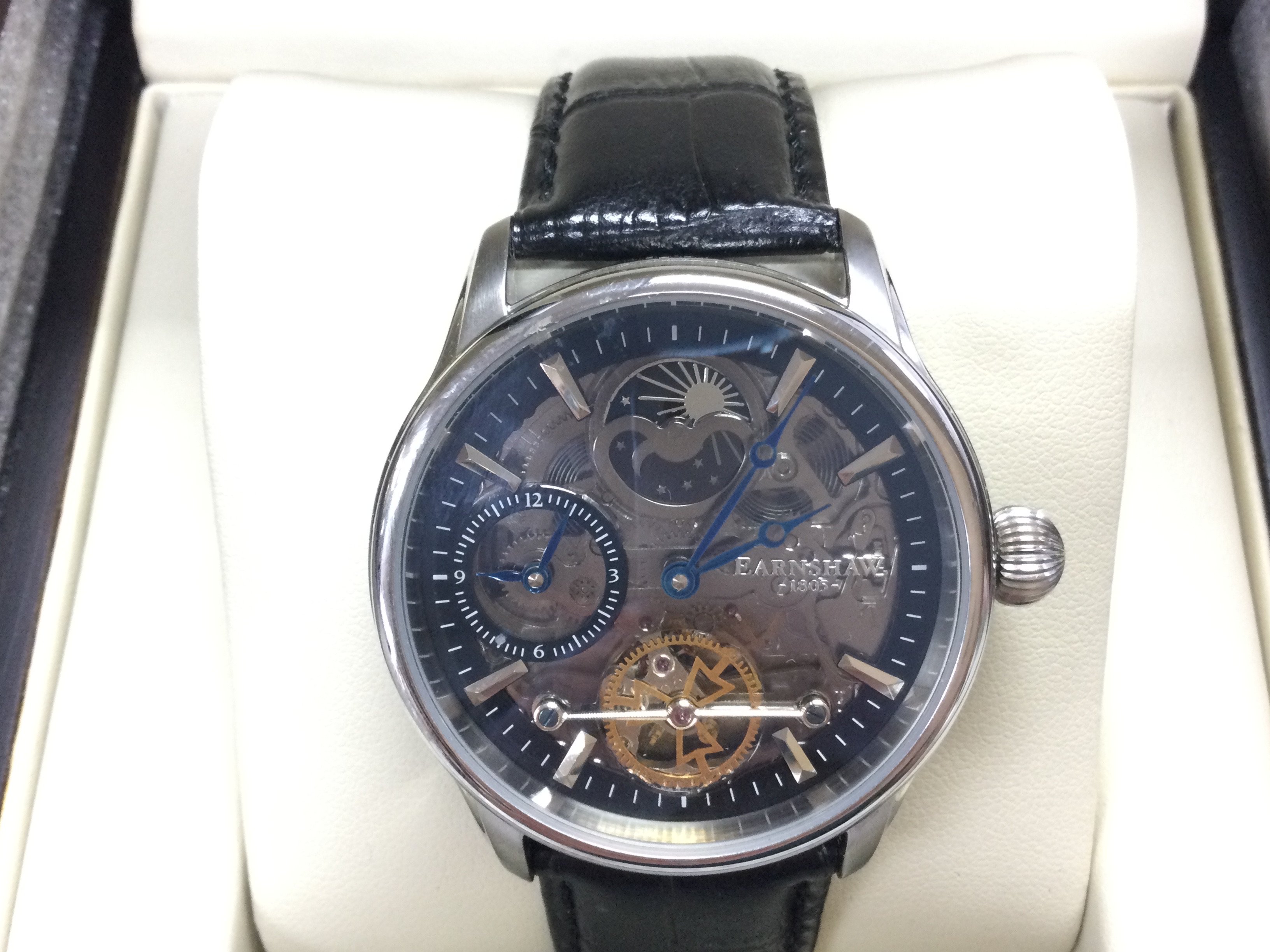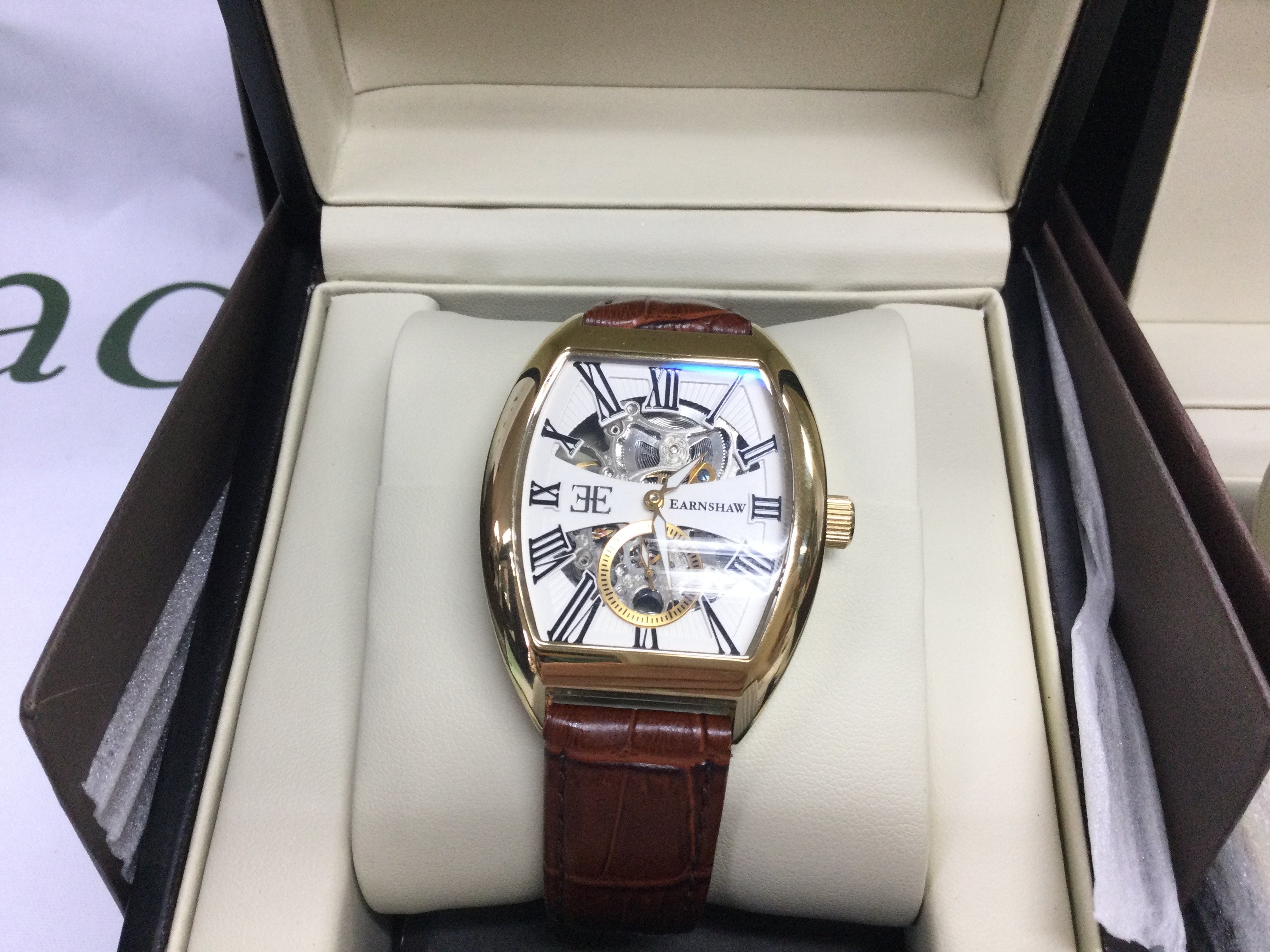 Two Earnshaw wrist watches including boxes both seen running. Postage B