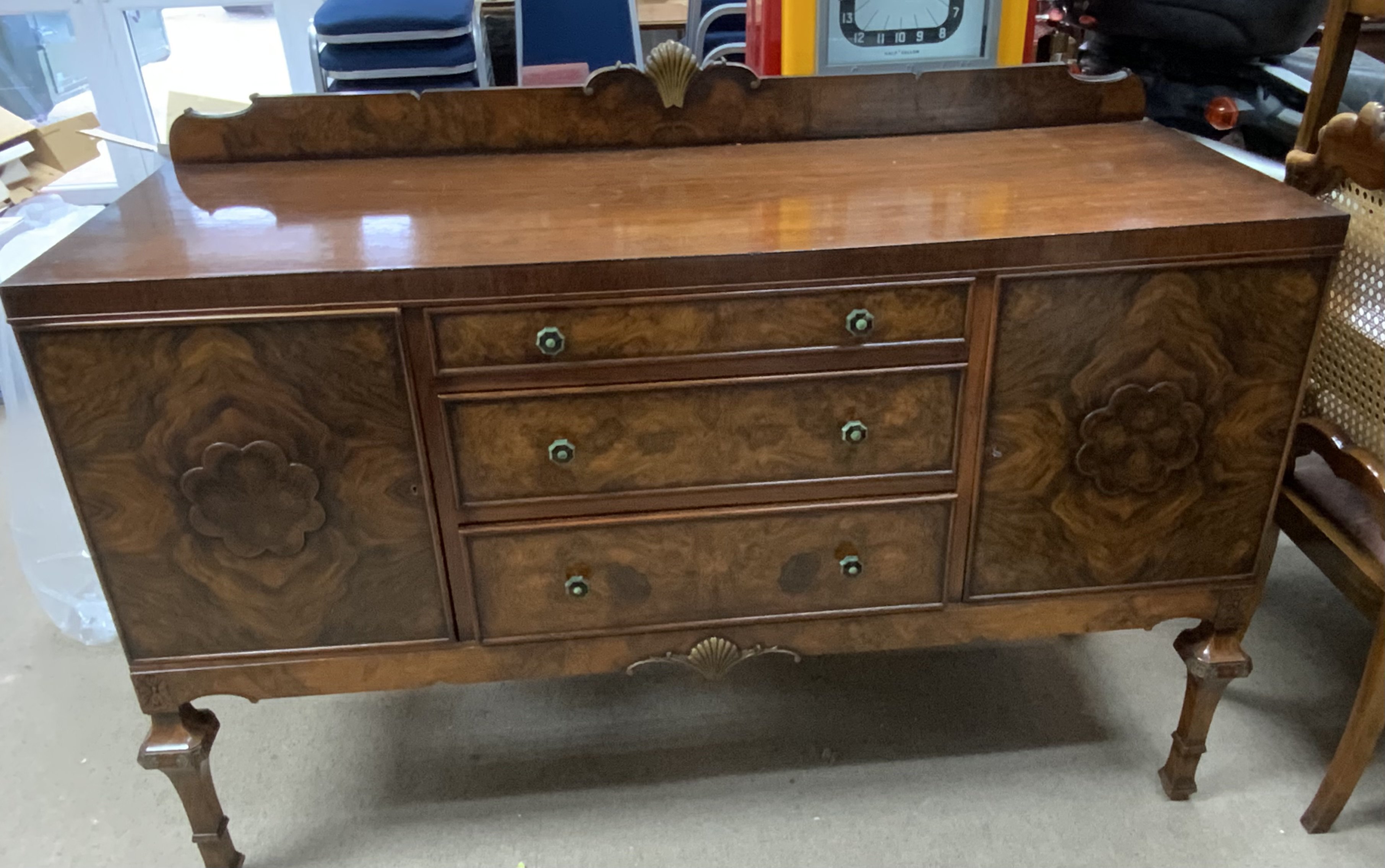 A 1930s Walnut veneered sideboard. (D)Condition Report