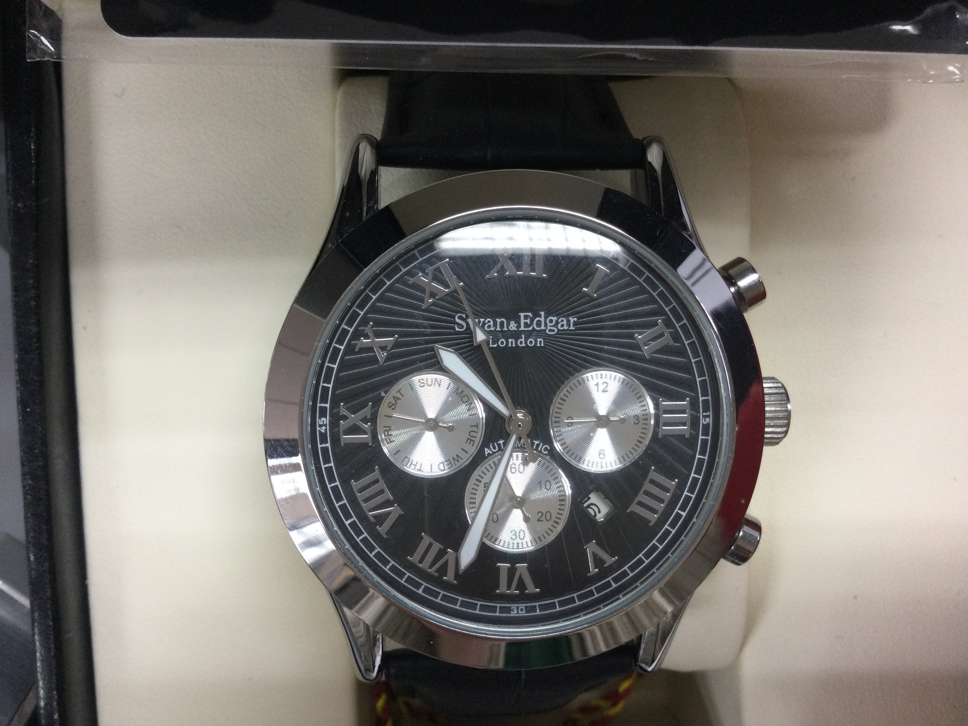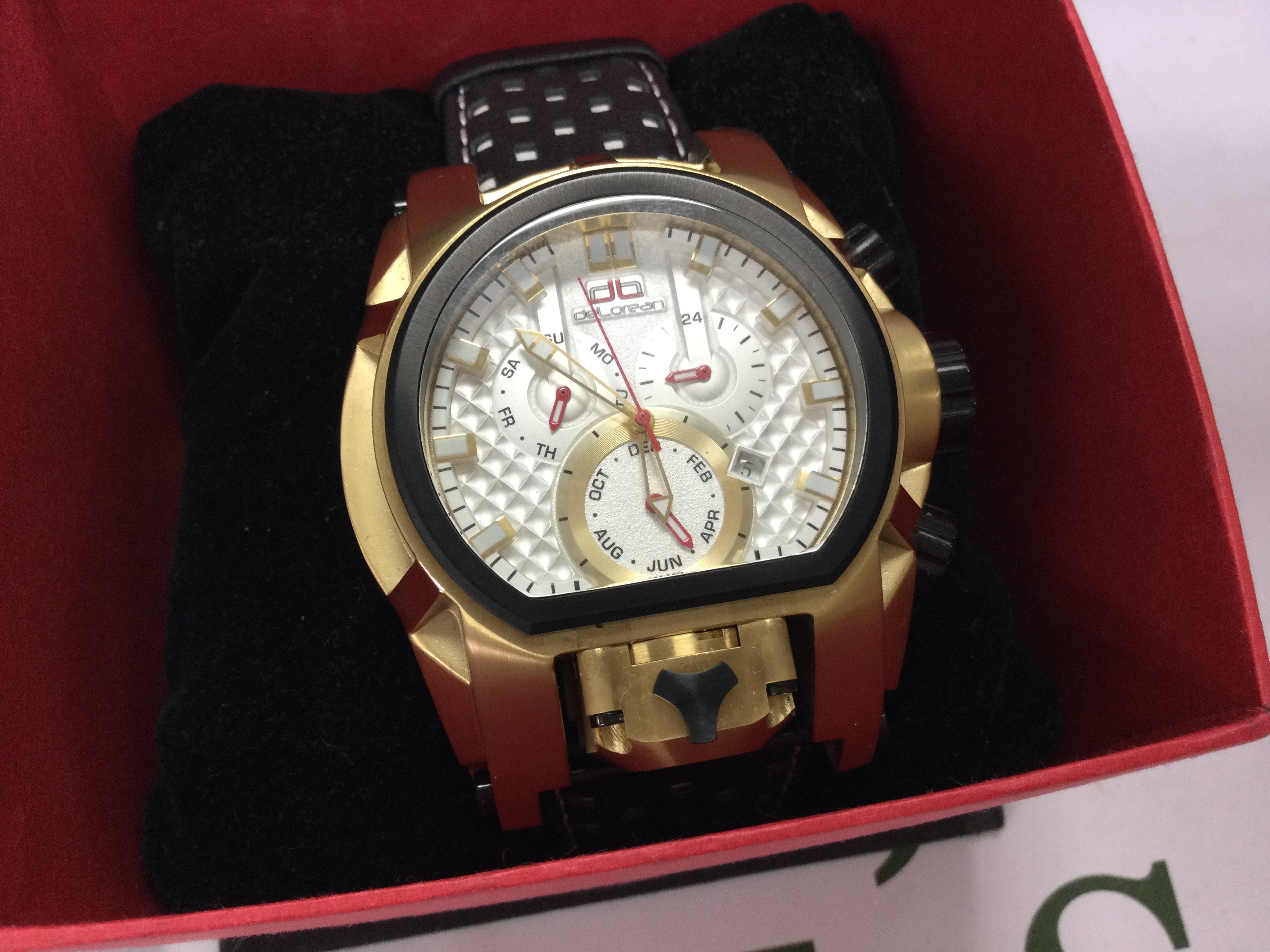 Three watches including police DeLorean and Swan and Edgar. All with boxes. Postage B
