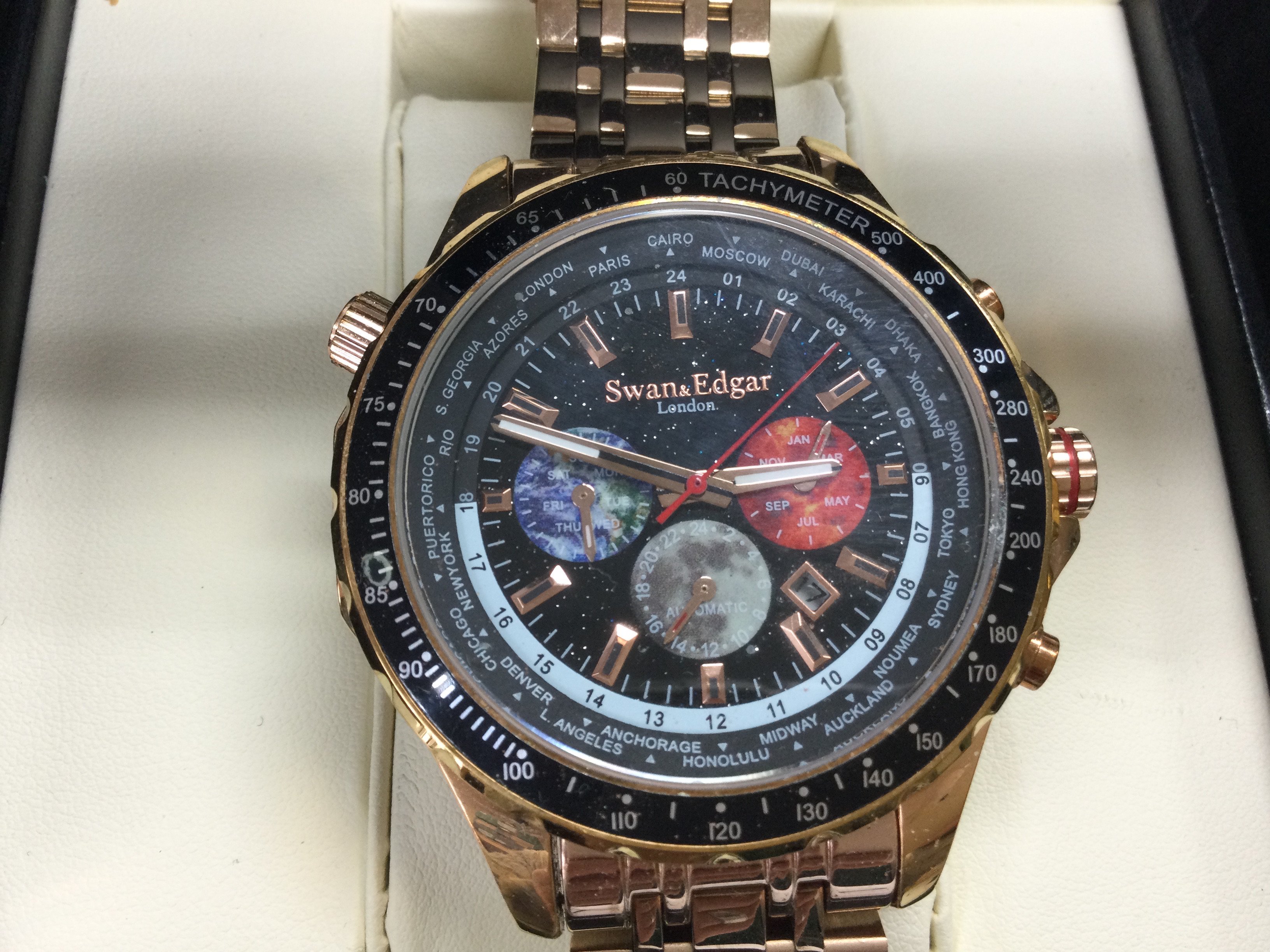 Two Swan and Edgar watches with boxes and paperwork seen running and a Kenneth Cole watch. Postage B
