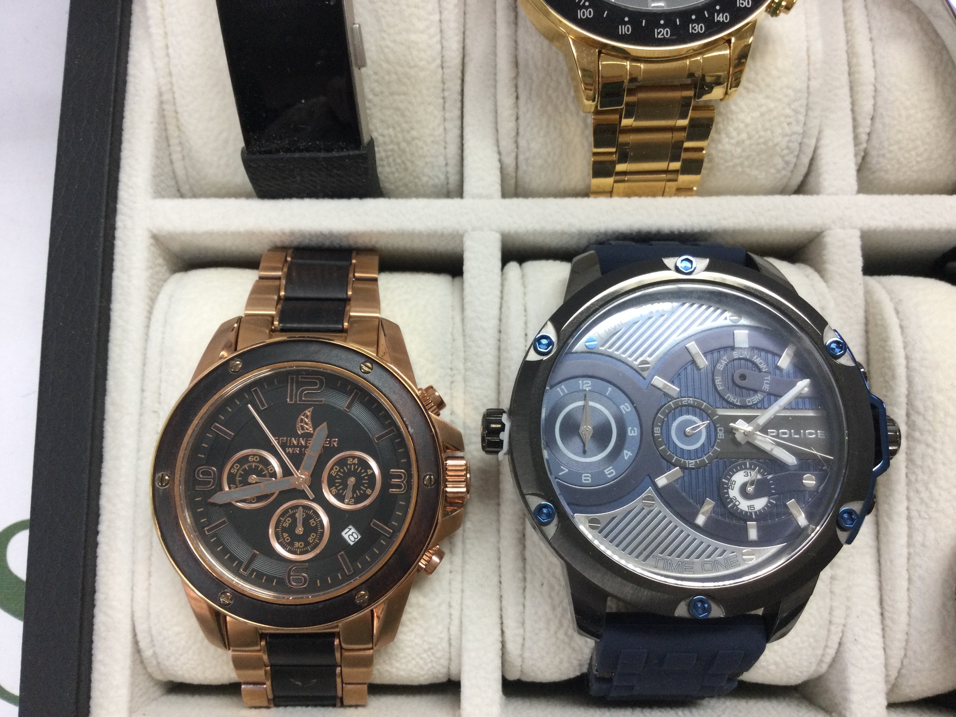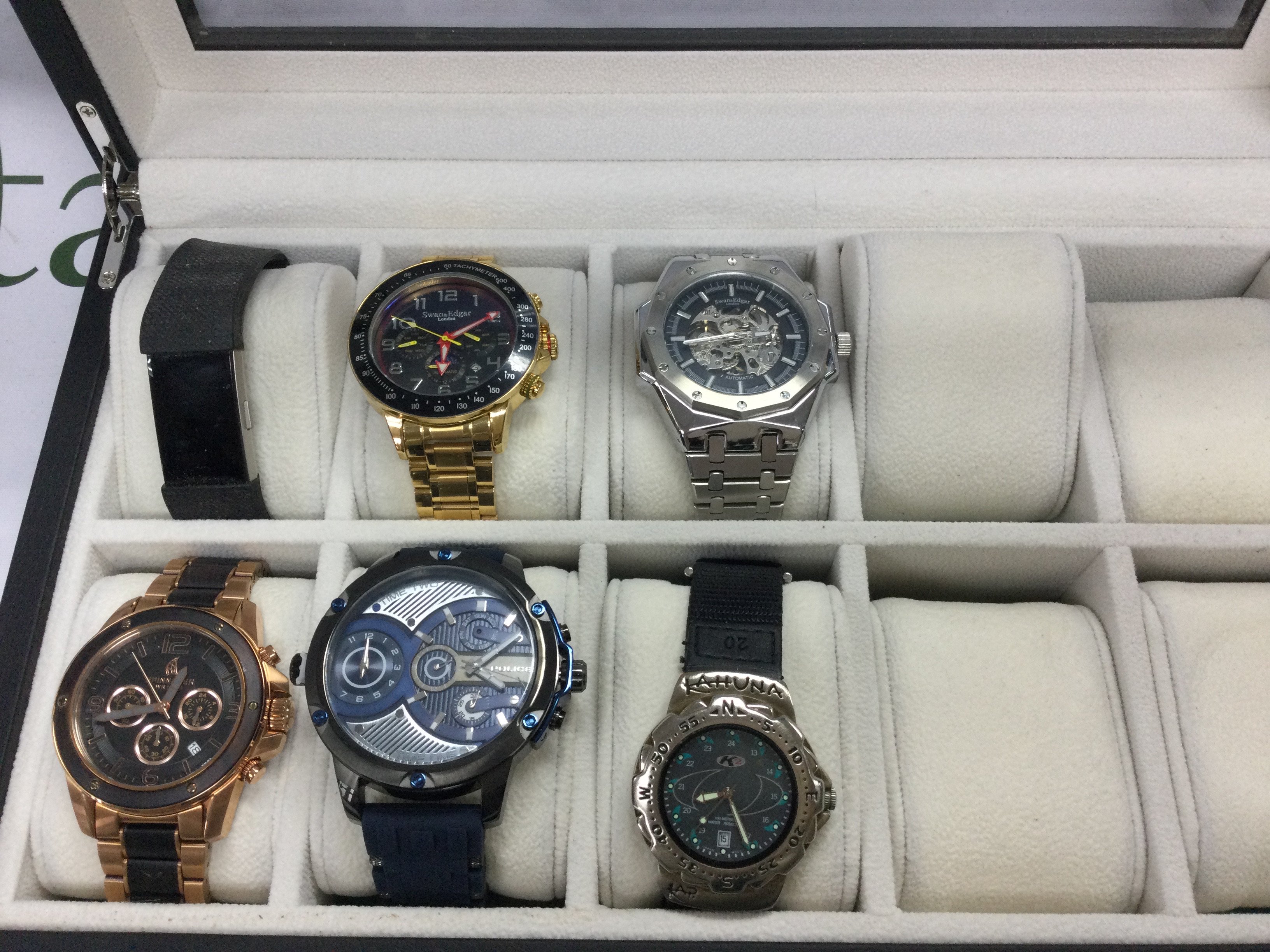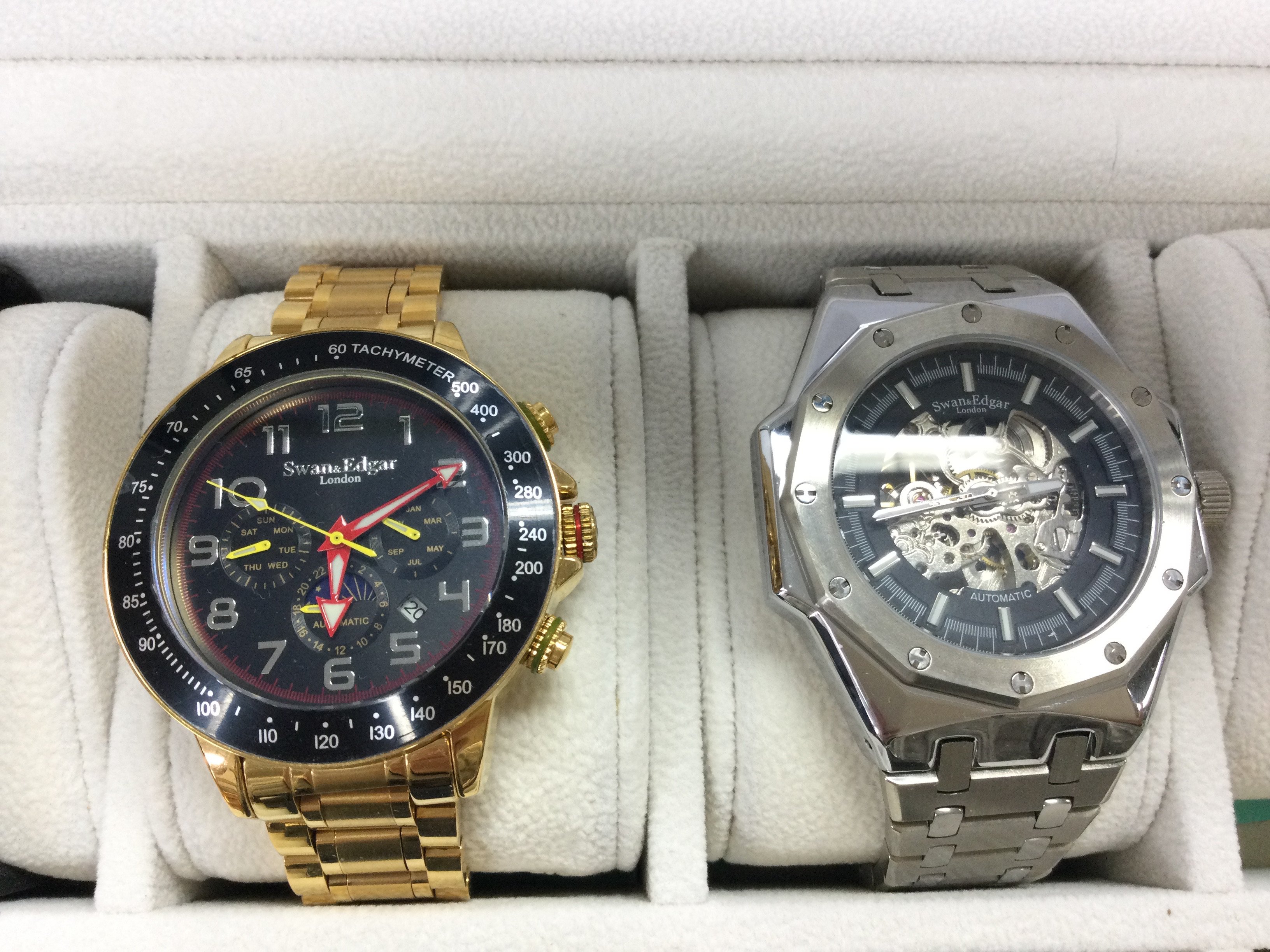 A small collection of watches including Swan and Edgar etc all in a 10 watch storage box. Postage B