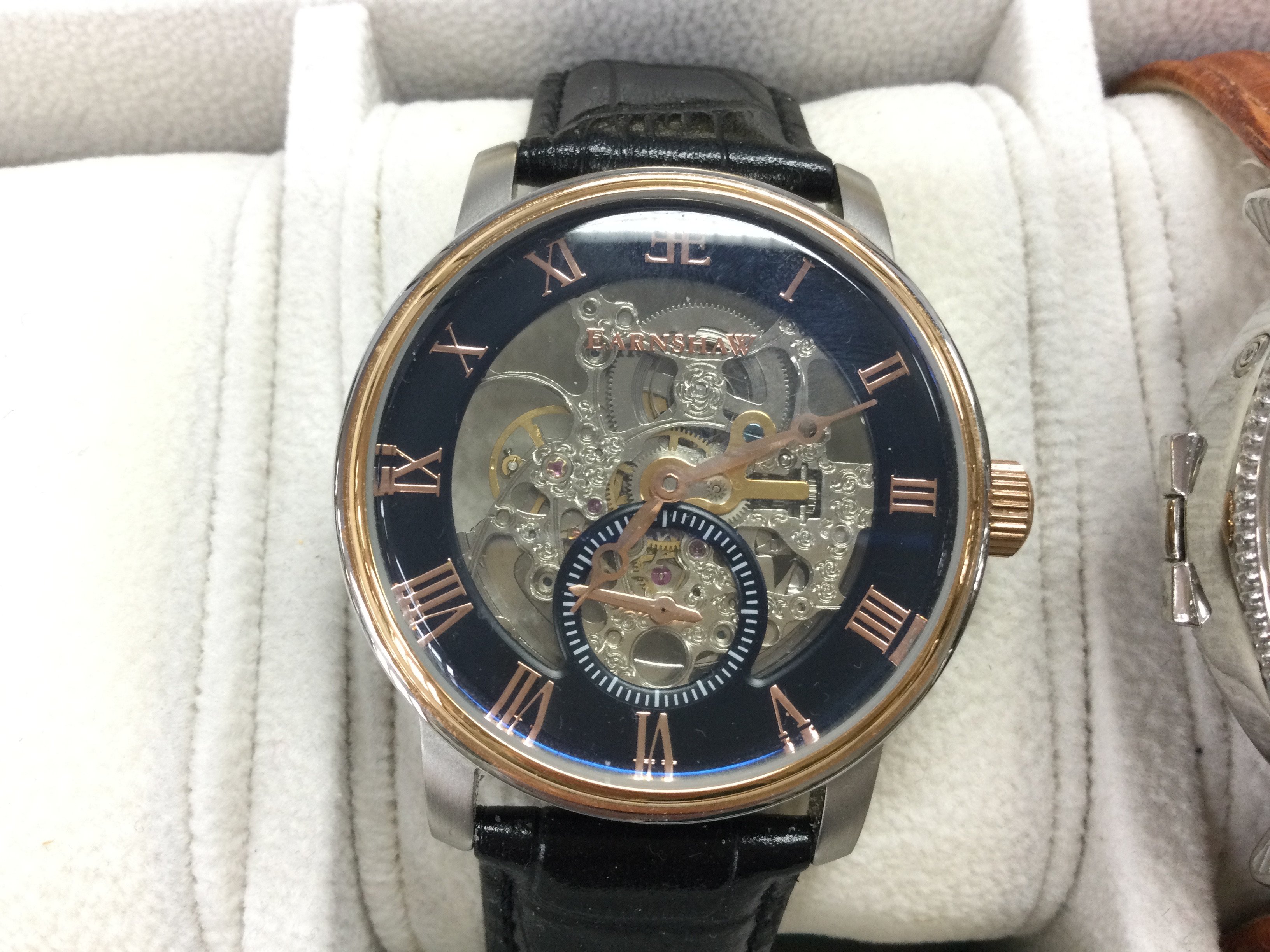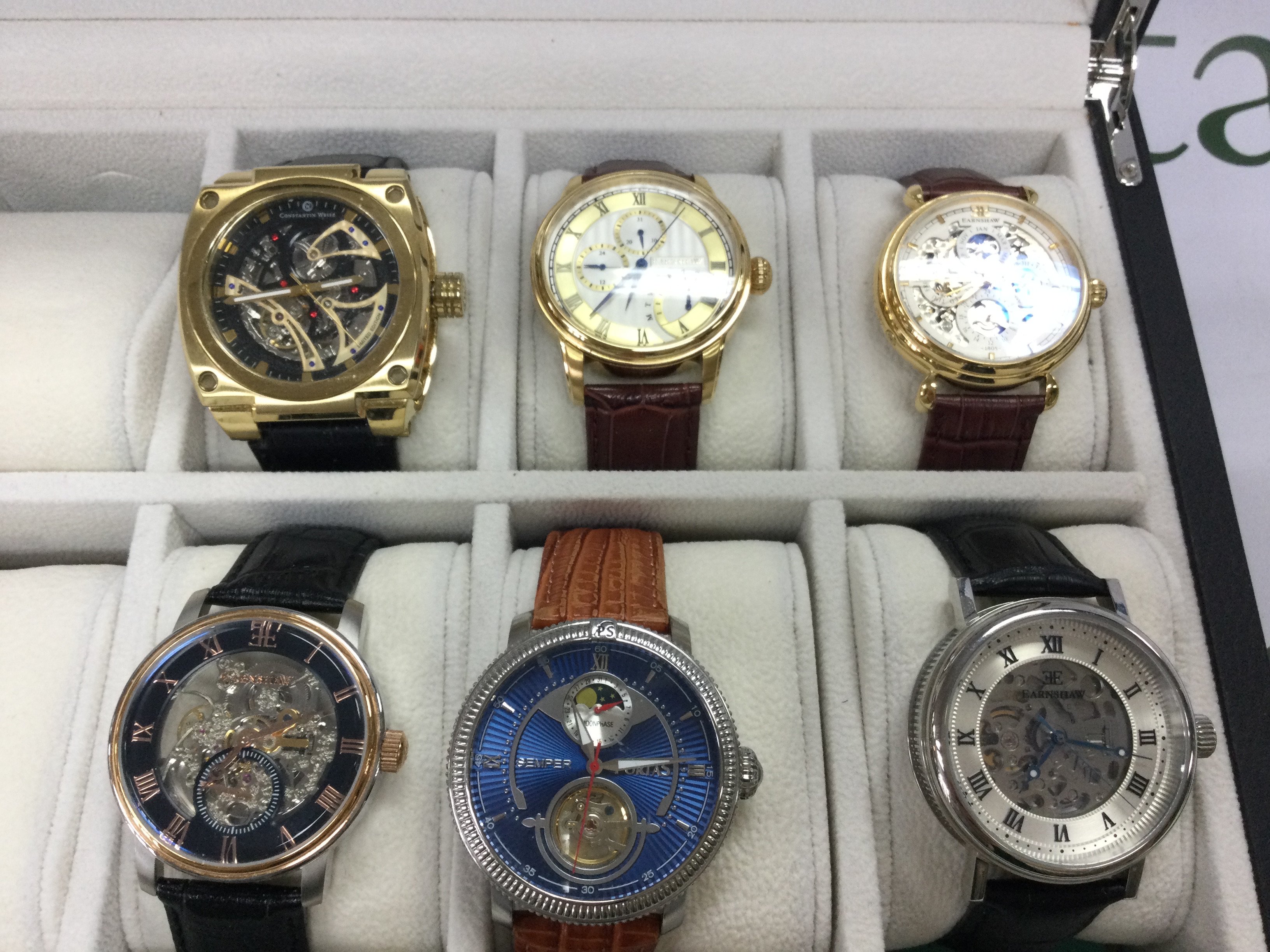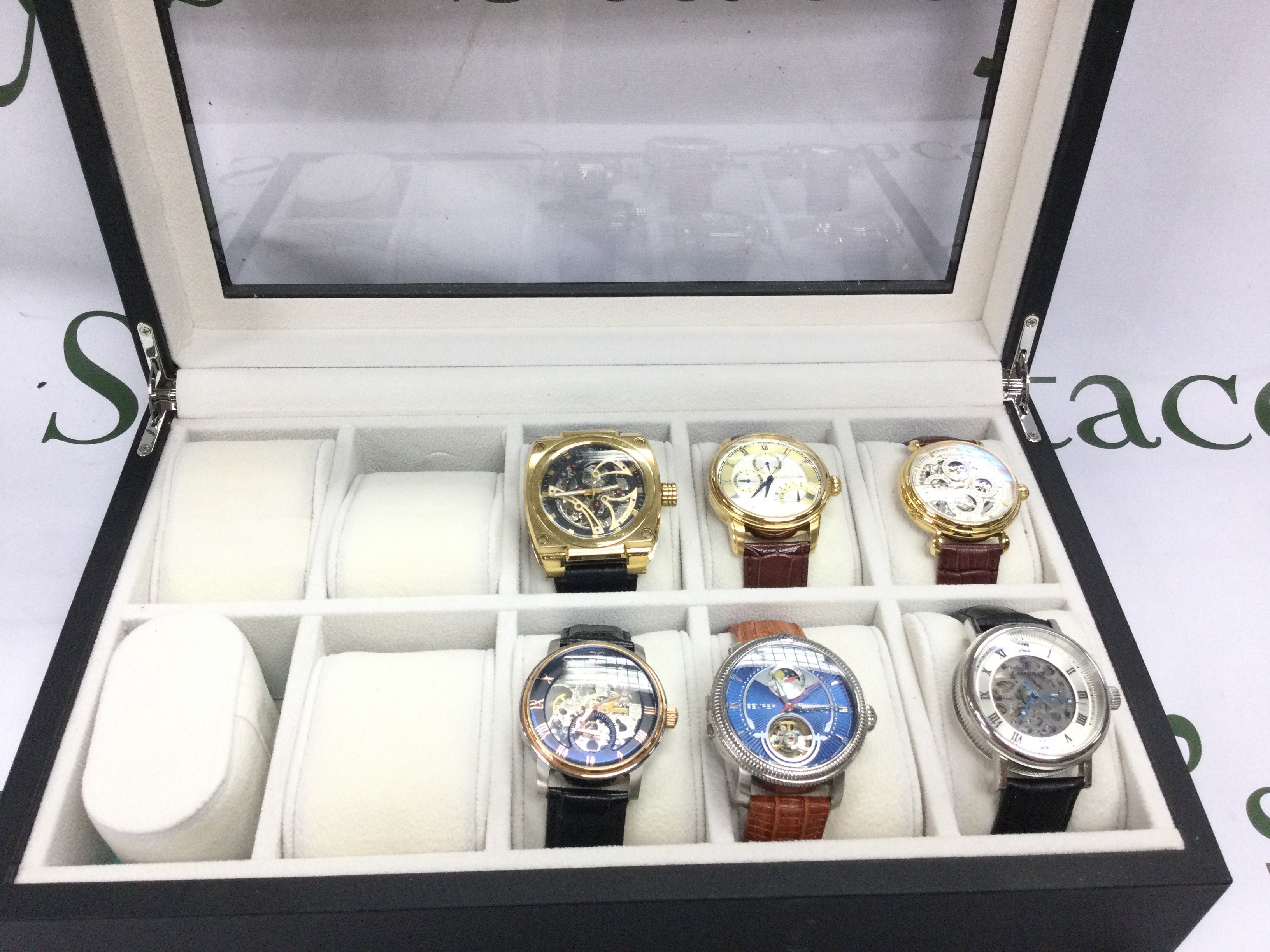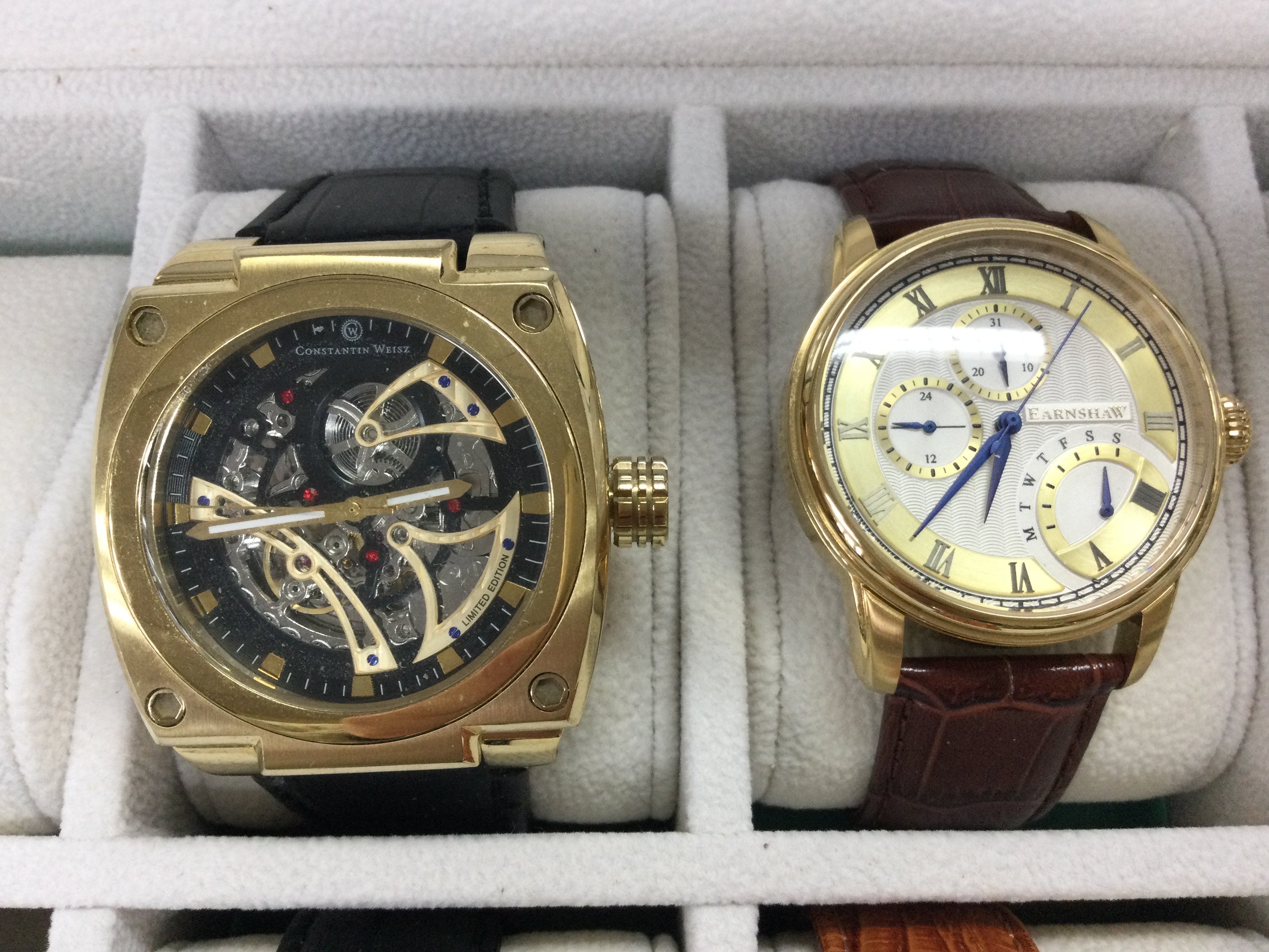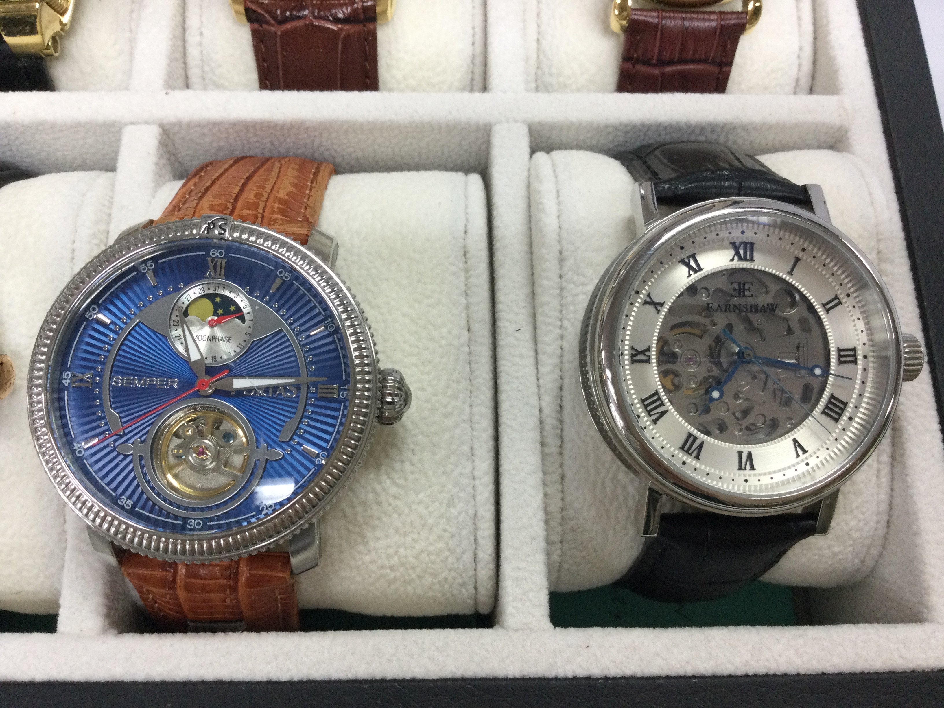 A small collection of watches including Earnshaw etc all in a 10 watch storage box. Postage B
