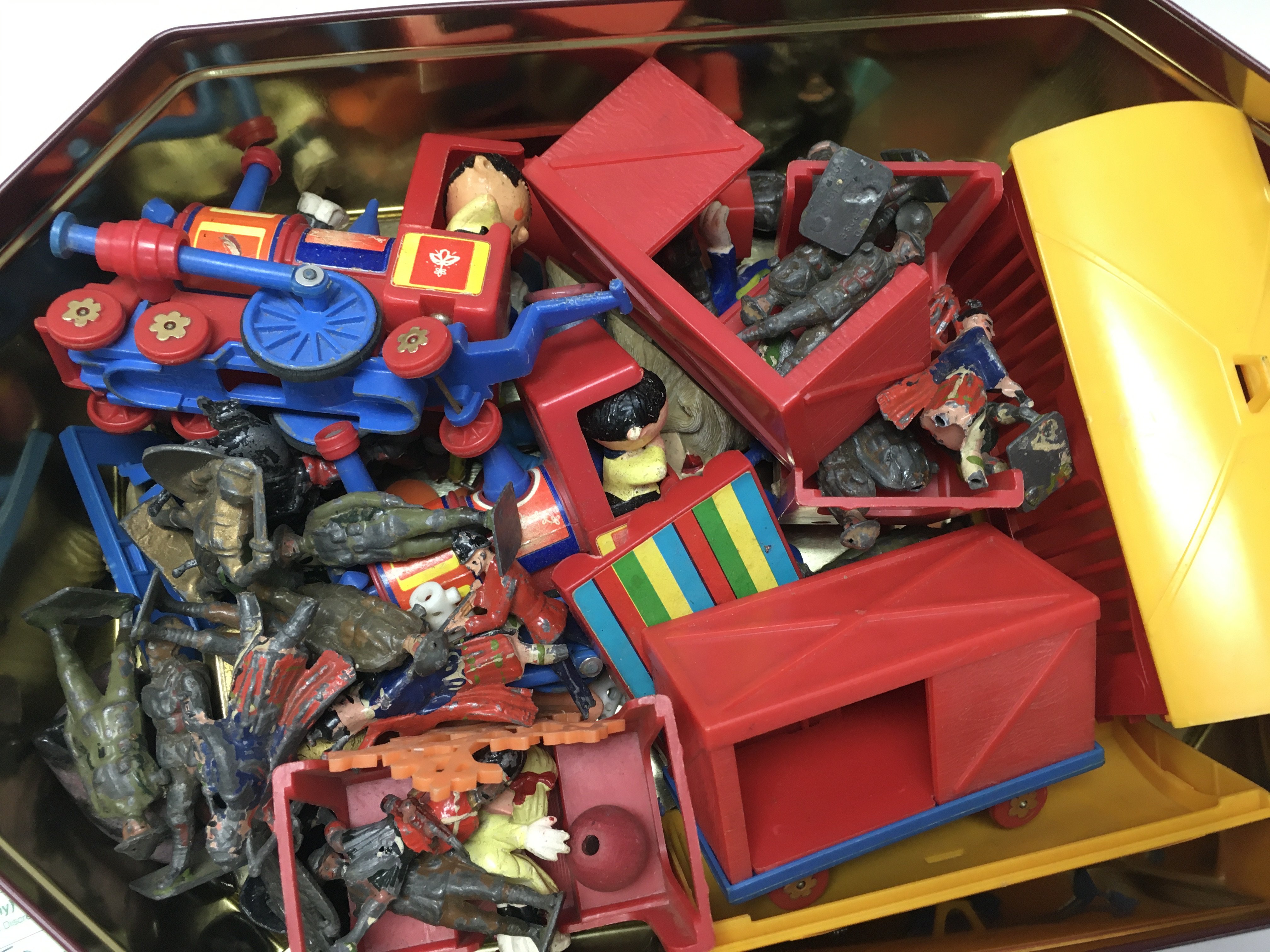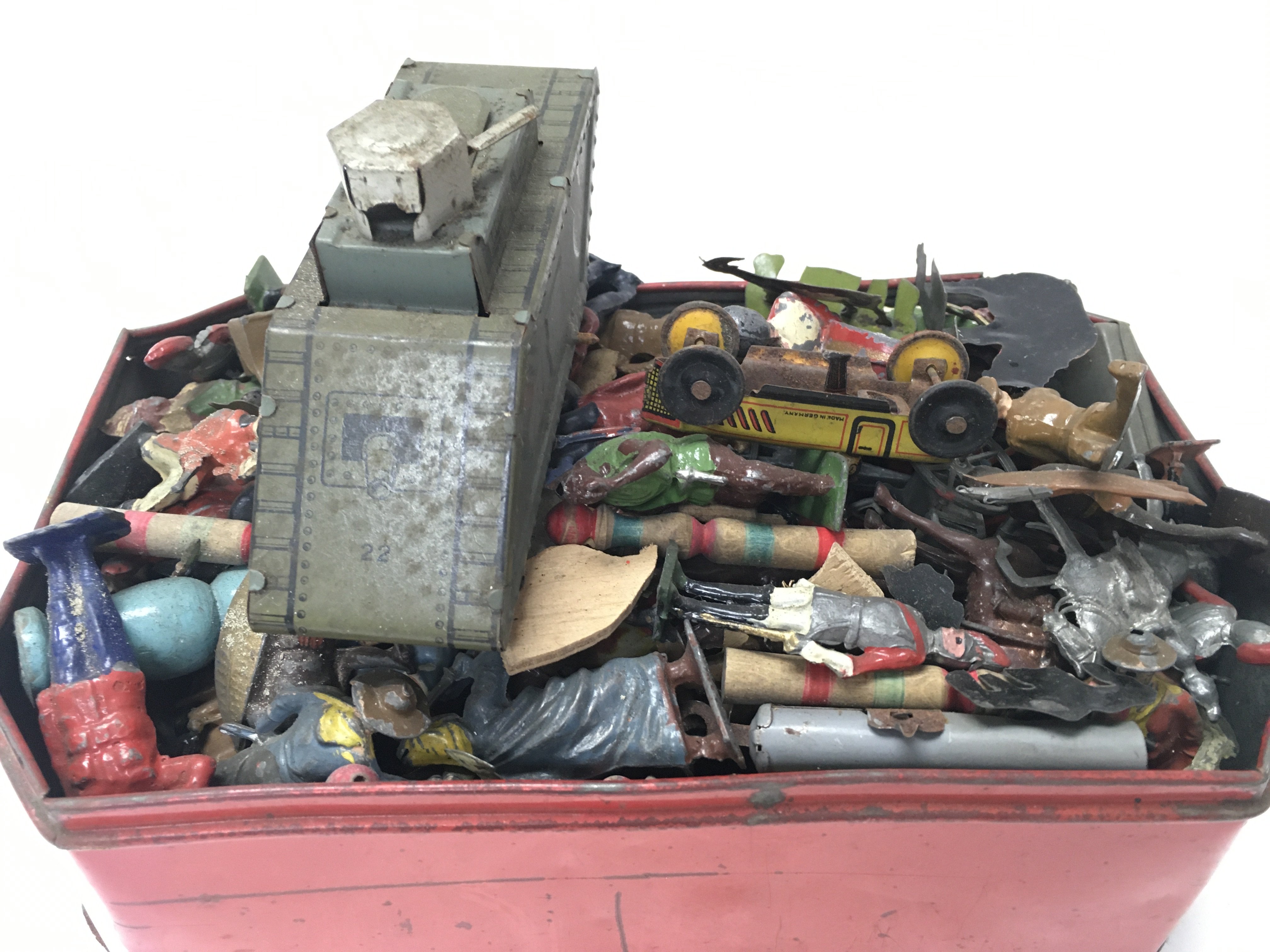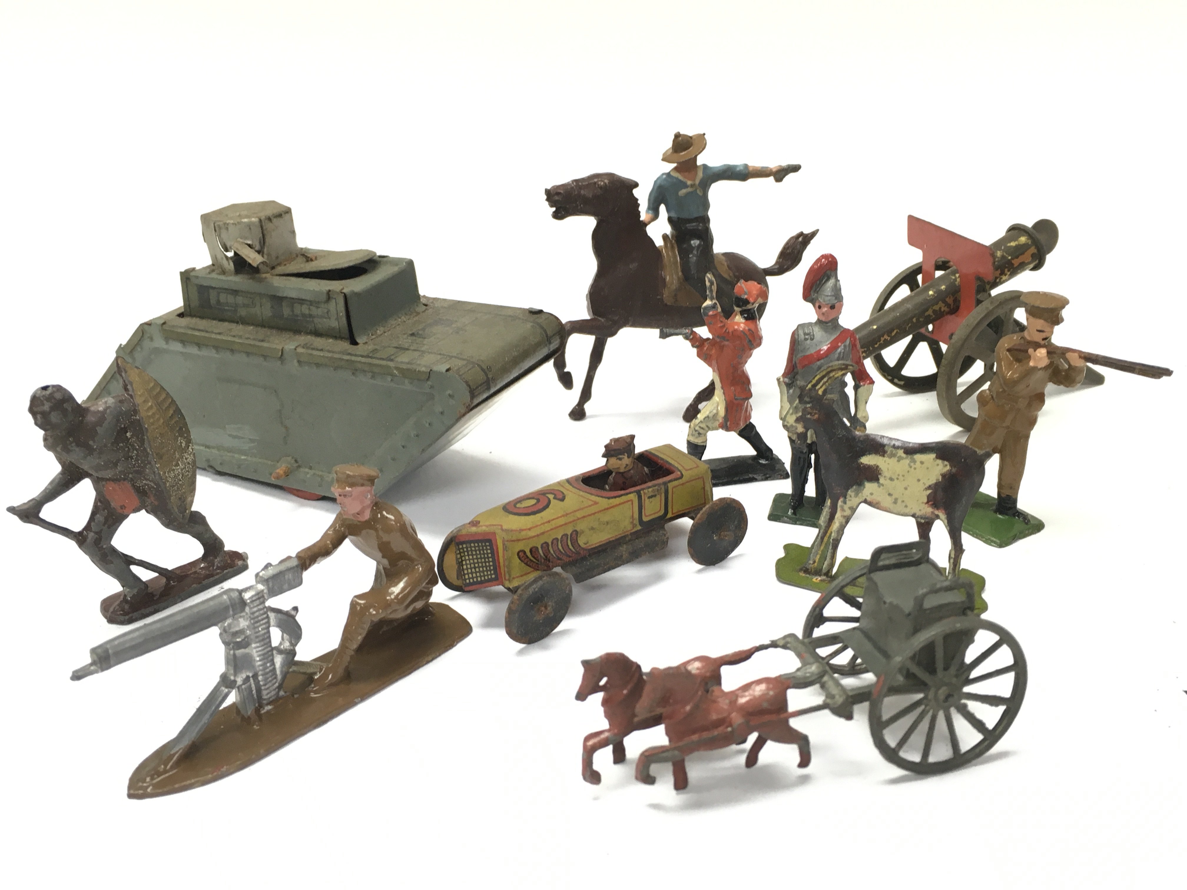 A Collection of vintage toys including tin plate, lead figures. Postage category B