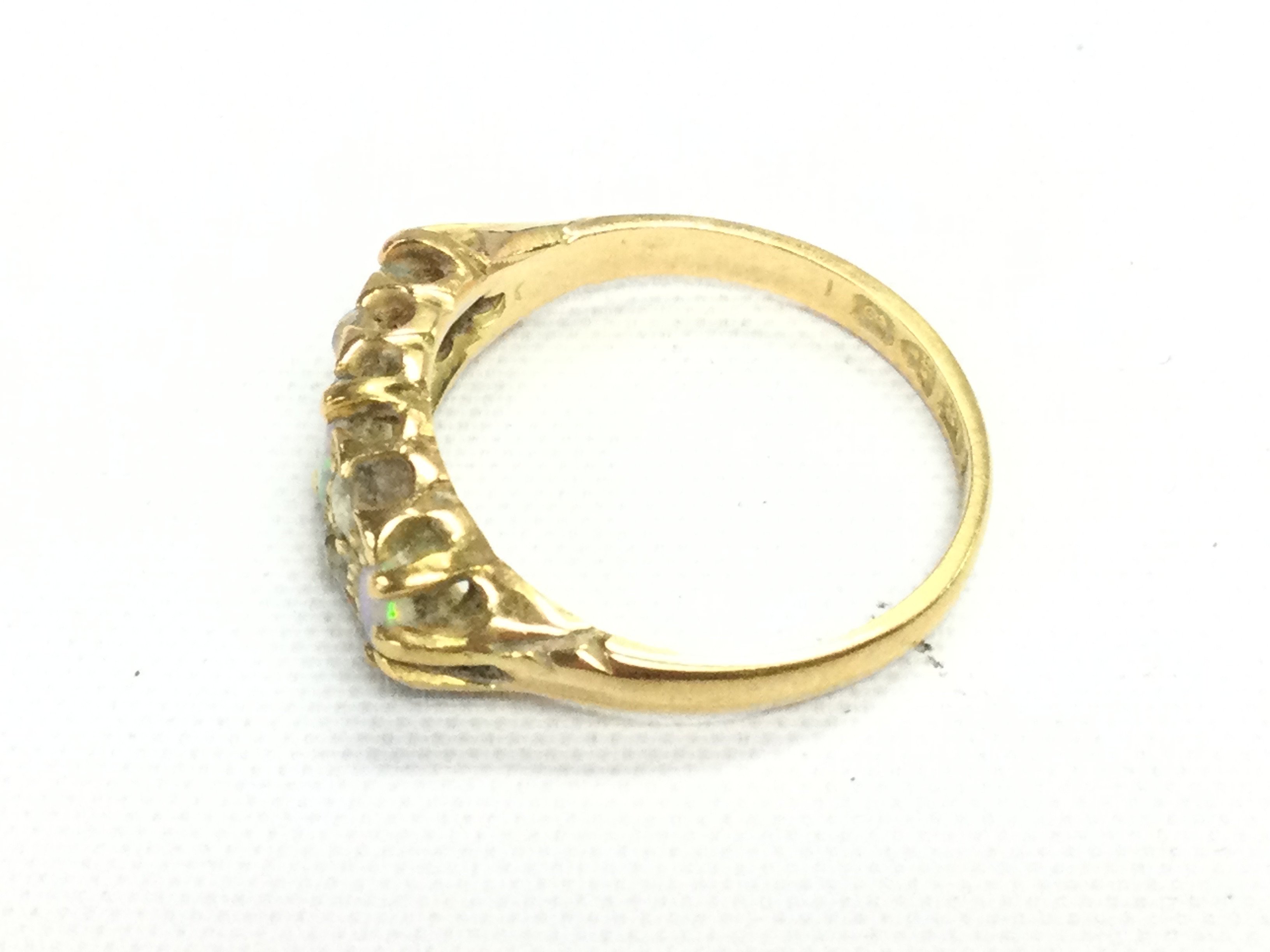 An 18ct gold opal and diamond ring. Size N 1/2 and 3.46g Postage A