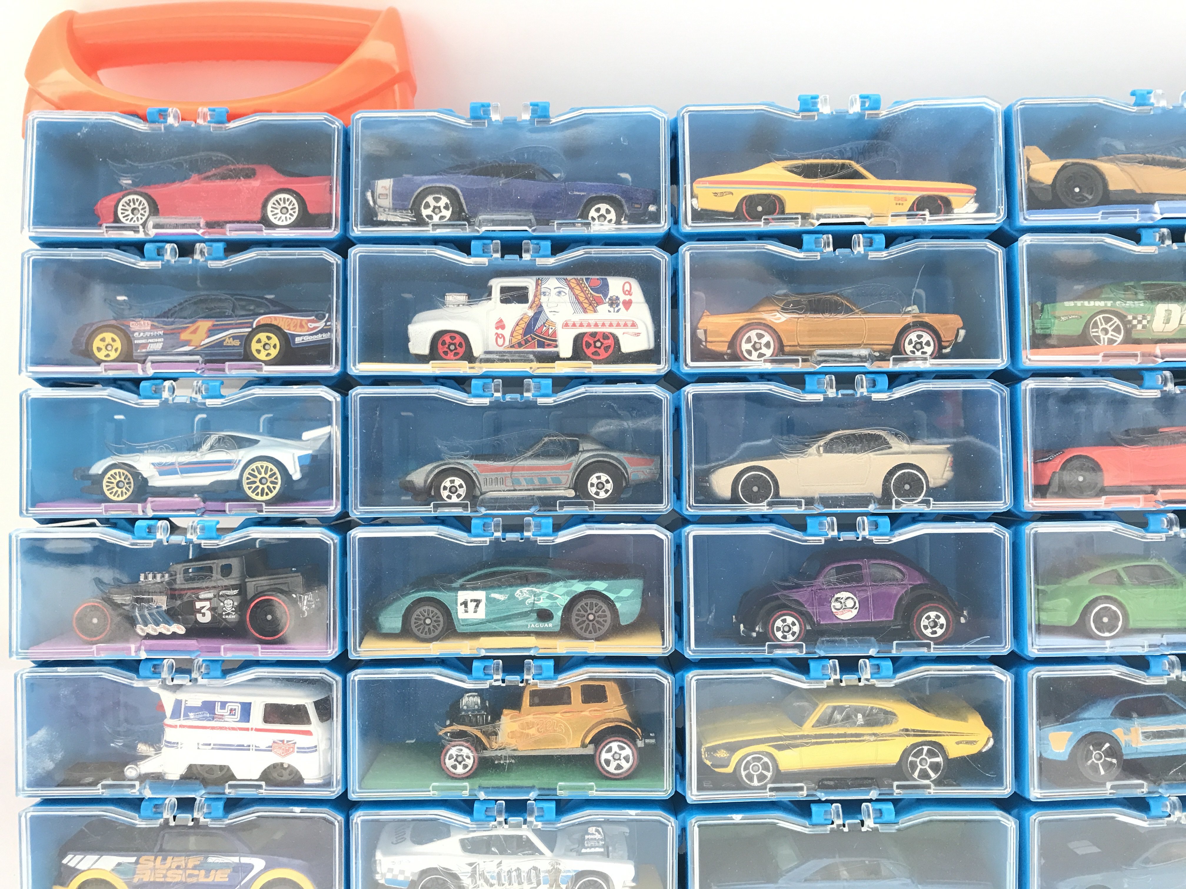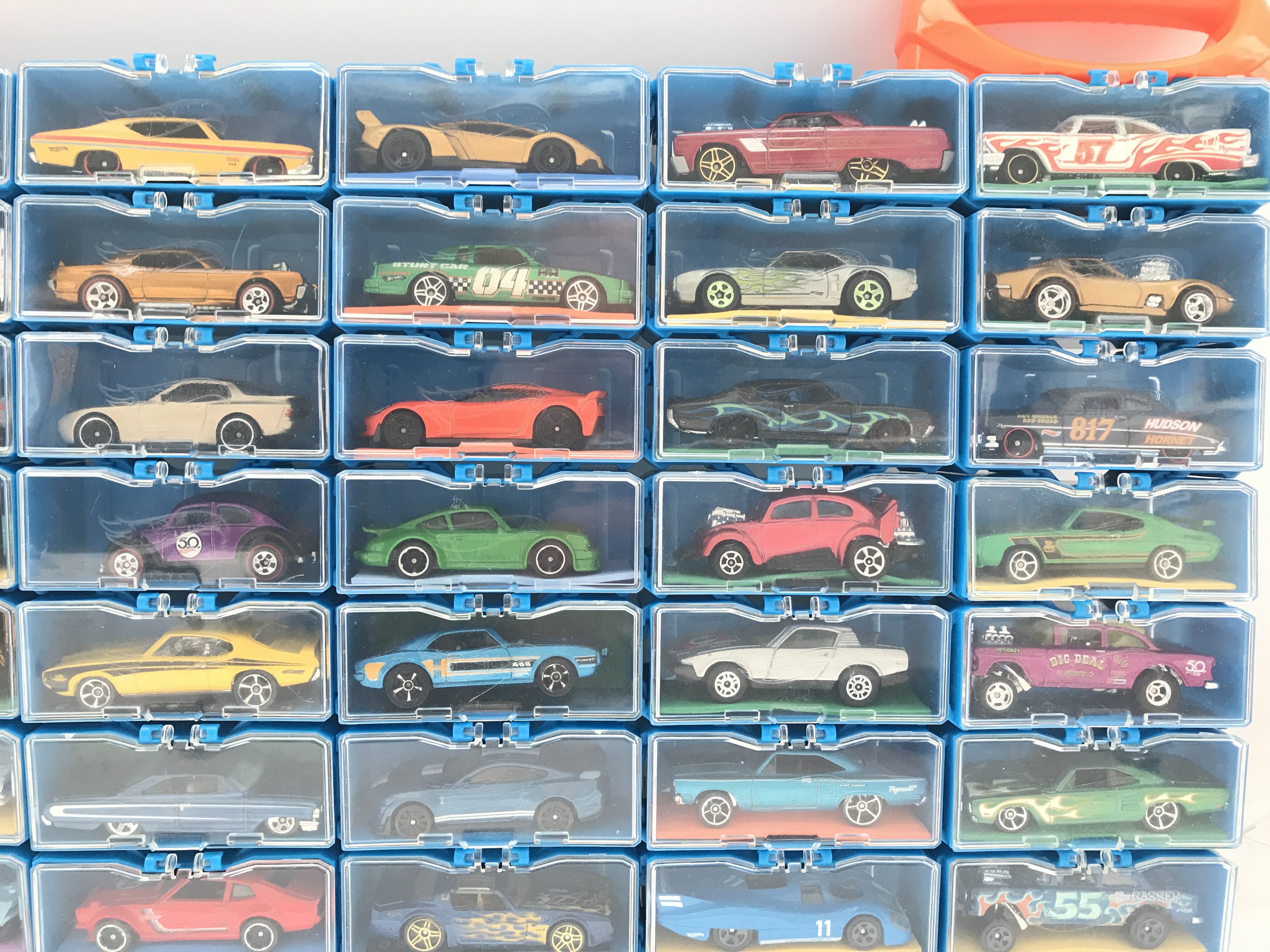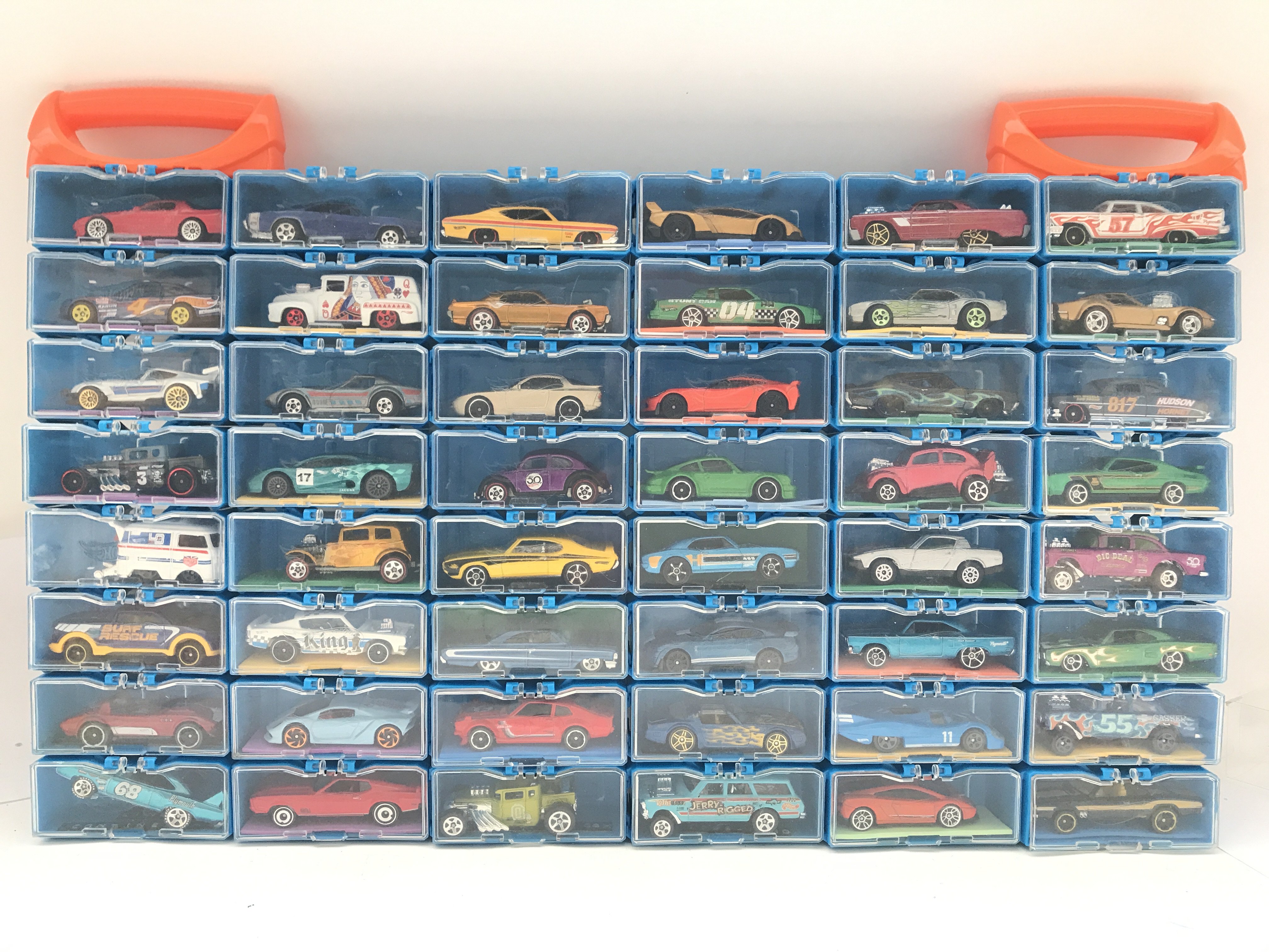 A Collection of Hot Wheels Cars In a multibrick Car Case. No Reserve.