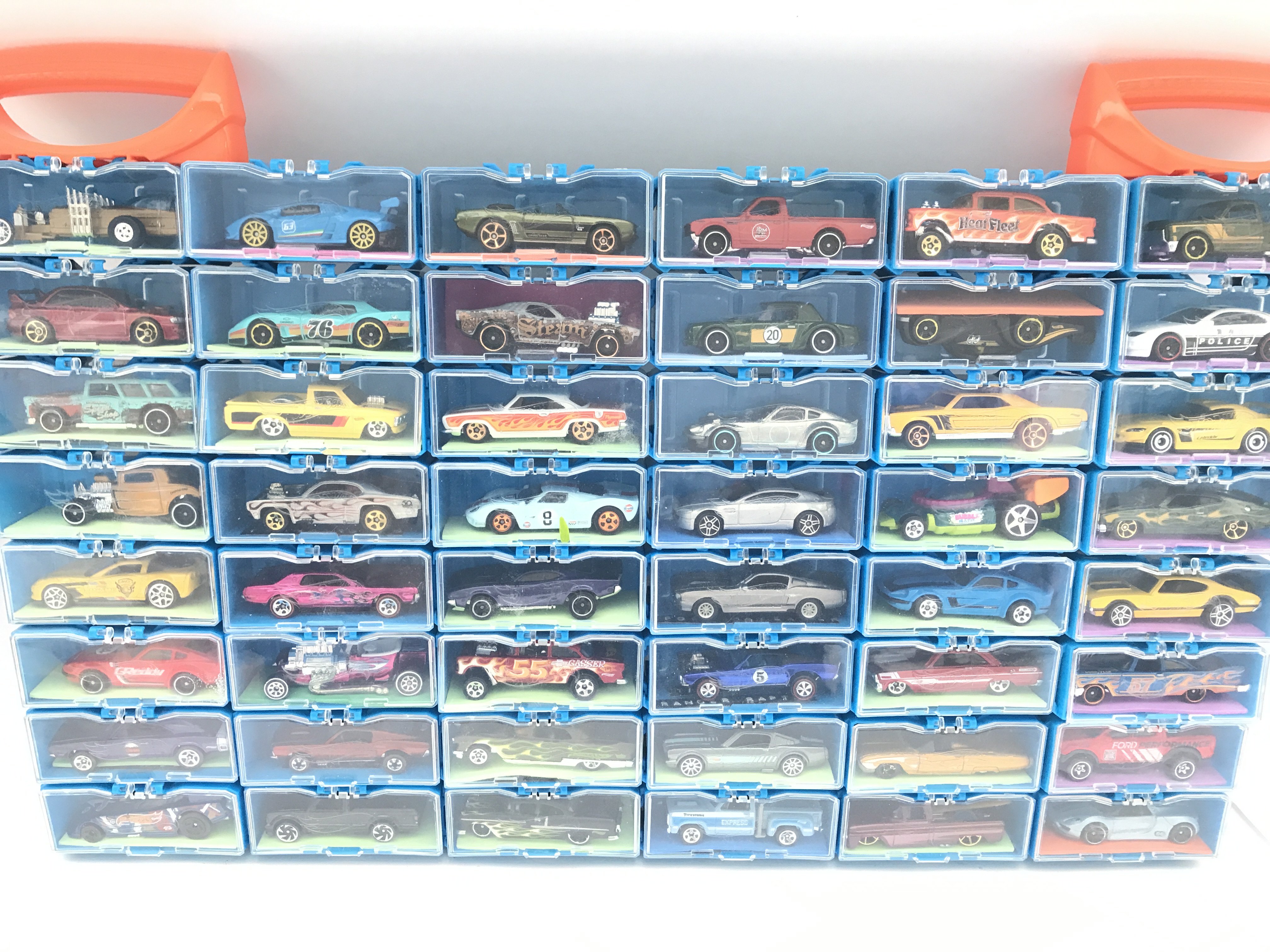 A Collection of Hot Wheels Cars In a multibrick Car Case. No Reserve.