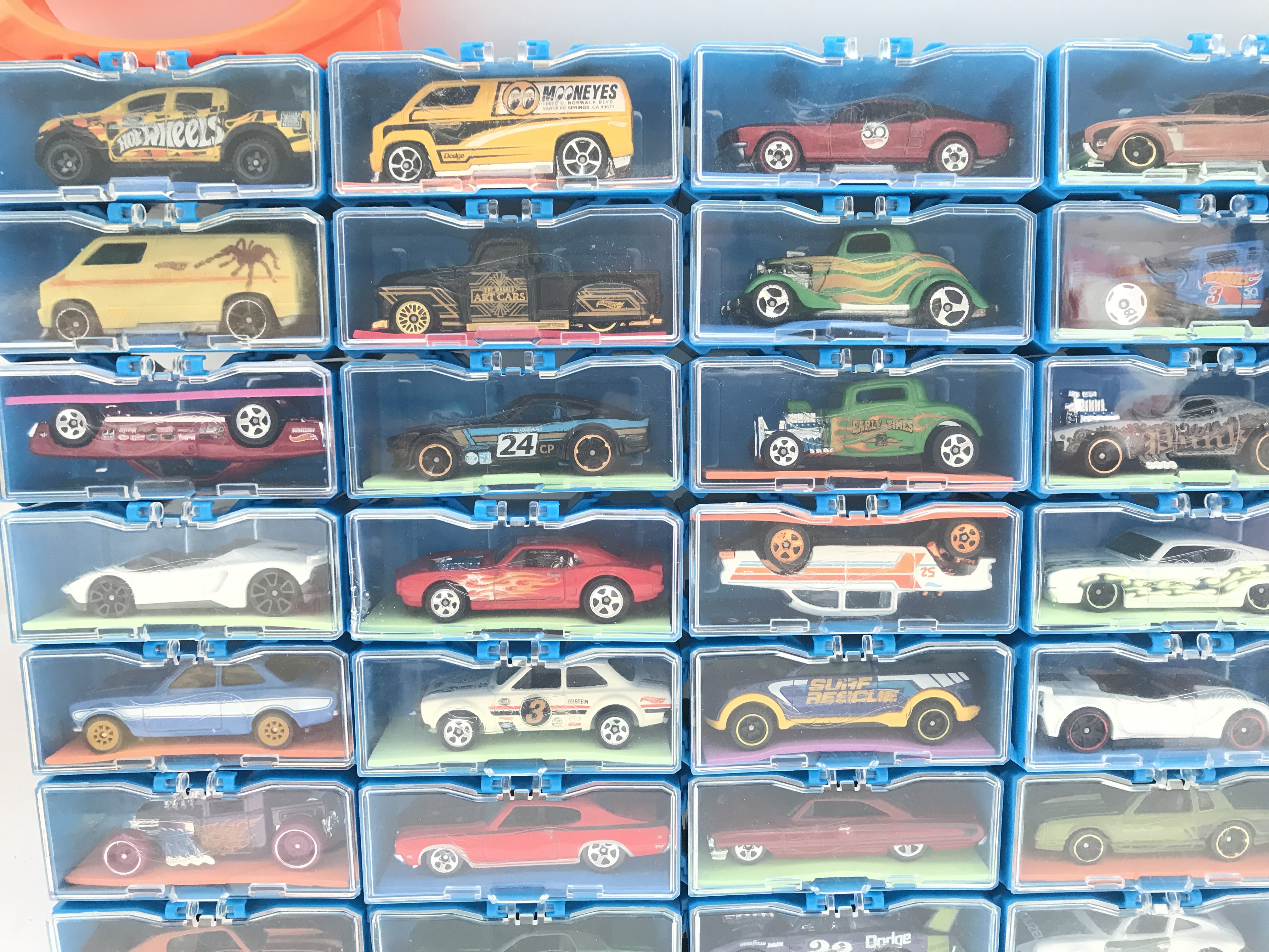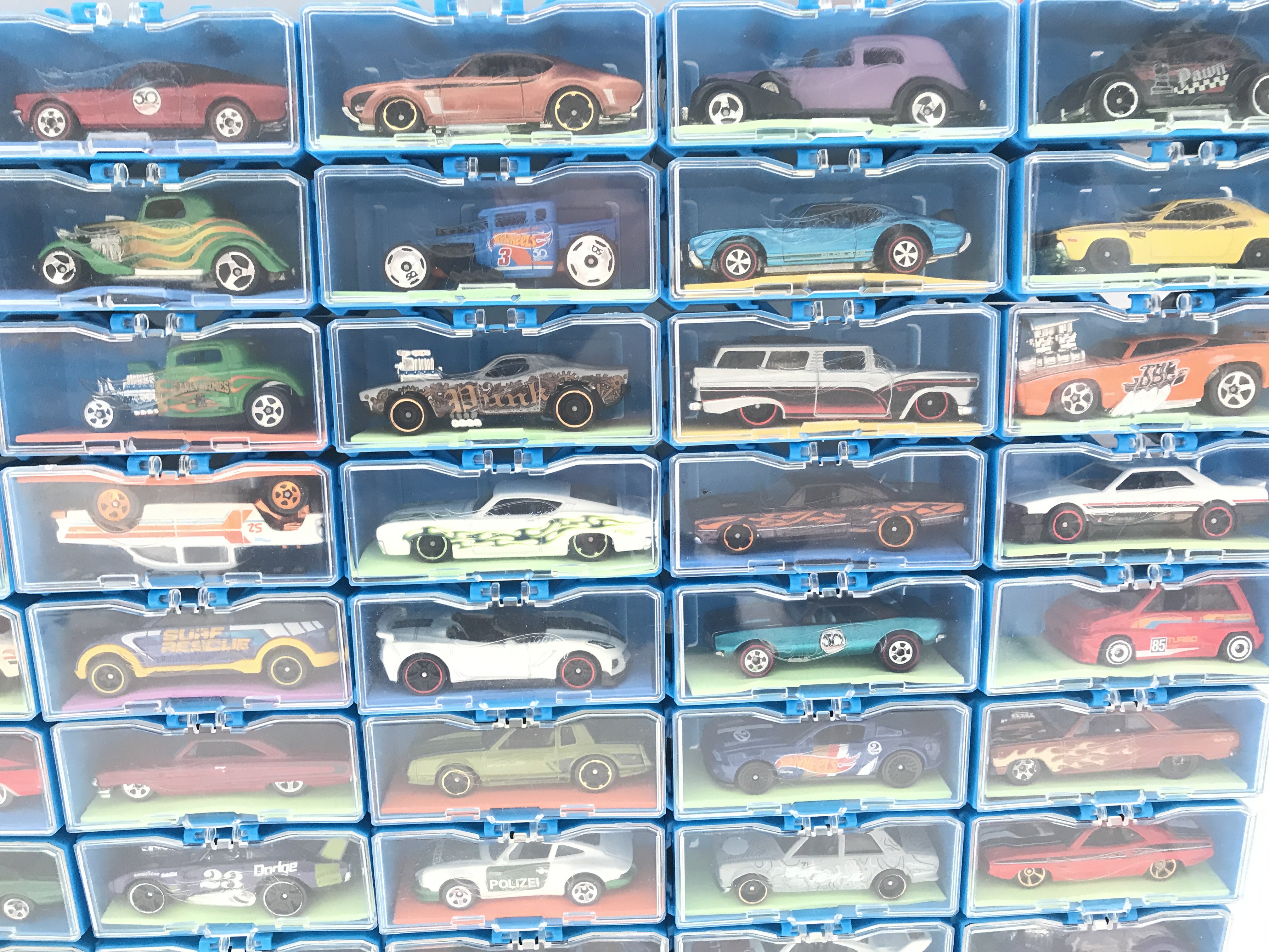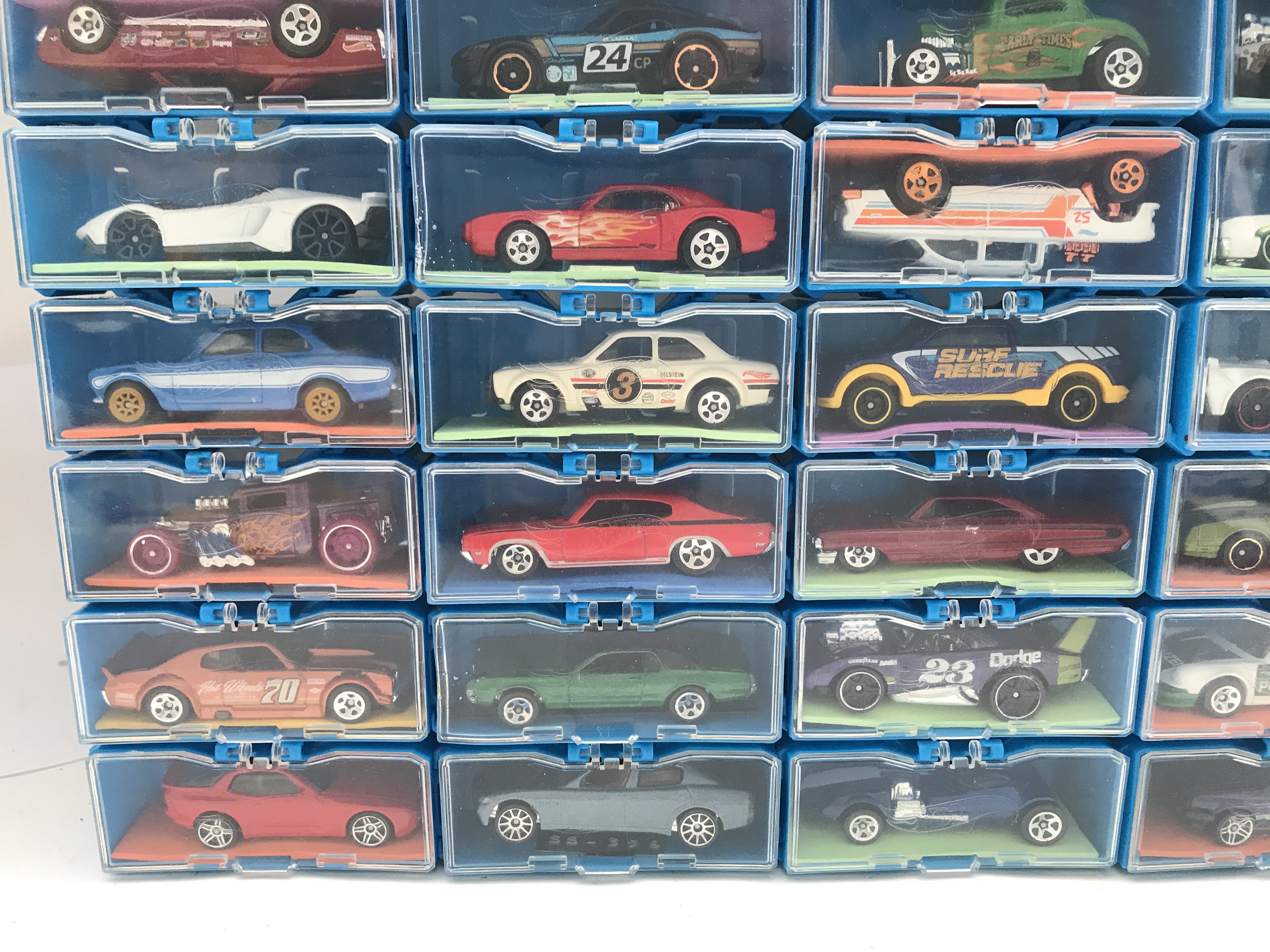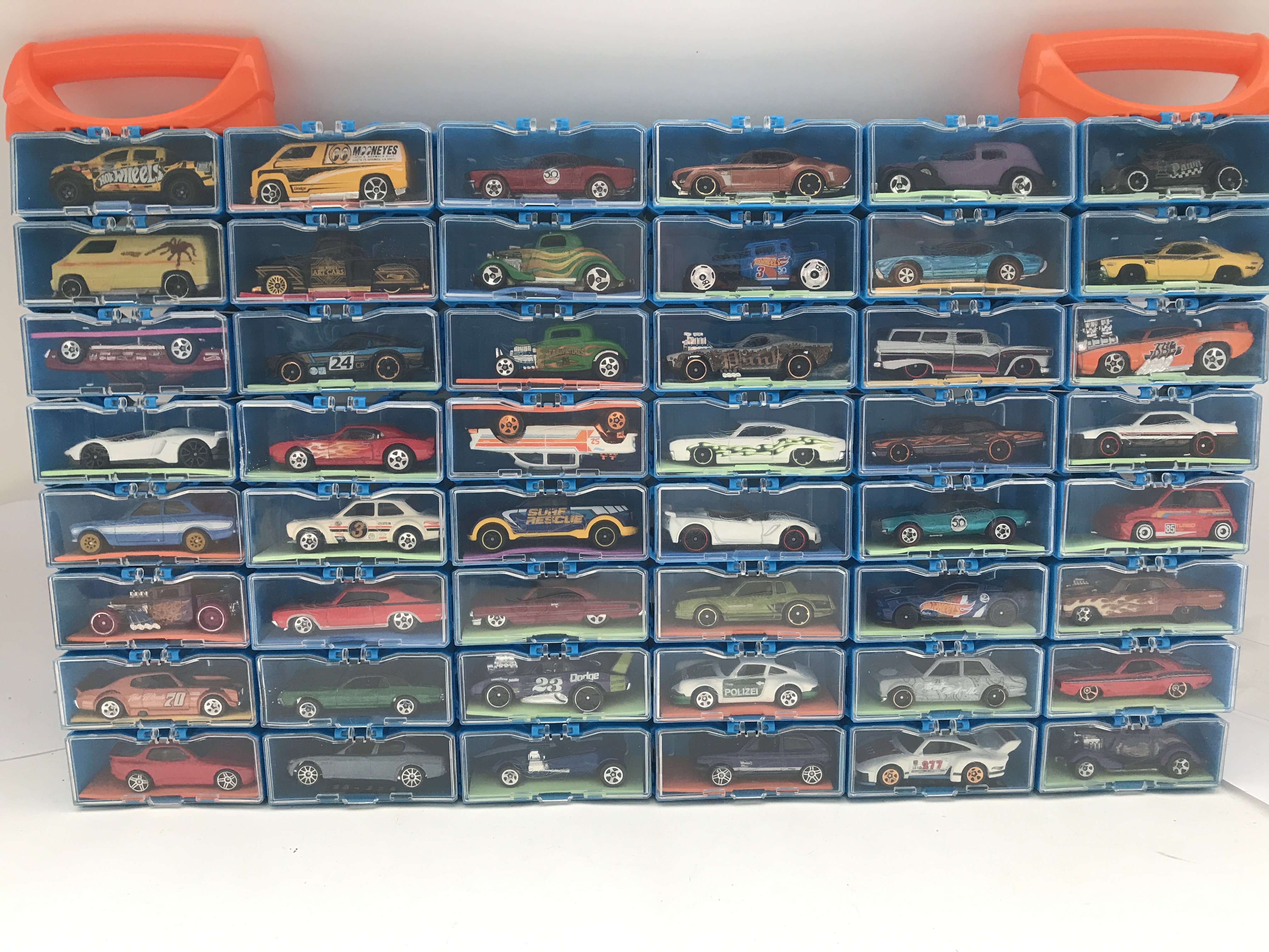 A Collection of Hot Wheels Cars In a multibrick Car Case. No Reserve.