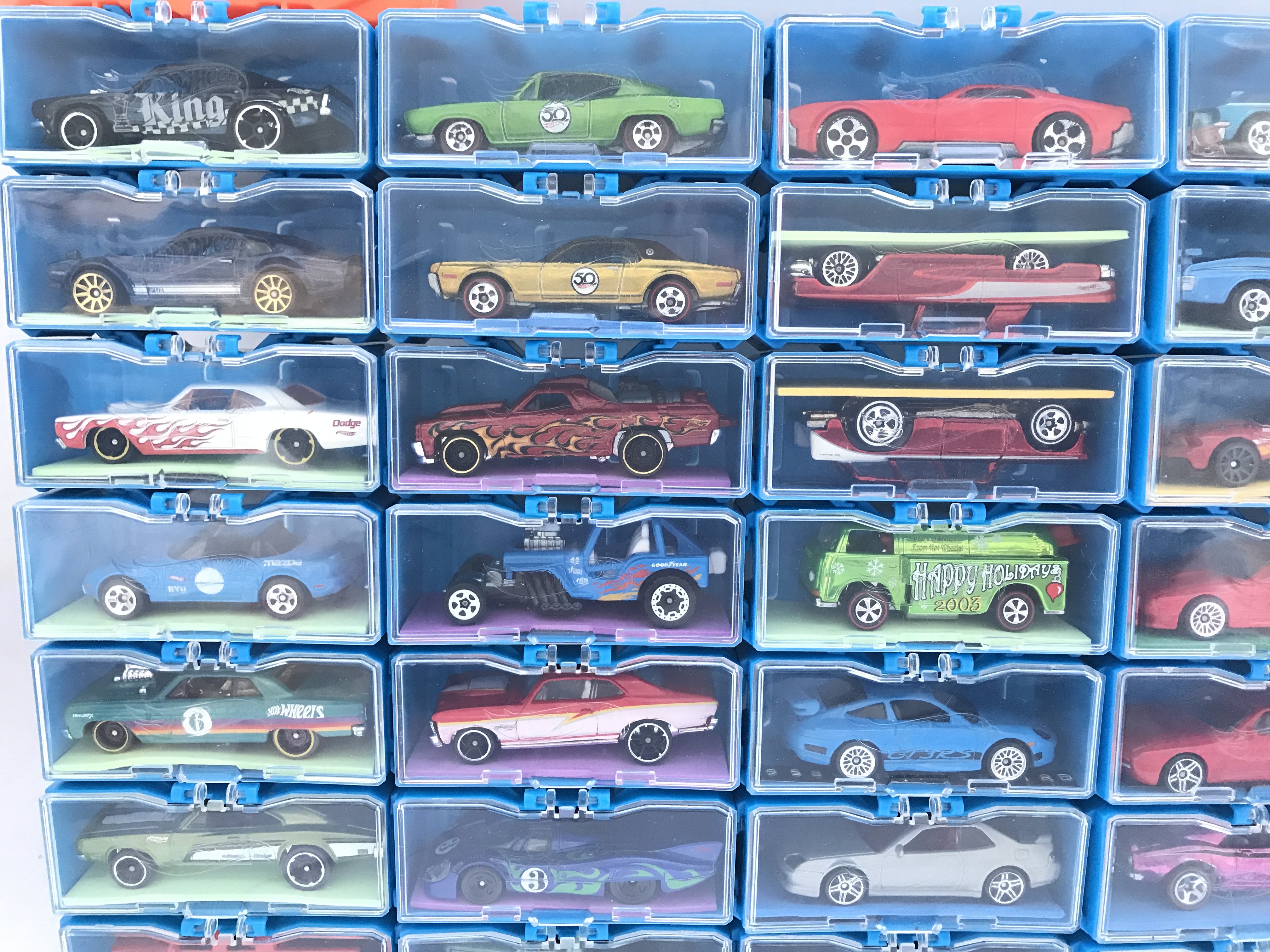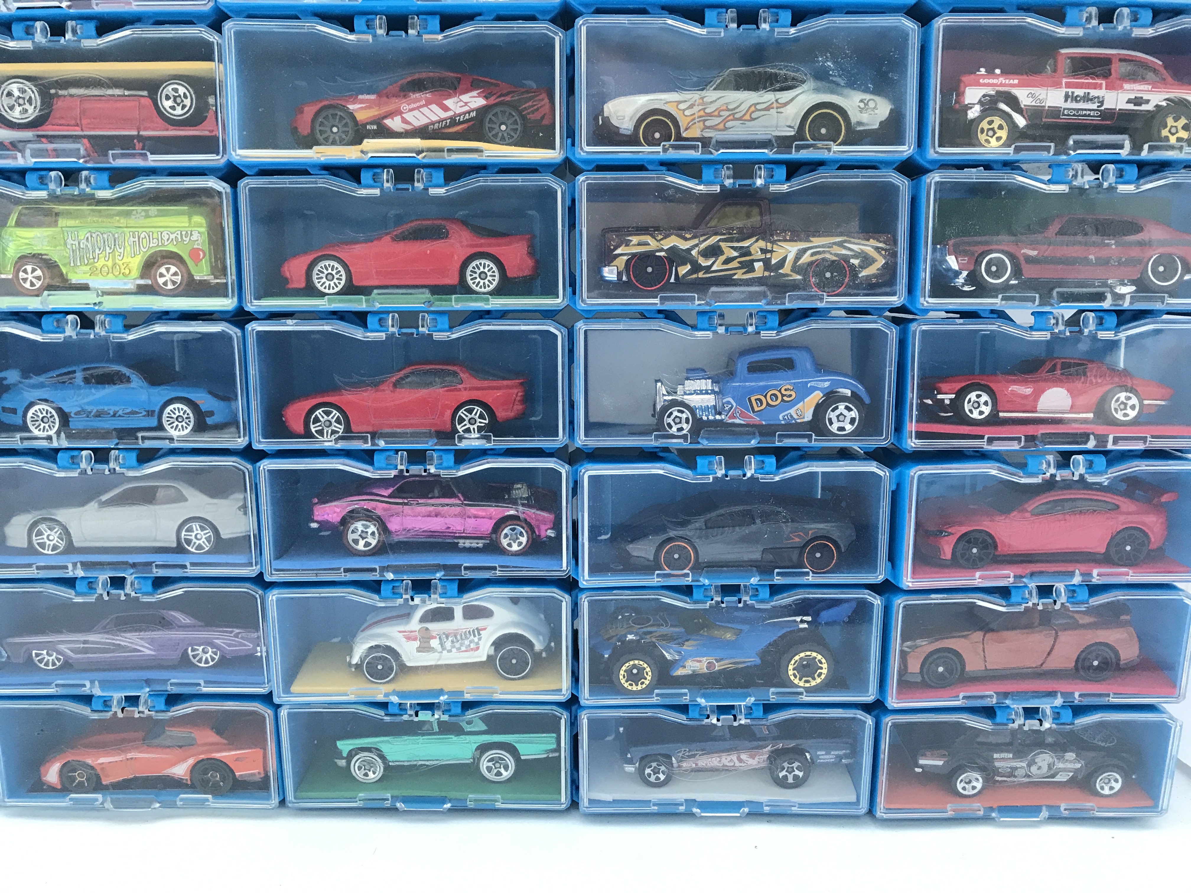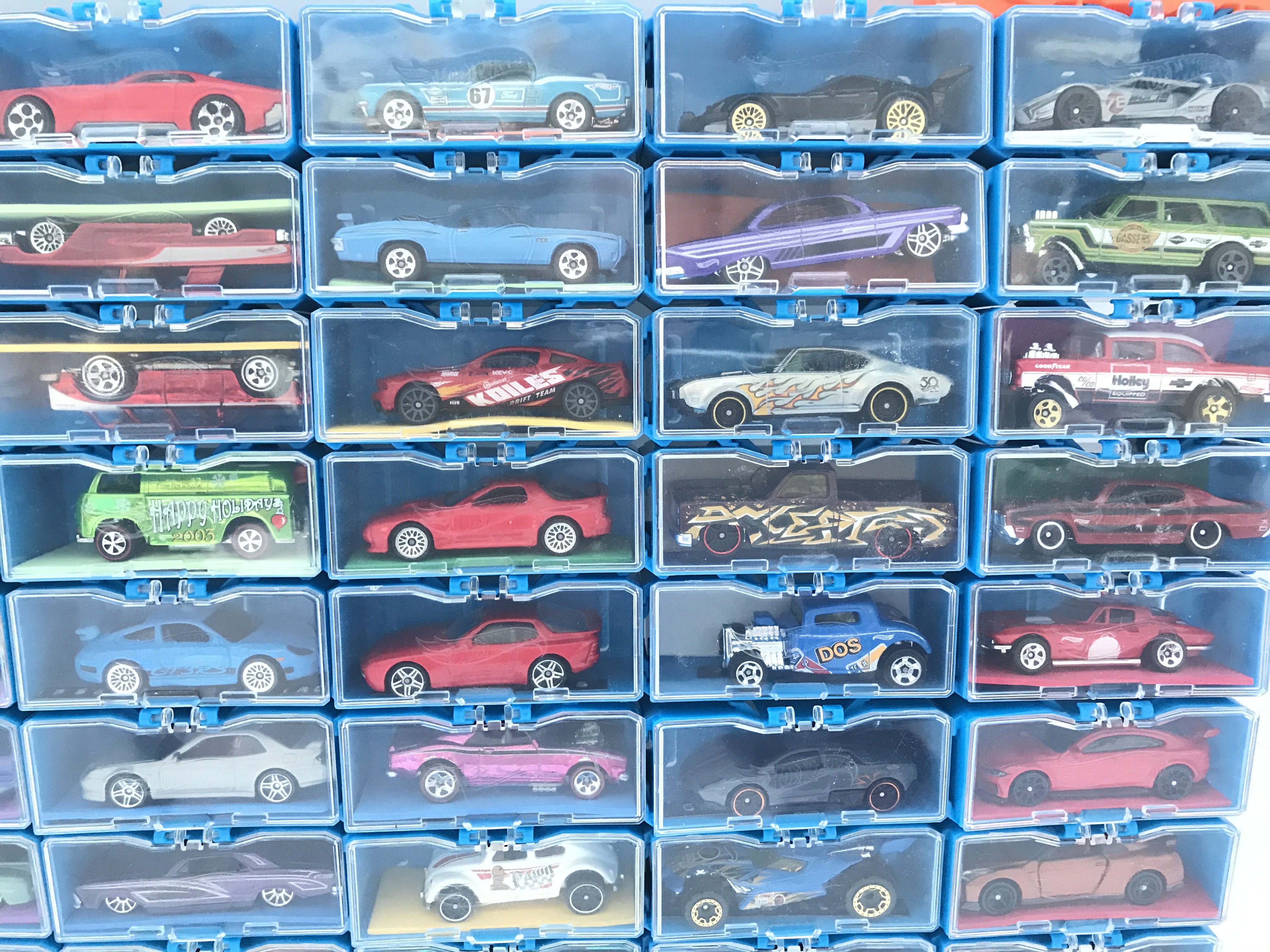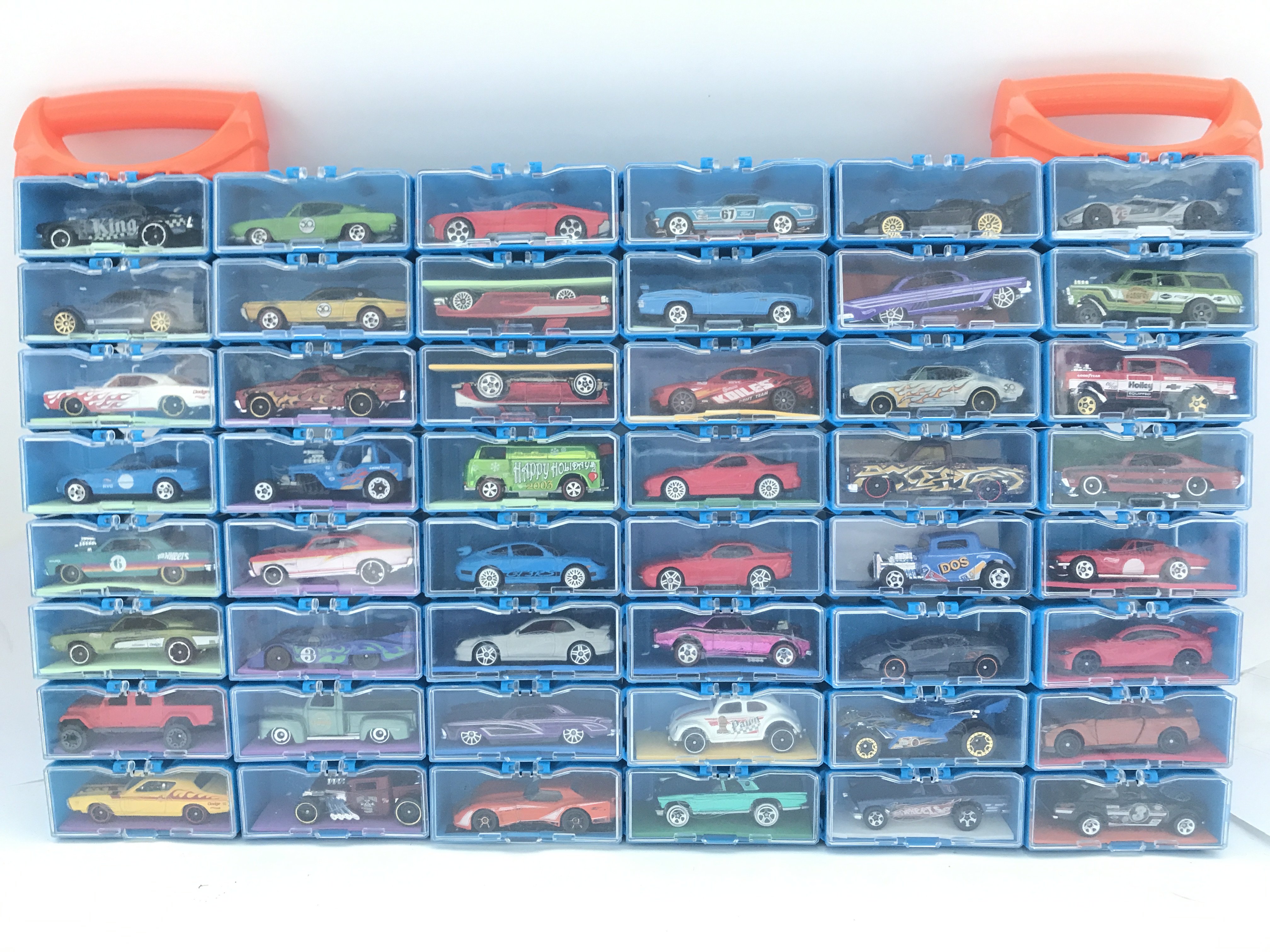 A Collection of Hot Wheels Cars In a multibrick Car Case. No Reserve.
