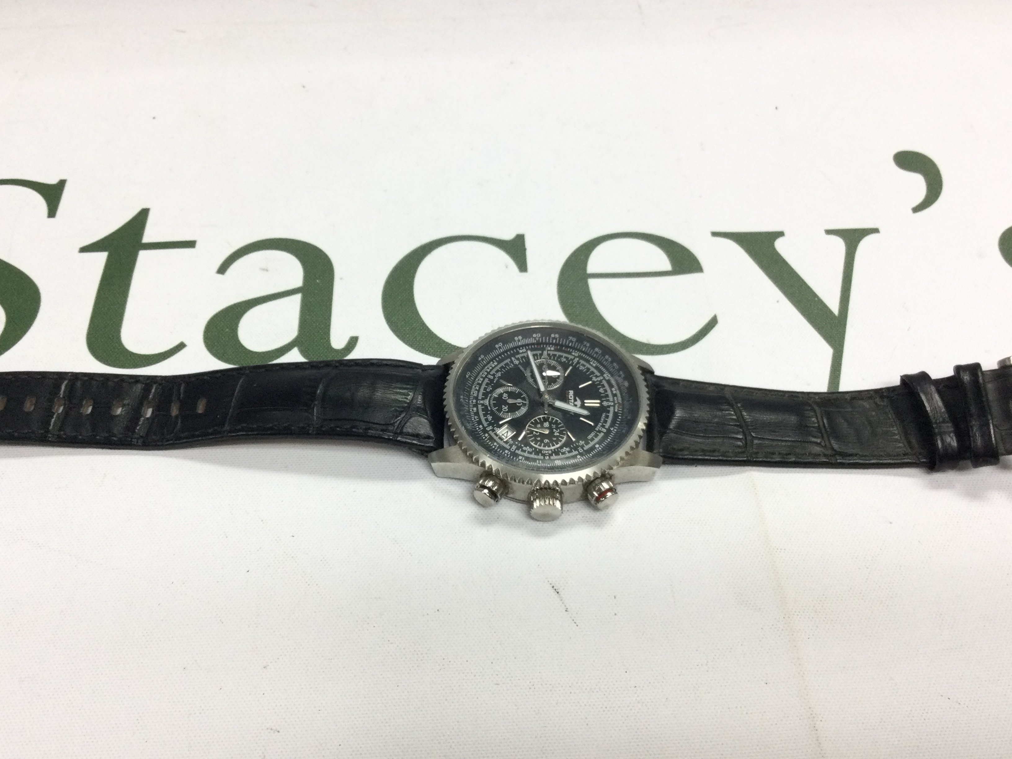 A Rotary aquaspeed Chronograph watch on black leather strap. Postage B