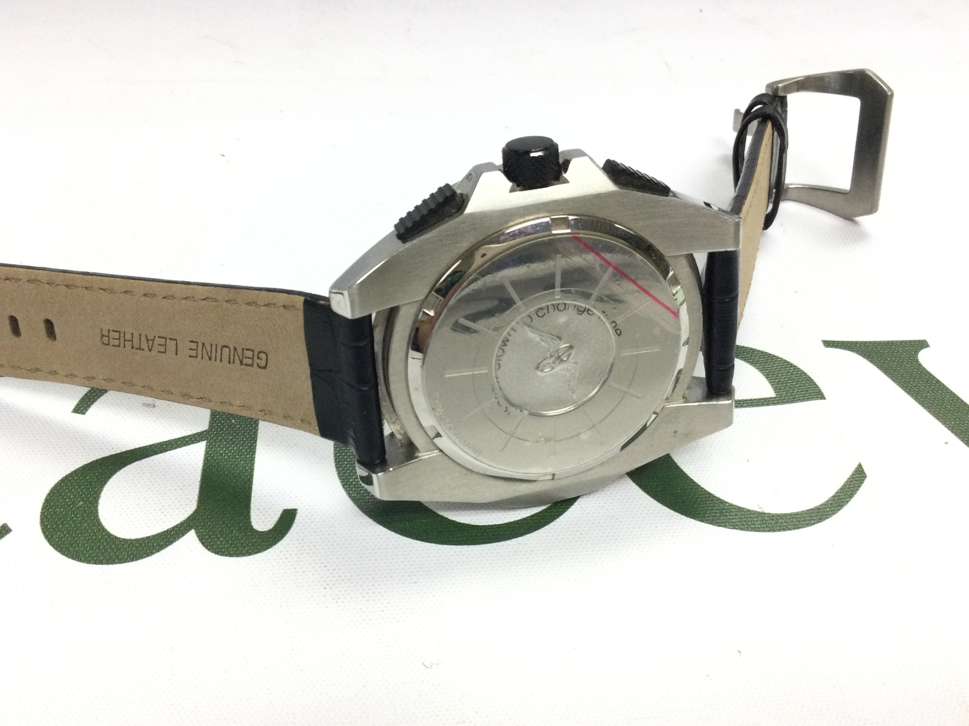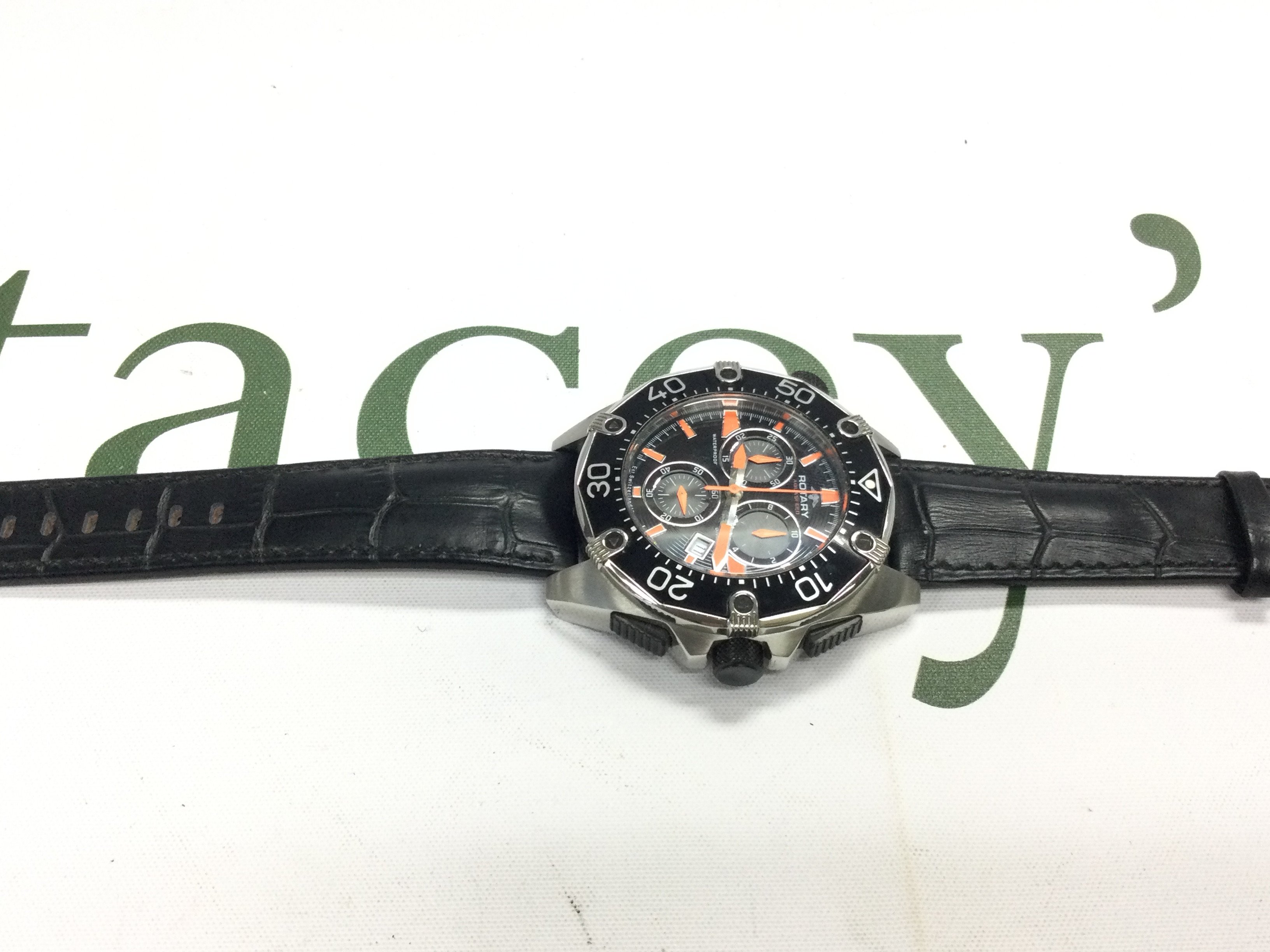 A Rotary aquaspeed Chronograph watch on black leather strap. Postage B