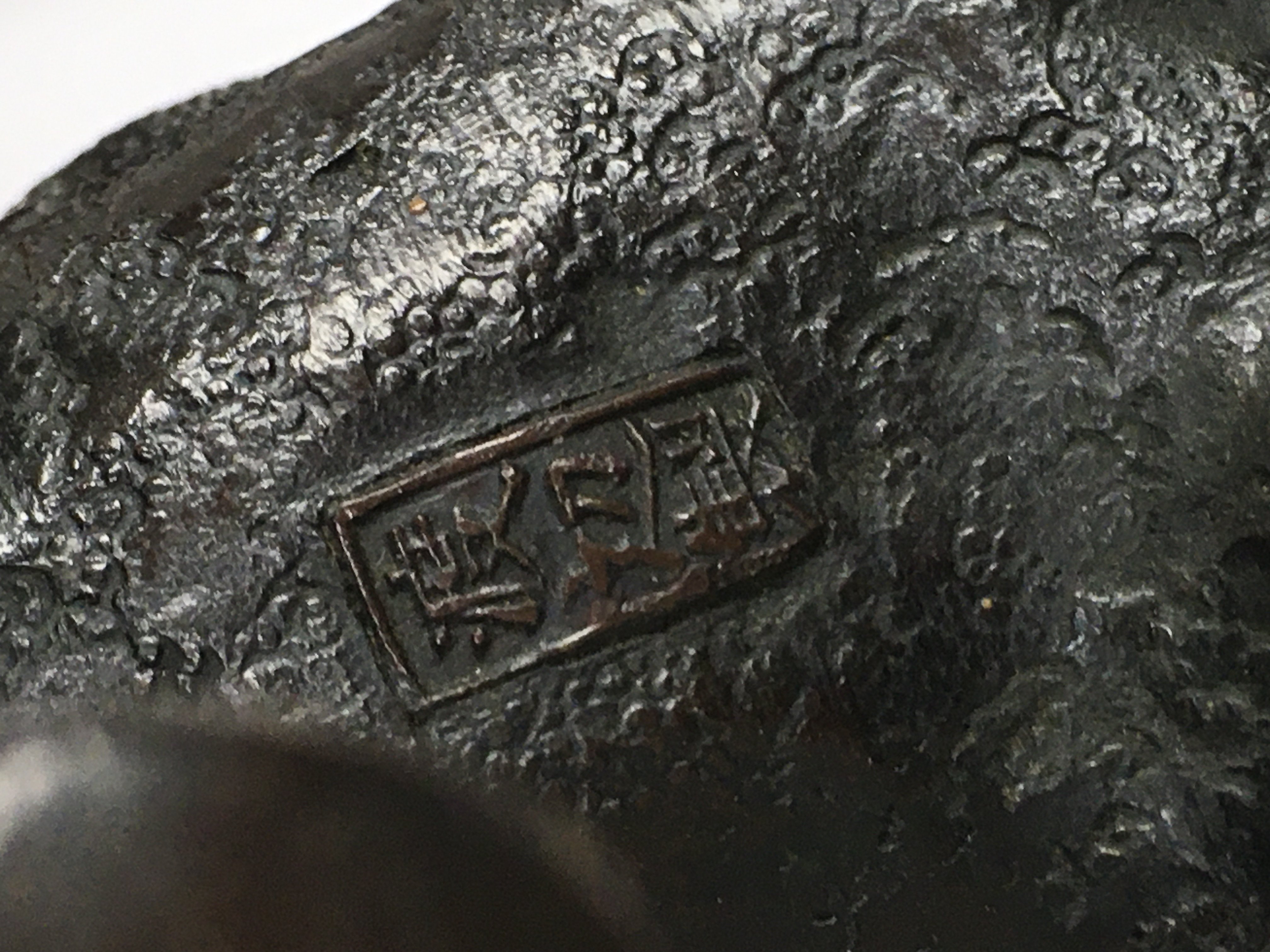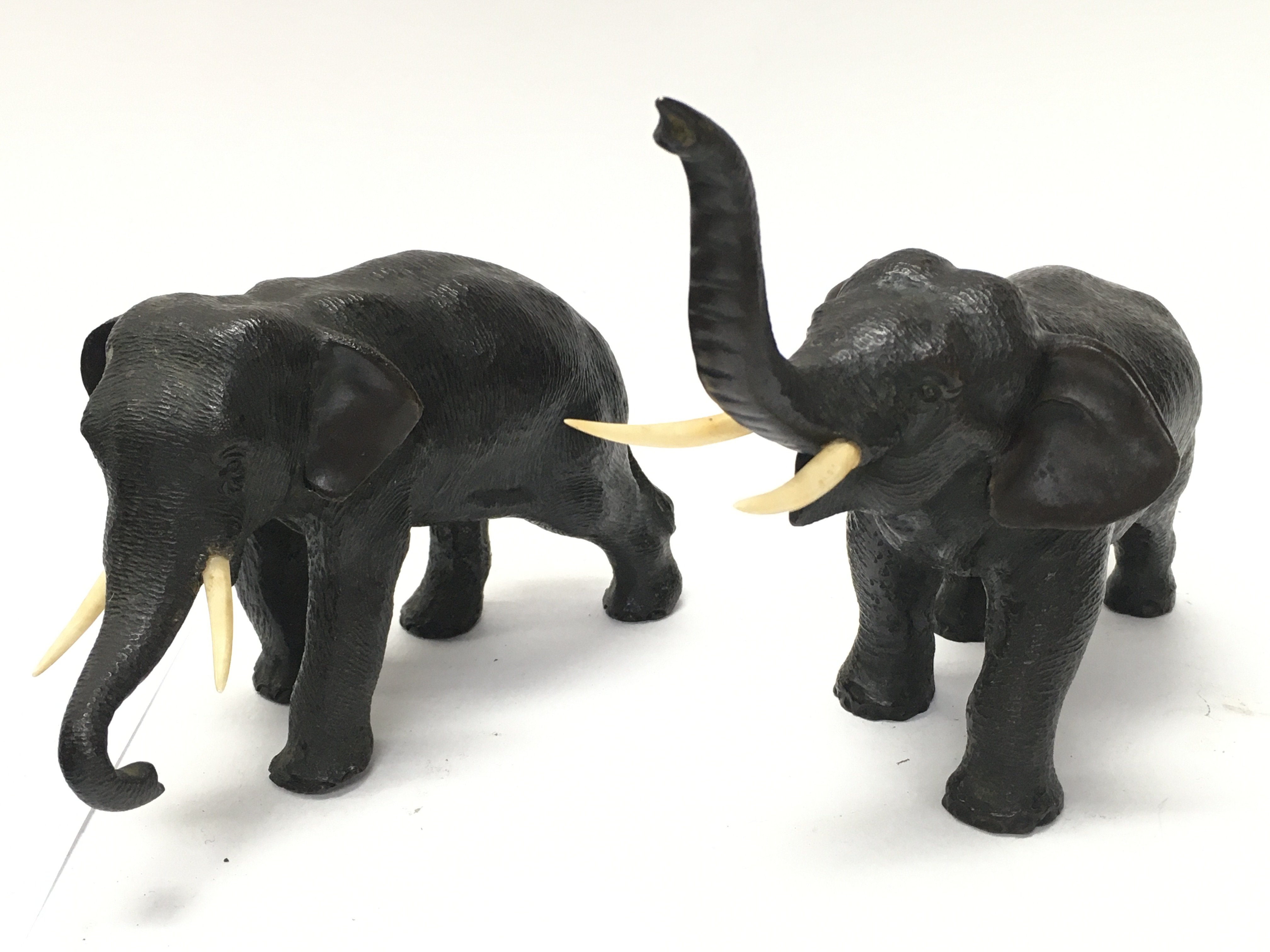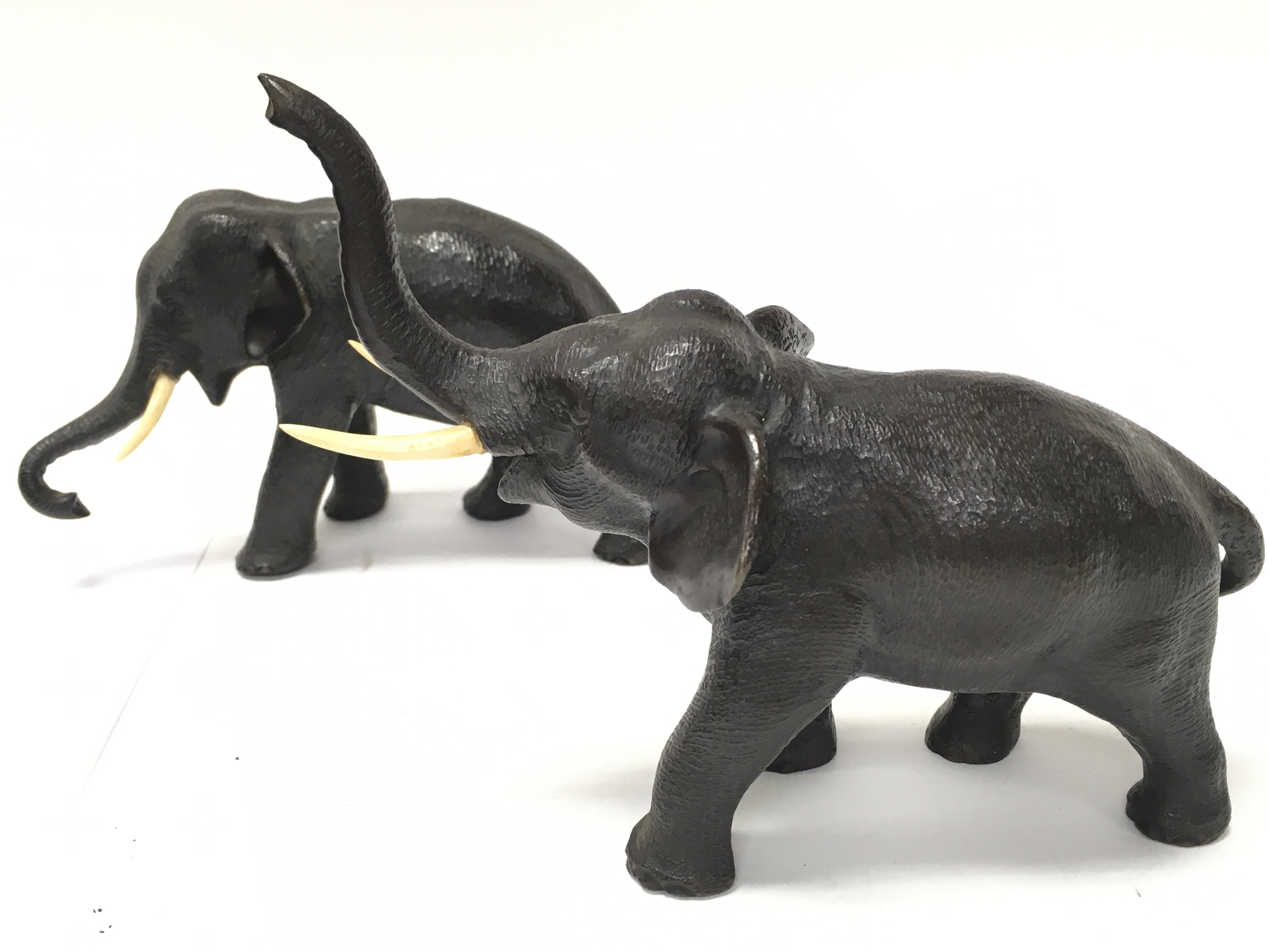 A pair of Japanese small bronze elephant figures ,one marked at the base. Approx 8cm tall. Postage category B