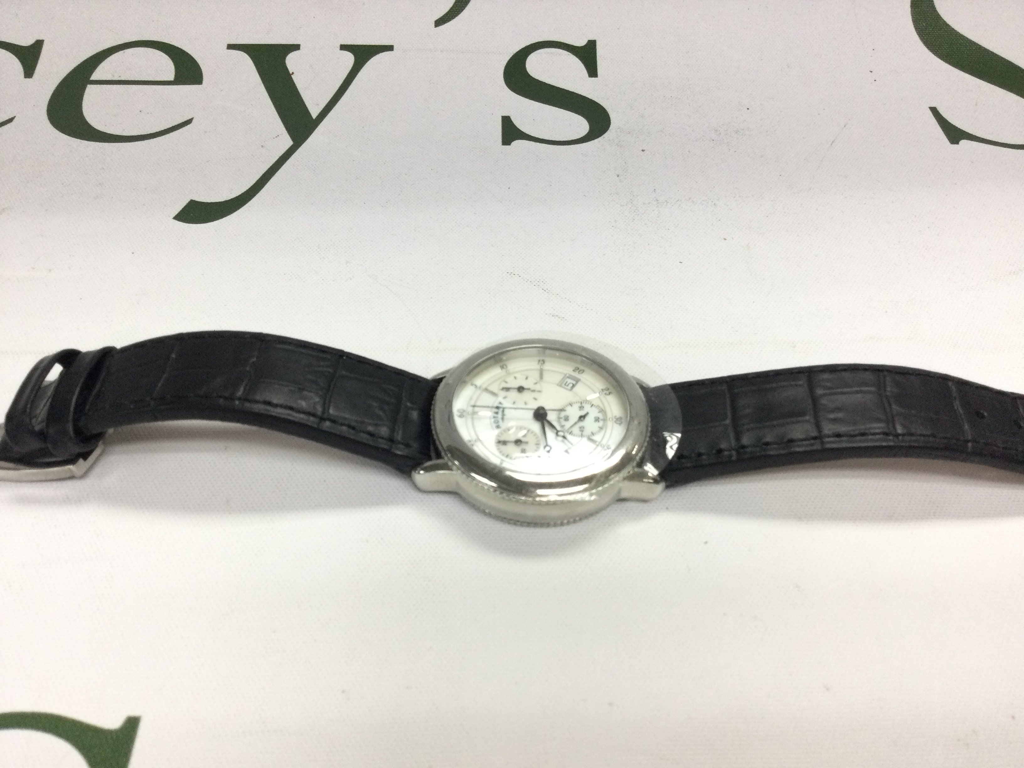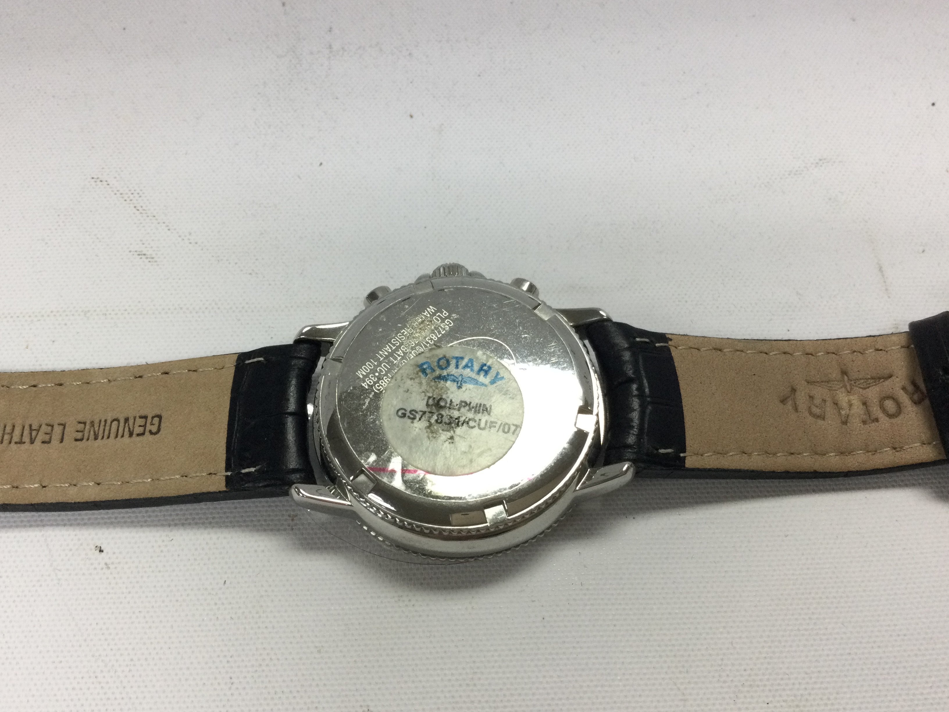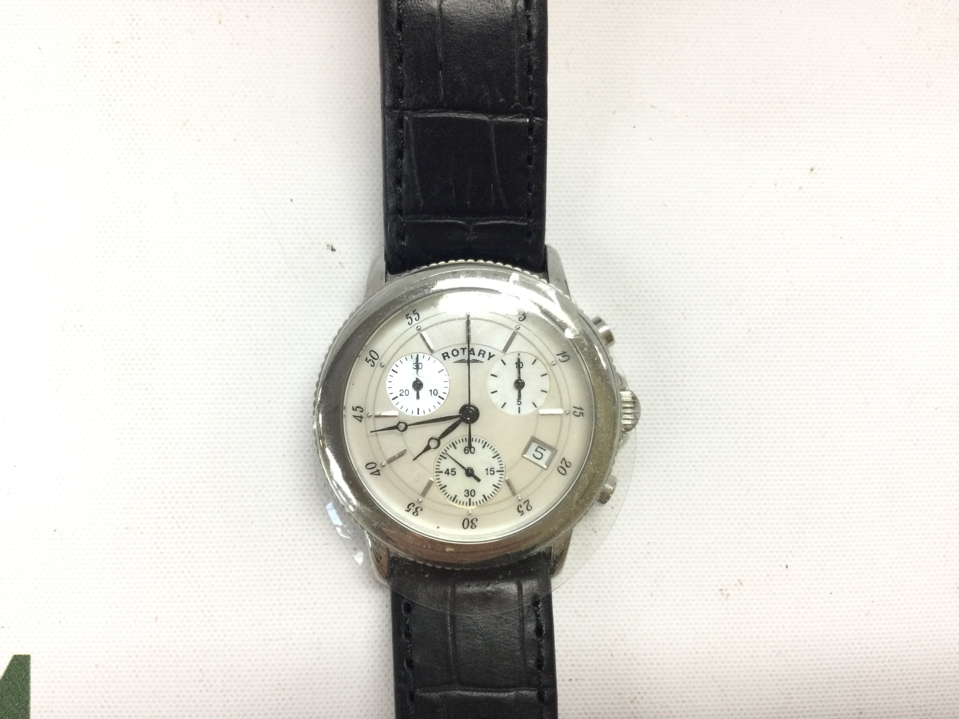 A Rotary Chronograph watch with MOP dial on black leather strap. Postage B