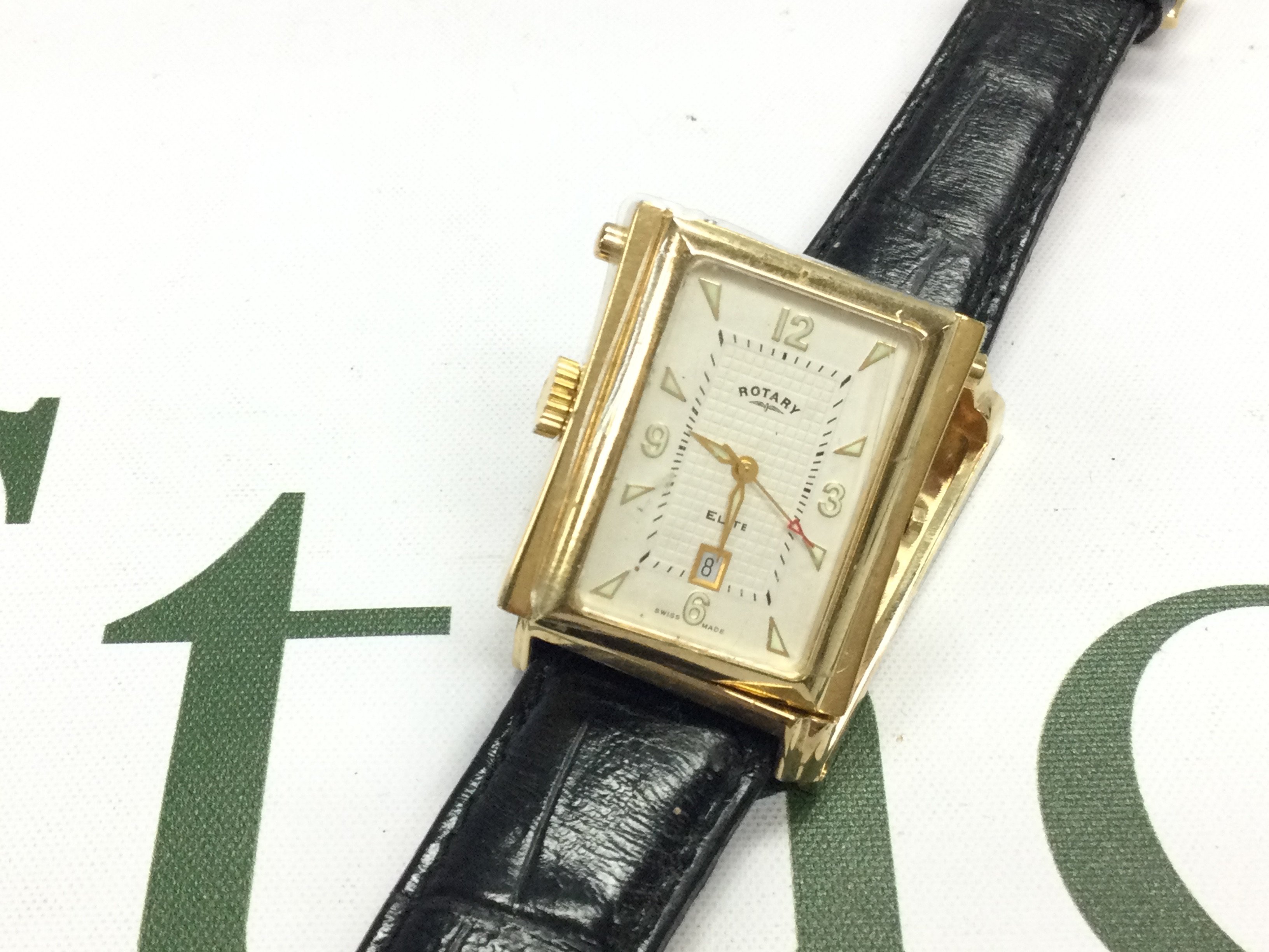 A Rotary elite reverse face watch on black leather strap. Postage B