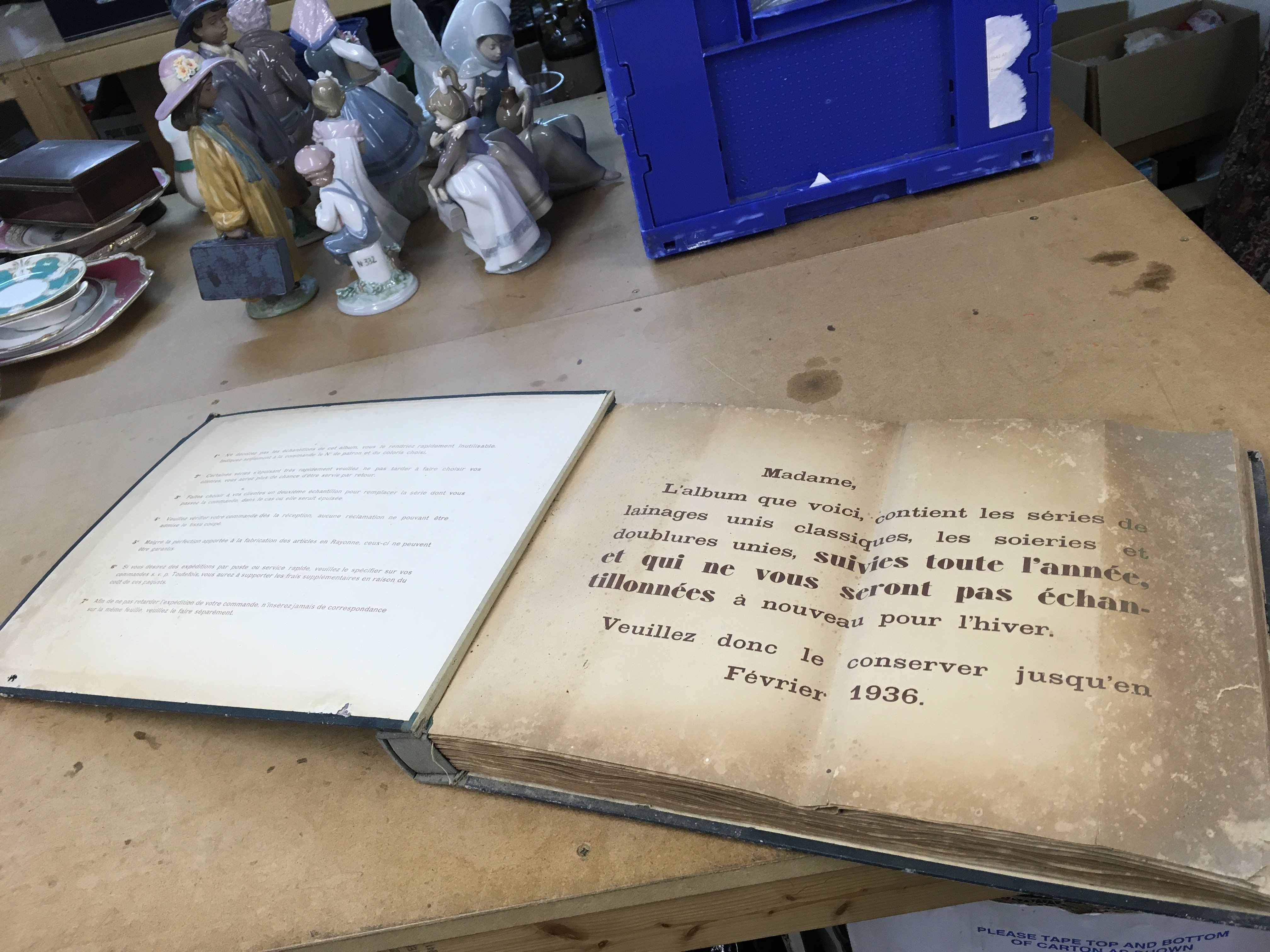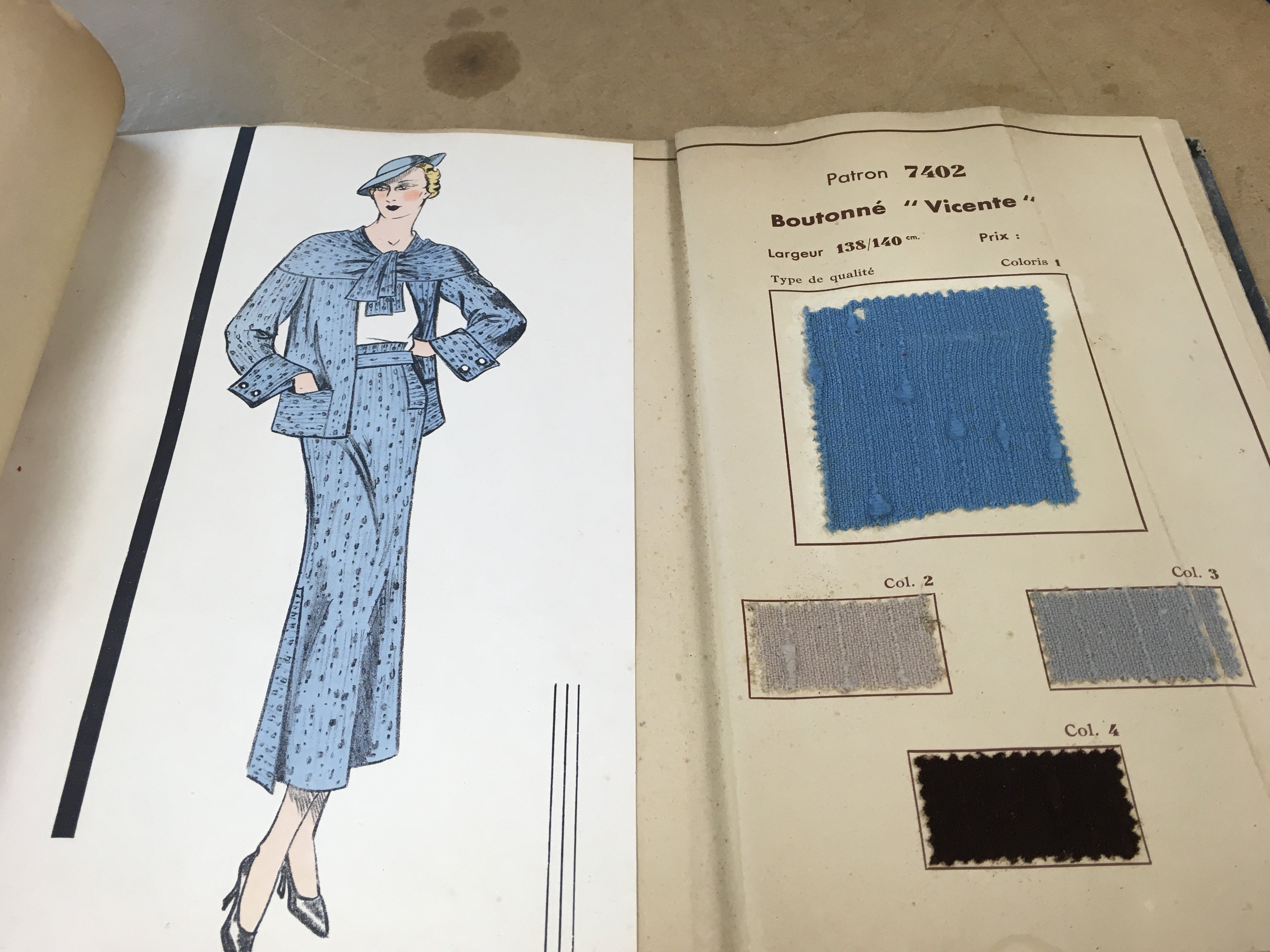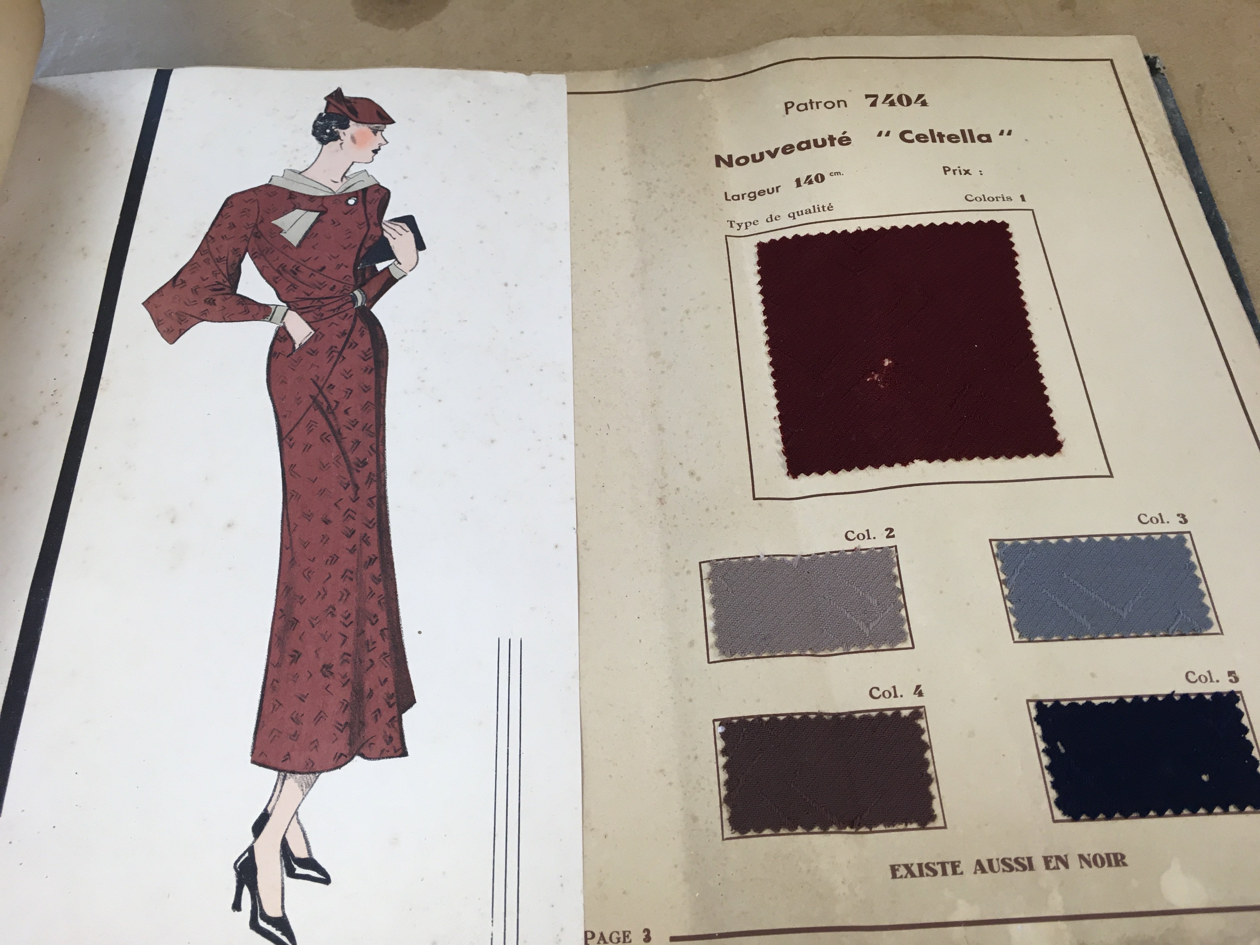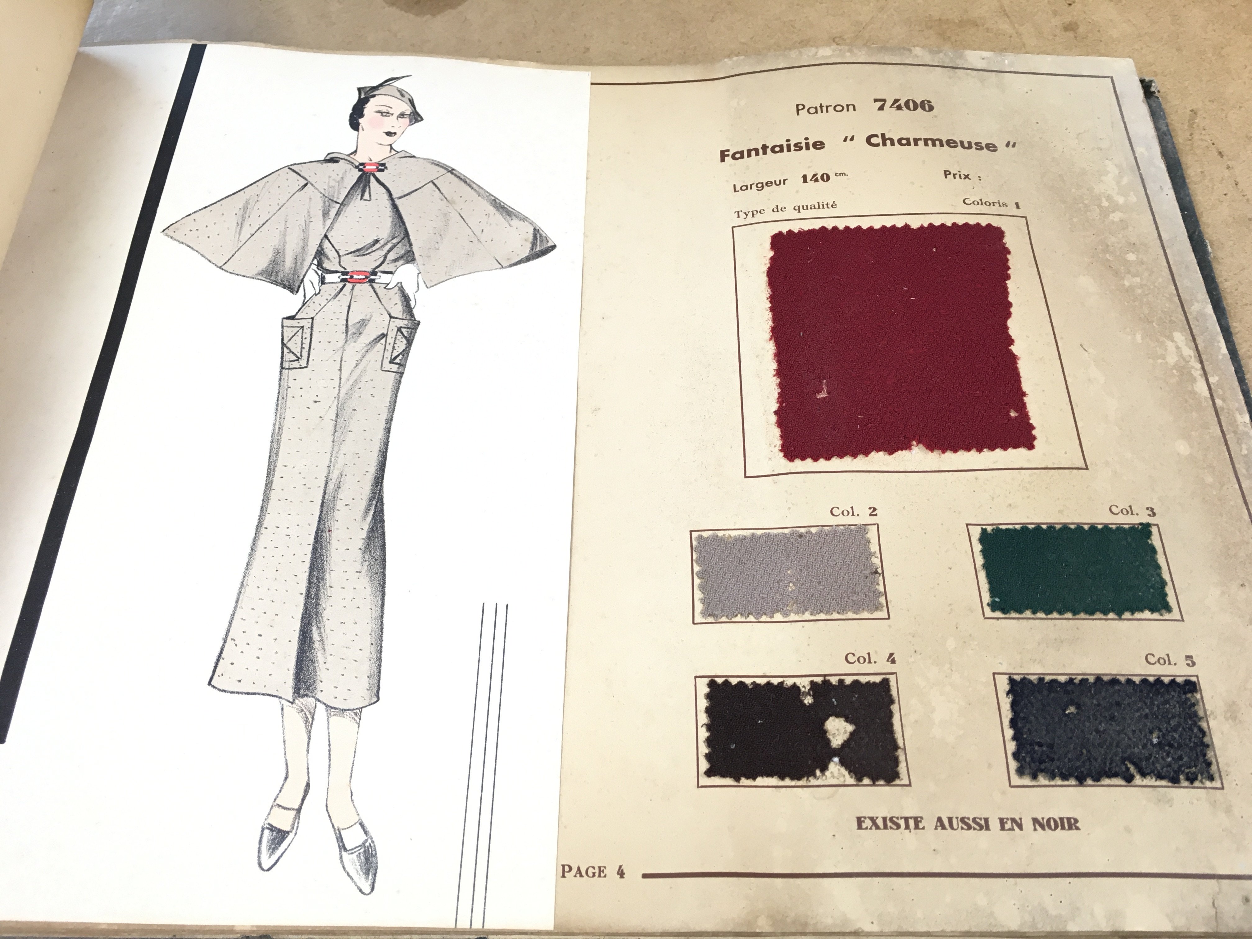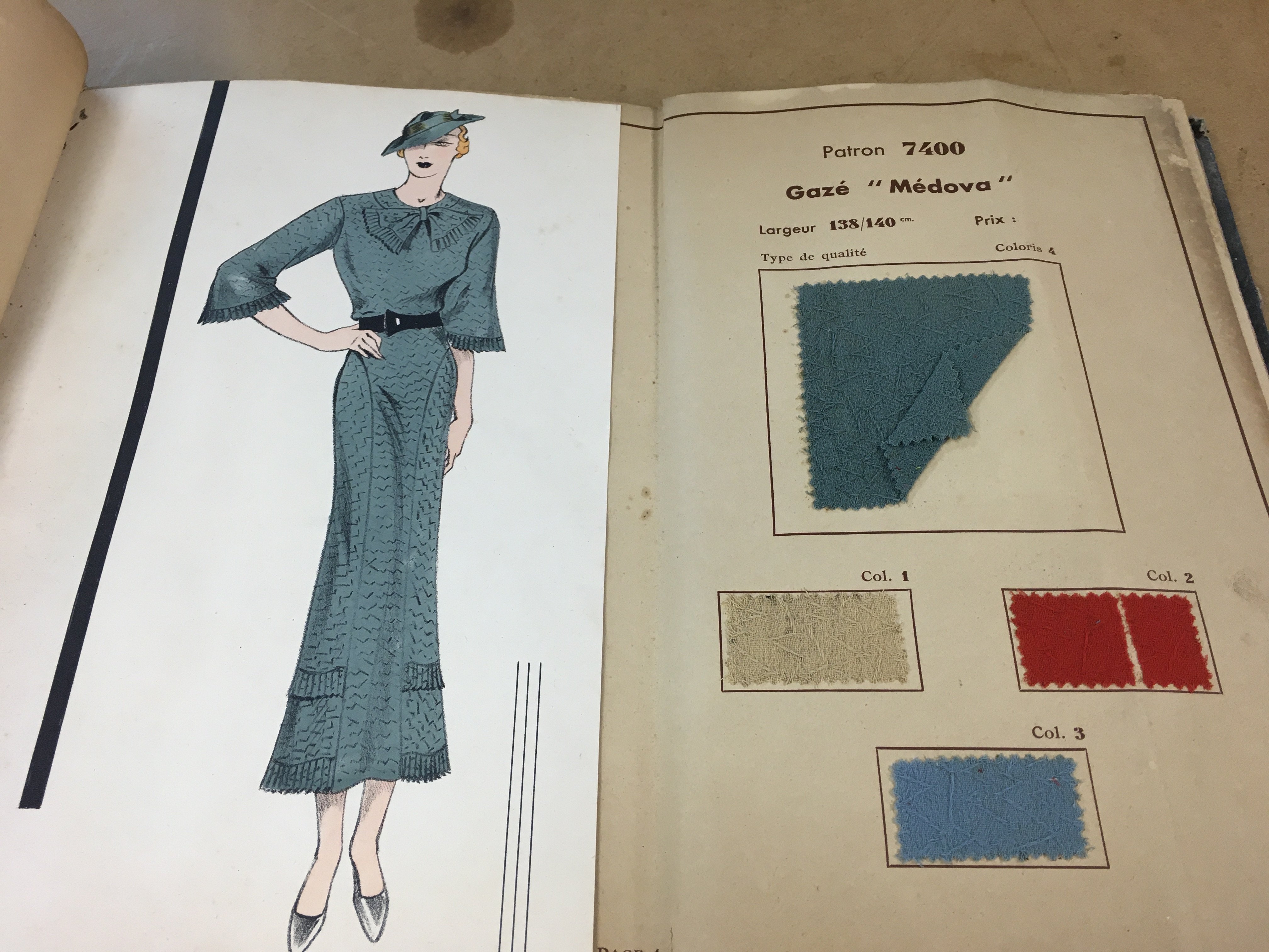 A late 1930s French fashion book, Madame, This album contains the series of classic plain woolens, plain silks and linings, followed all year round, and which will not be sampled again for the winter. Please keep it until February 1936. postage category C