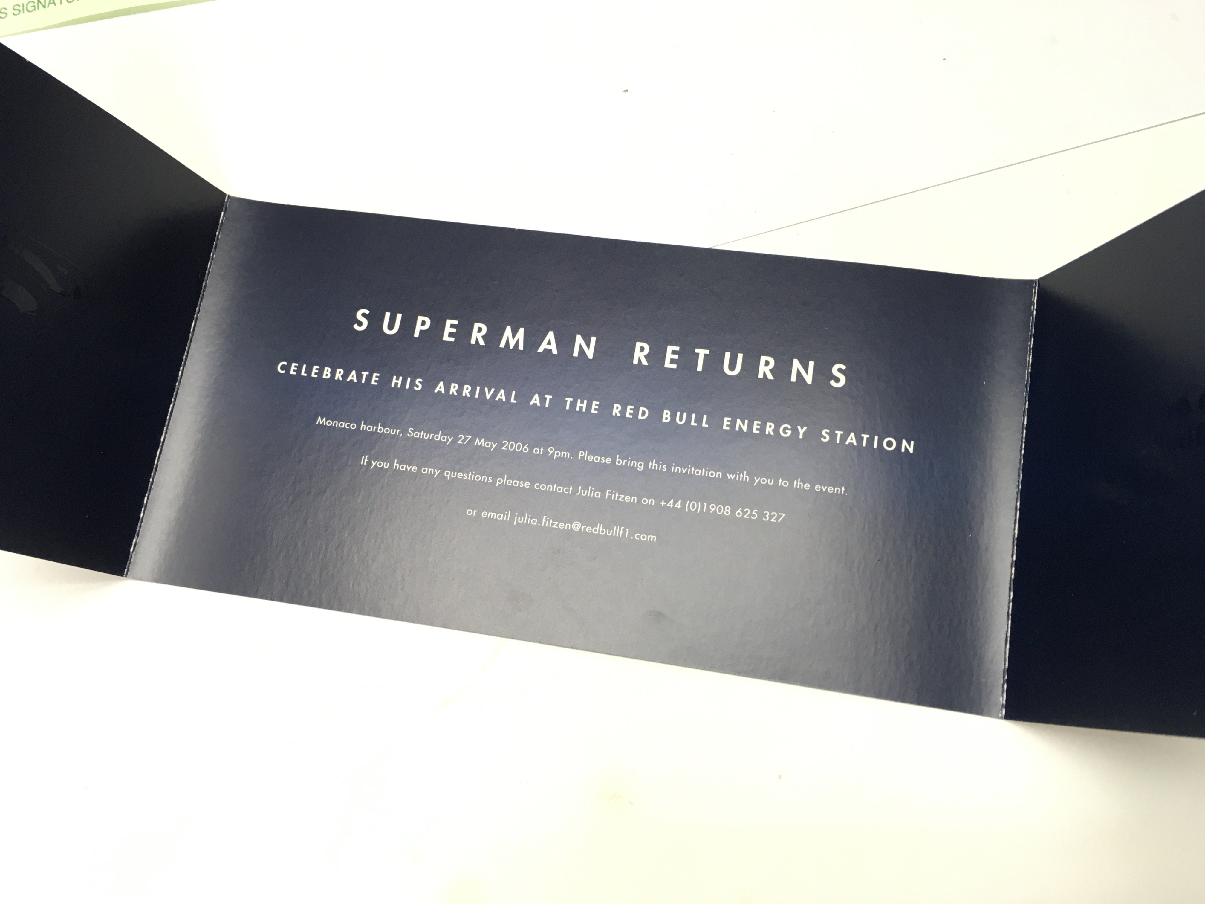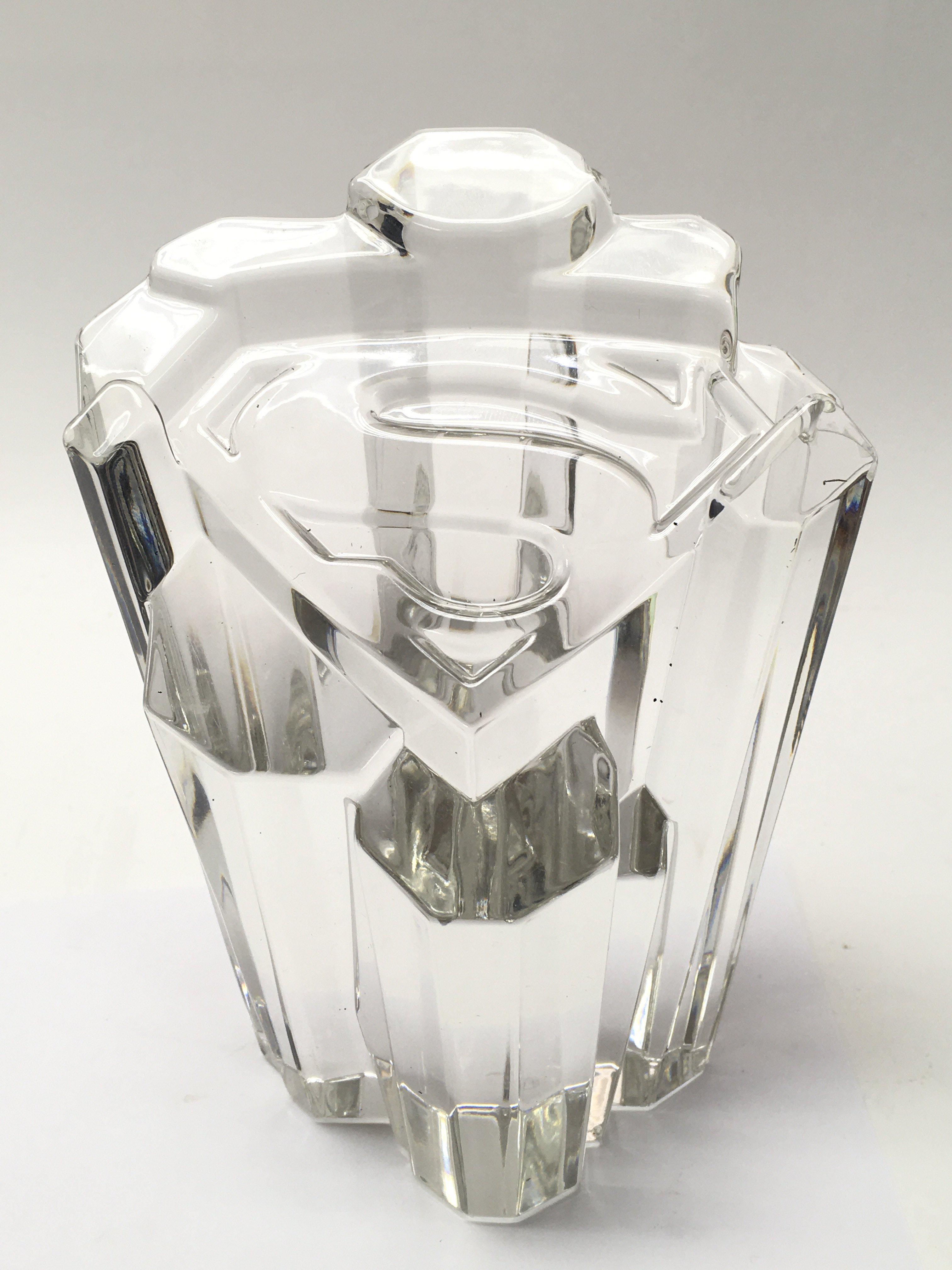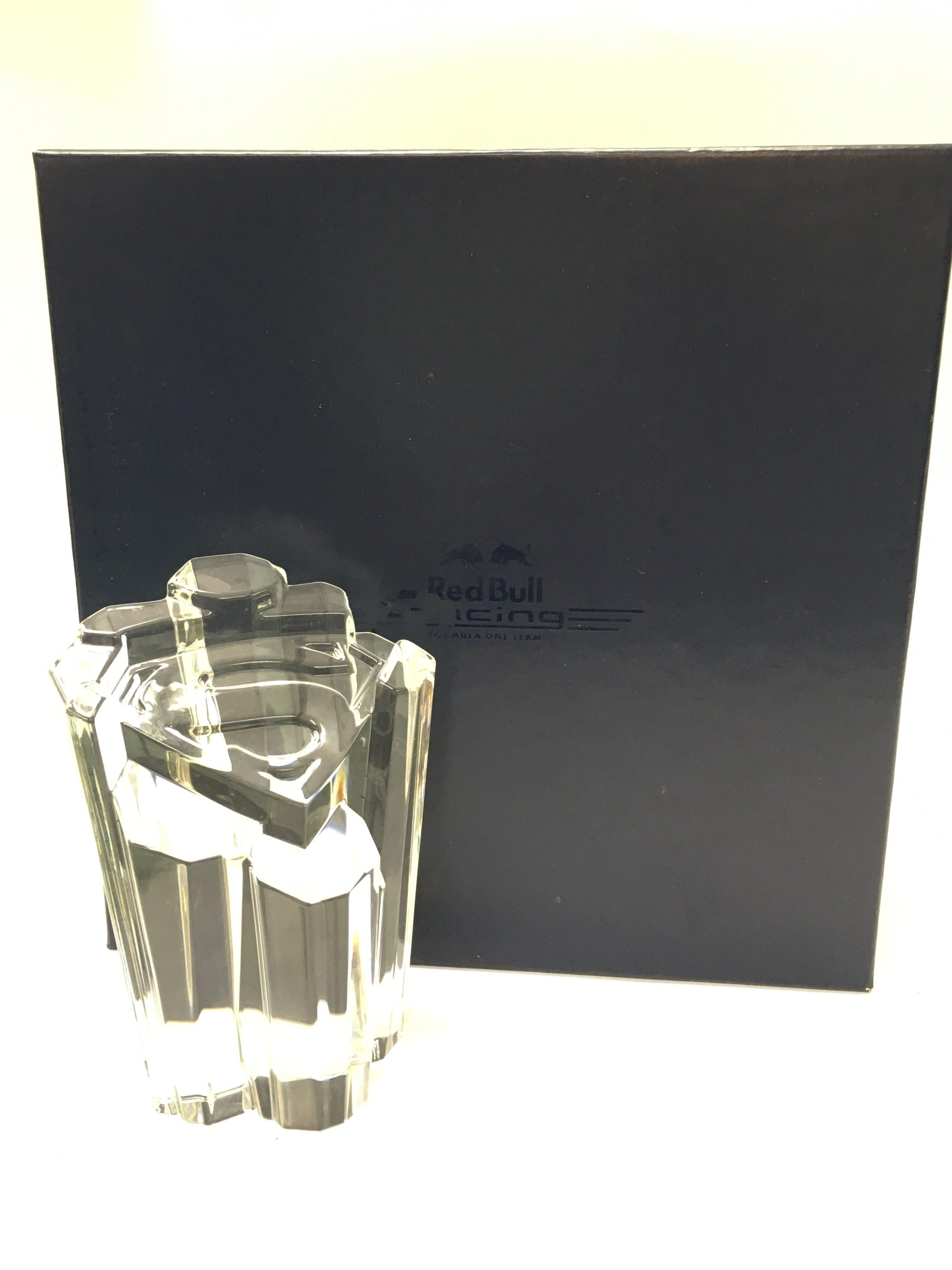 A boxed Red Bull racing glass Superman Returns premier paperweight , 14cm tall. Postage cat C