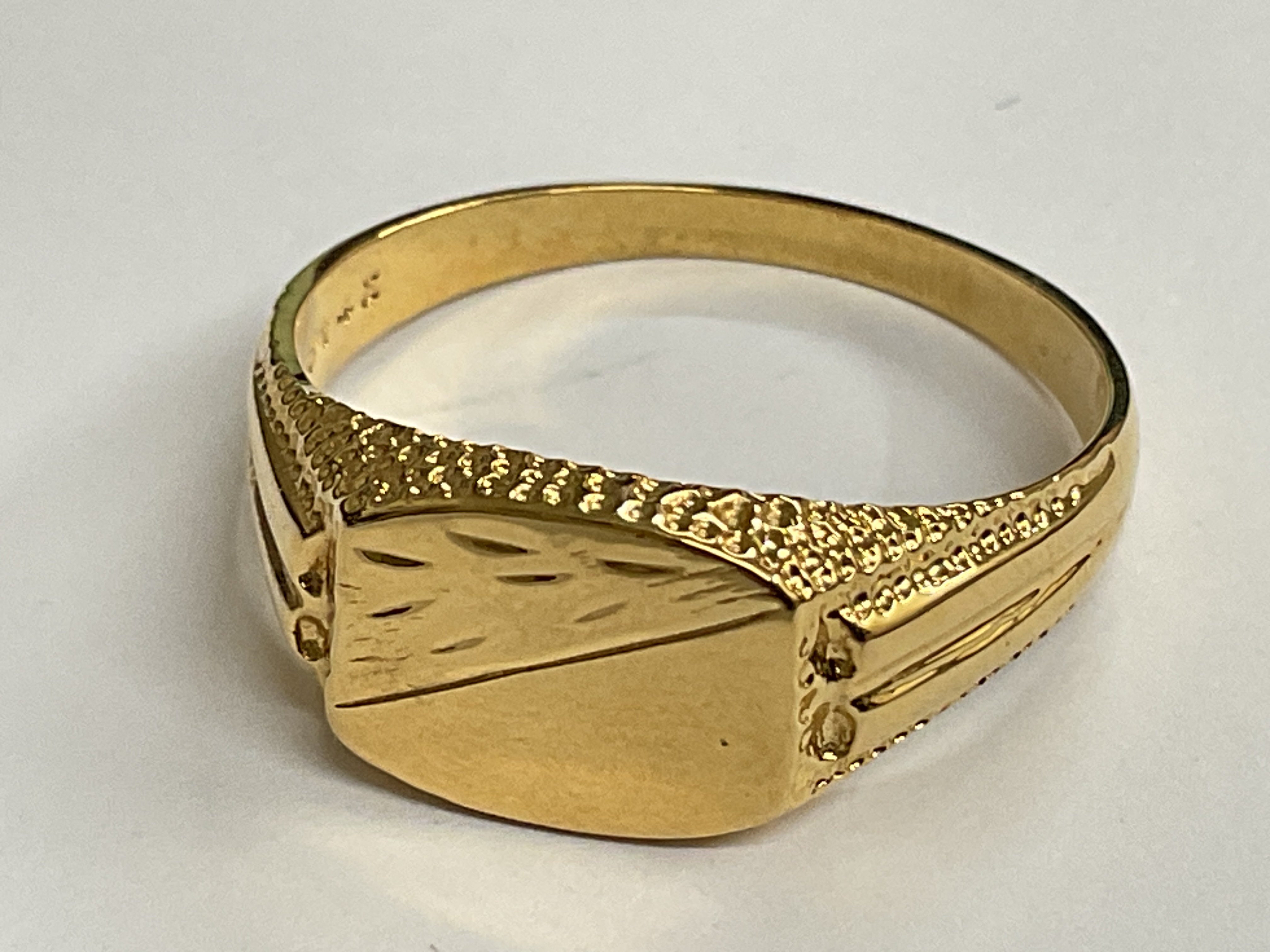 18ct yellow gold signet ring. 5.9 grams. Ring size approx W. Postage category A.