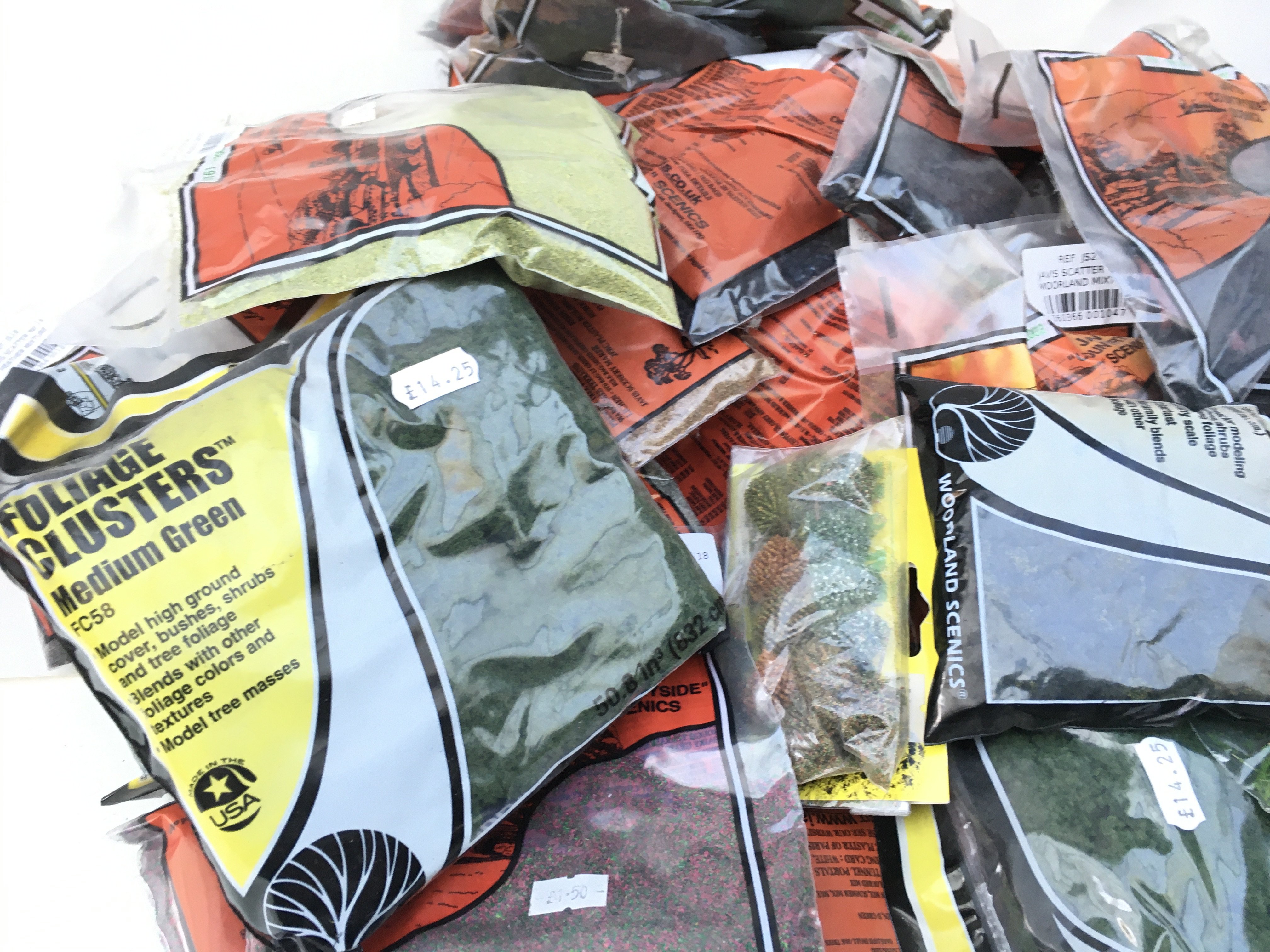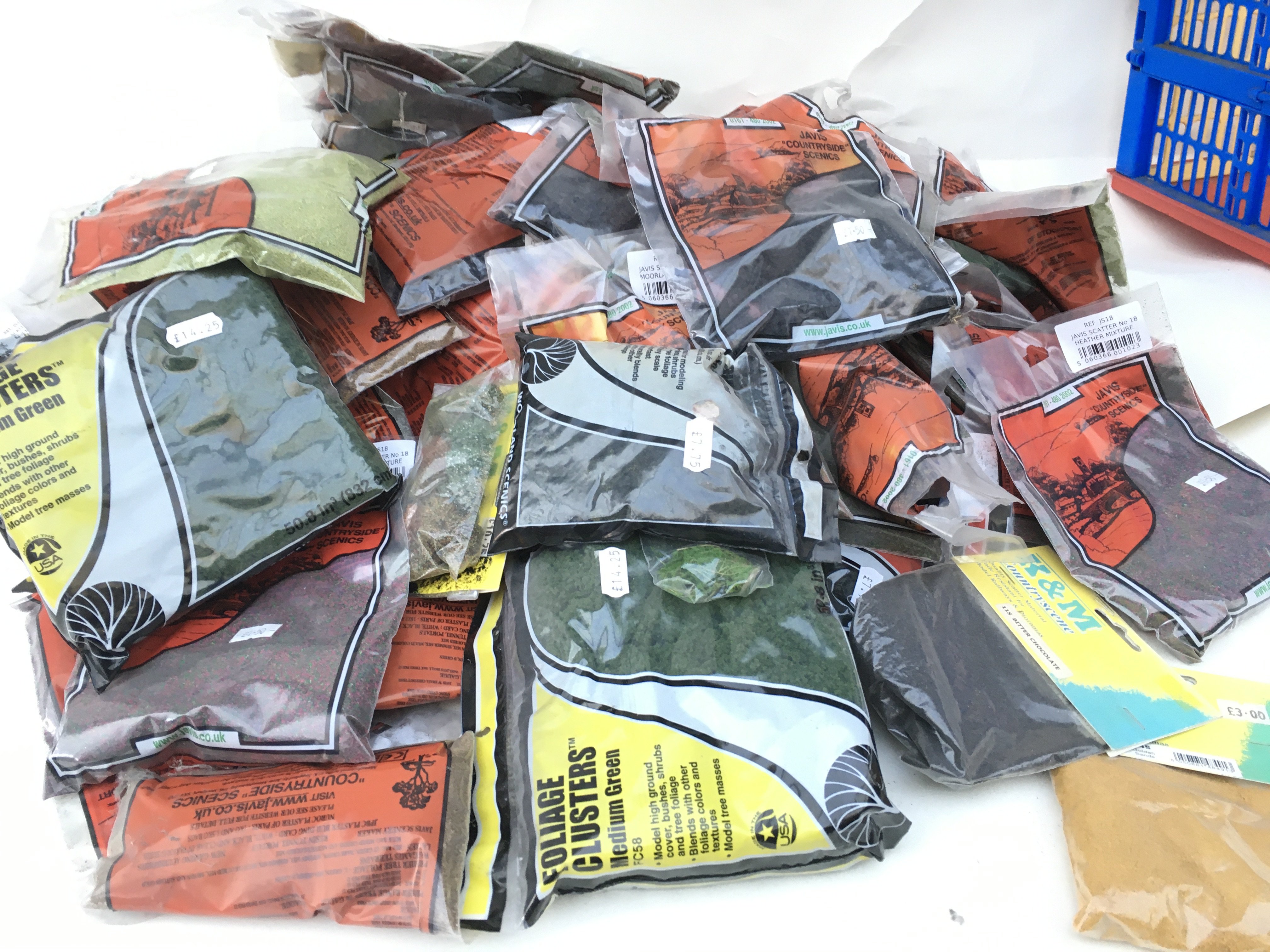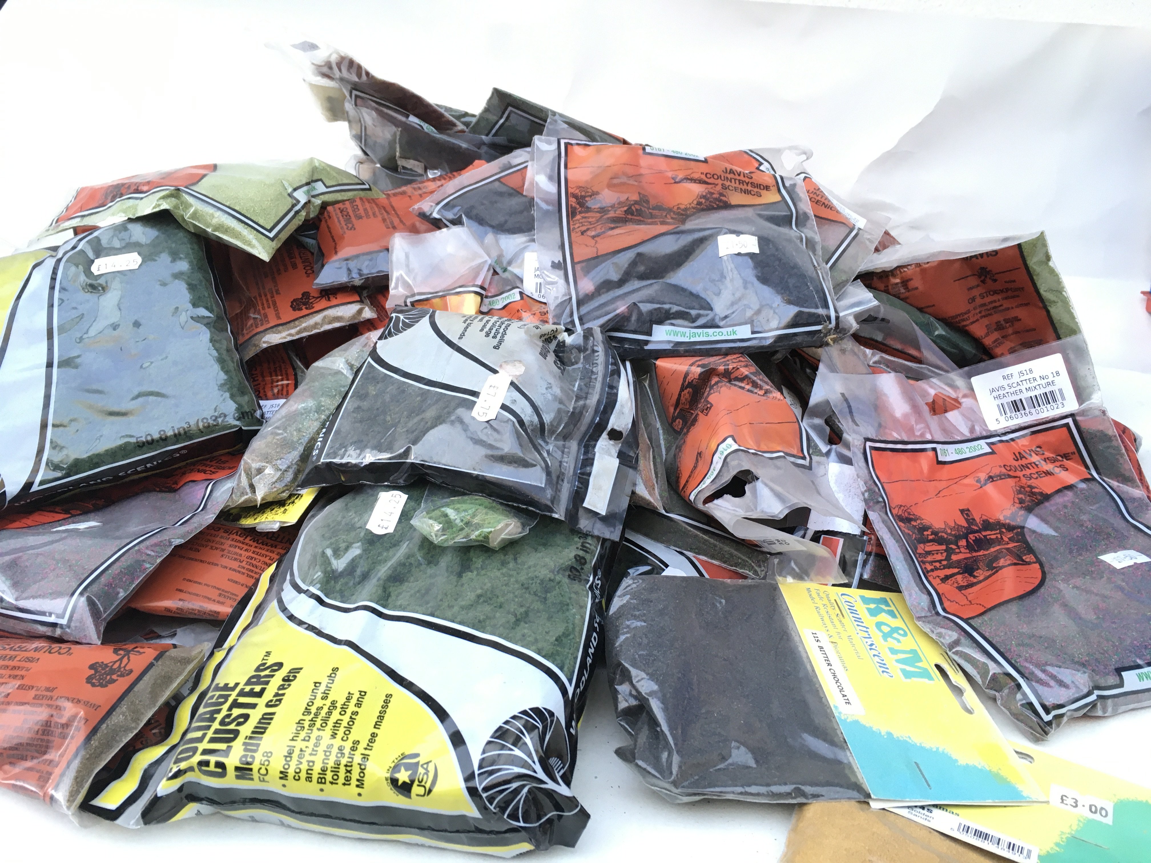 A collection of unopened packages with materials for creating realistic scenery on model layouts such a railway scenes.no reserve