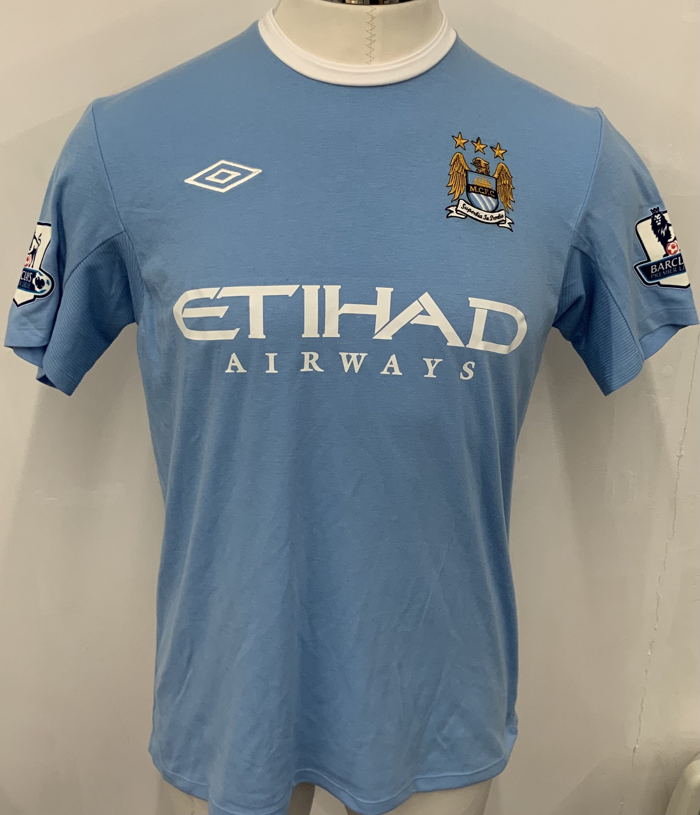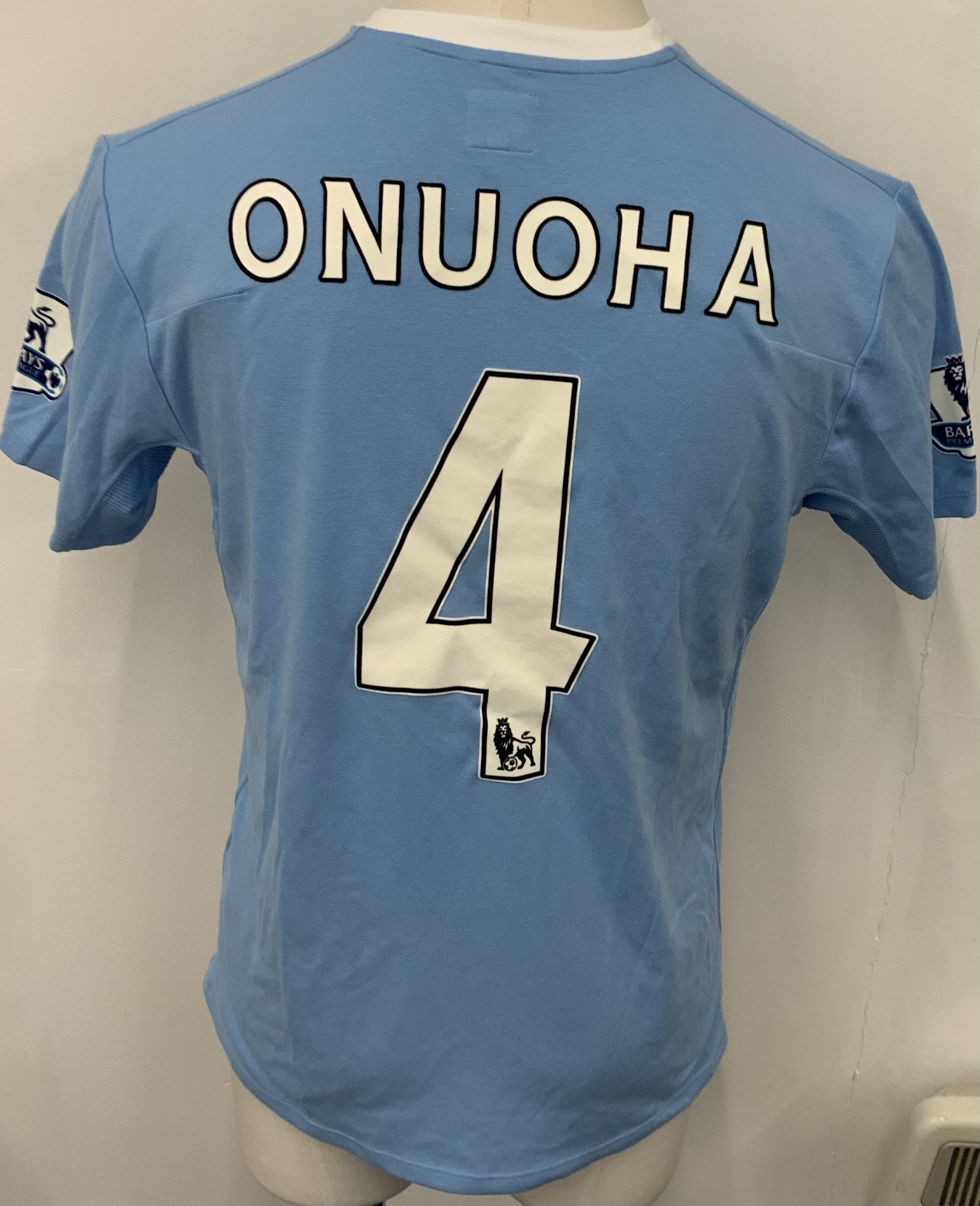 Manchester City 2009 - 2010 Onuoha Match Worn Football Shirt: Blue short sleeve Umbro from 1st season of Etihad Sponsorship. Premier League badging to sleeve and Onuoha 4 to rear.