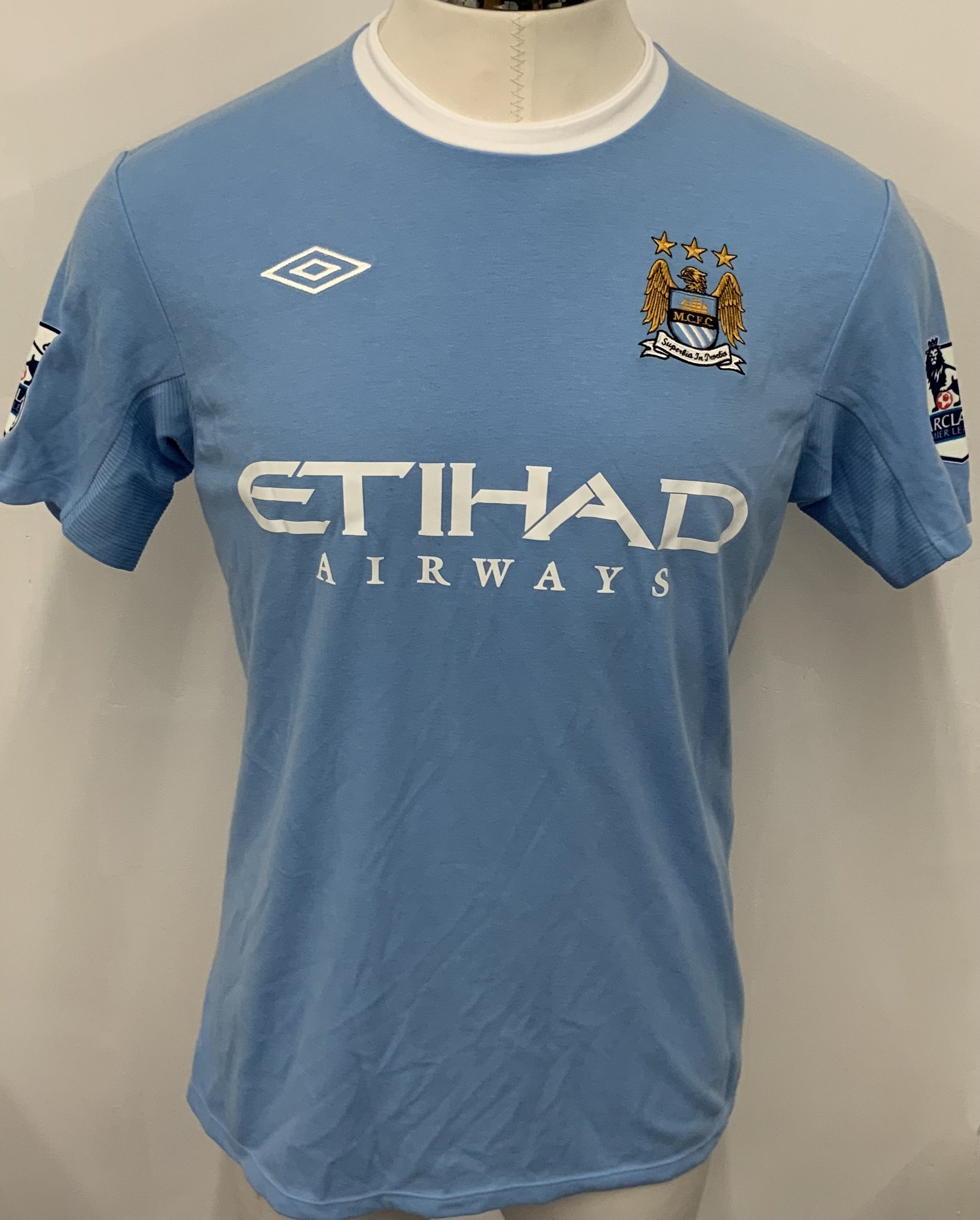 Manchester City 2009 - 2010 Etuhu Match Issued Football Shirt: Blue short sleeve Umbro shirt from 1st season of Etihad Sponsorship. Premier League badging to sleeve and Etuhu 29 to rear. Please note in August 2009 he was transferred on loan to Cardiff and never got to play in this season for City.