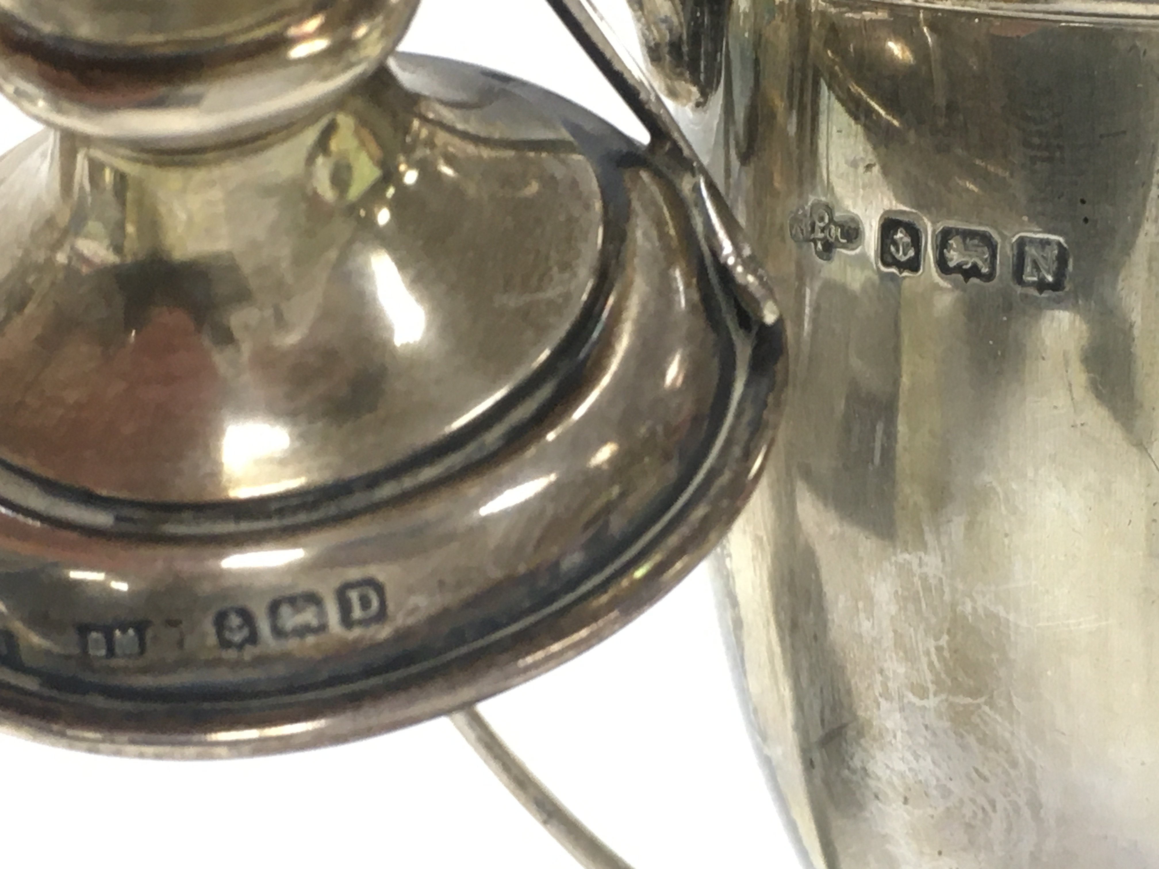A Collection of silver hallmarked trophies. 5 to 20cm tall approximately. Postage category B