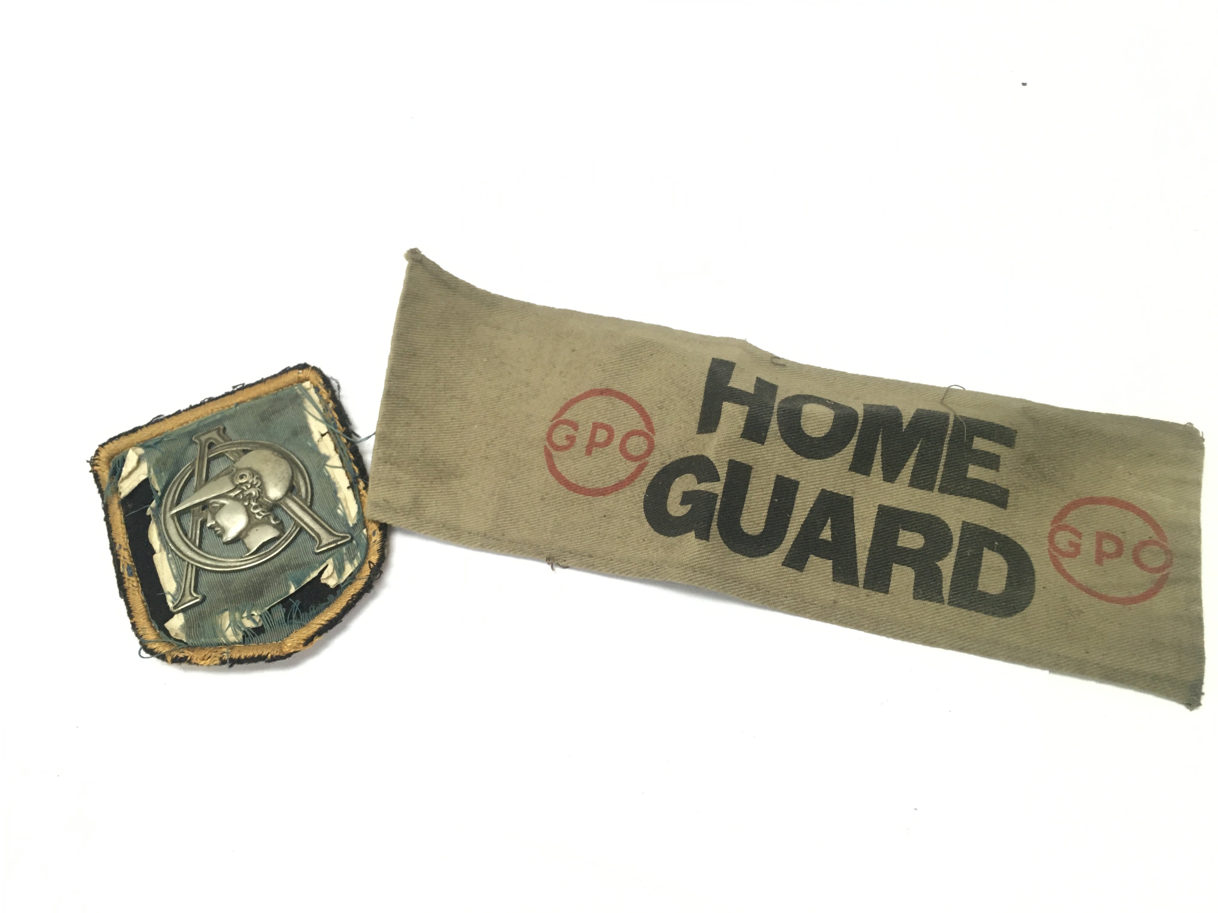 WW2 British GPO home guard arm badge and a badge . Postage cat A