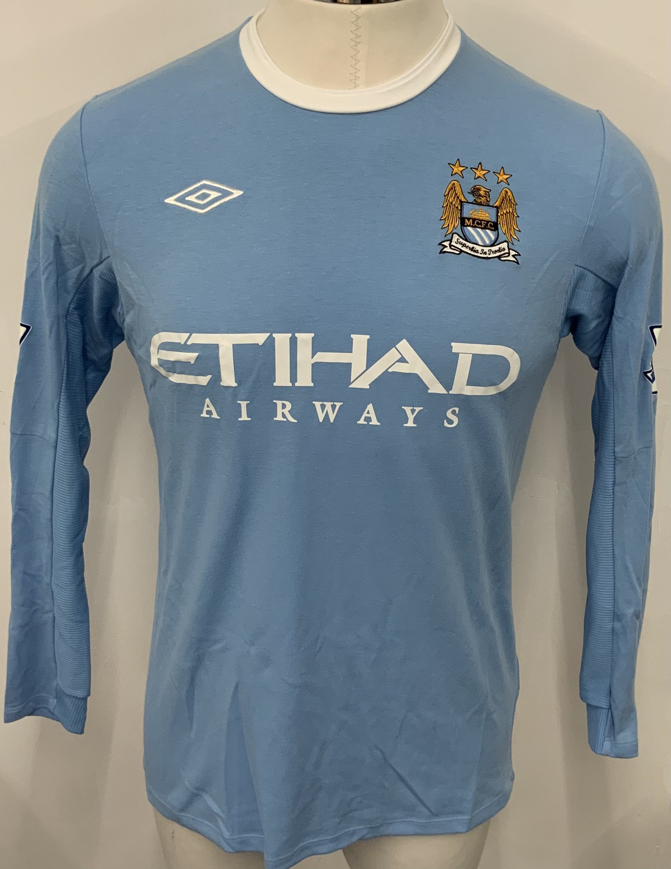 Manchester City 2009 - 2010 Bridge Match Worn Football Shirt: Blue long sleeve Umbro shirt from 1st season of Etihad Sponsorship. Premier League badging to sleeve and Bridge 3 to rear.