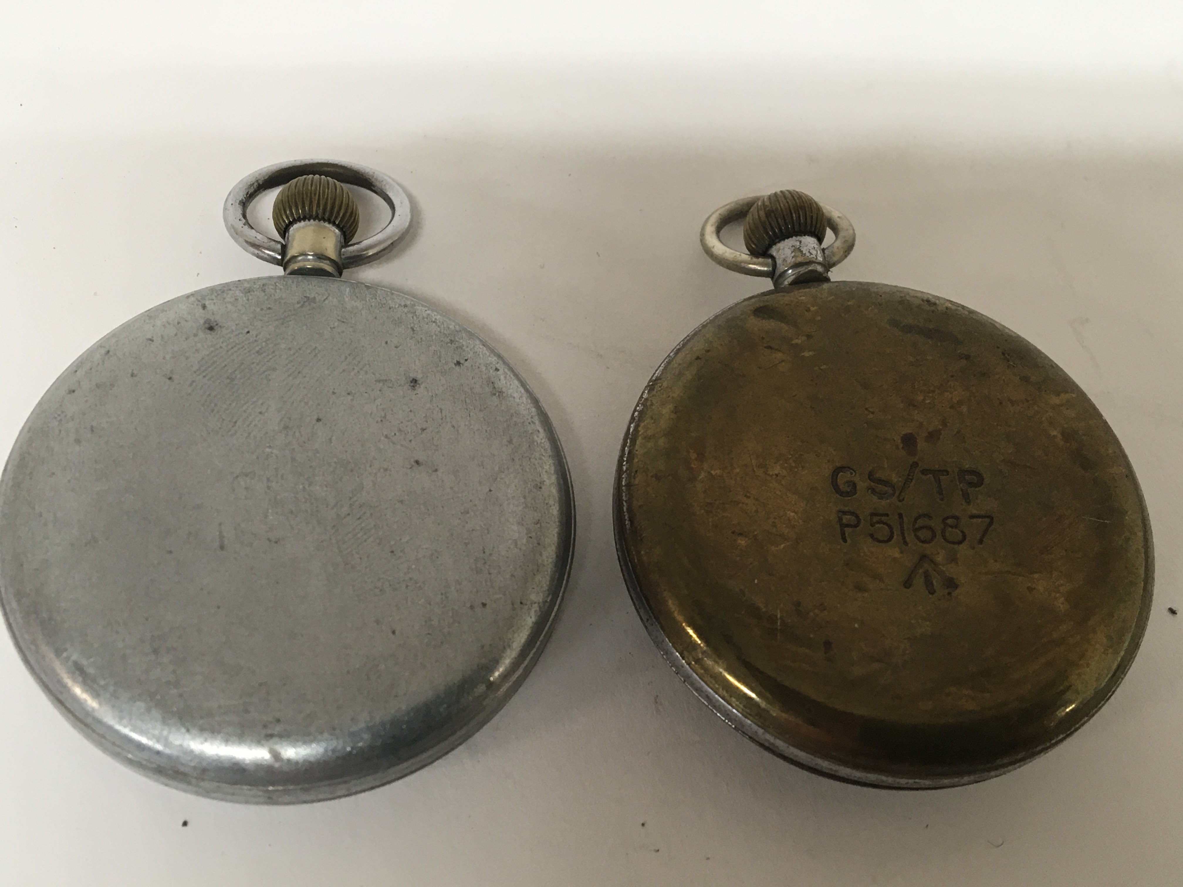 Two Military button wind pocket watches Swiss Made Helvetia both seen working. (2)