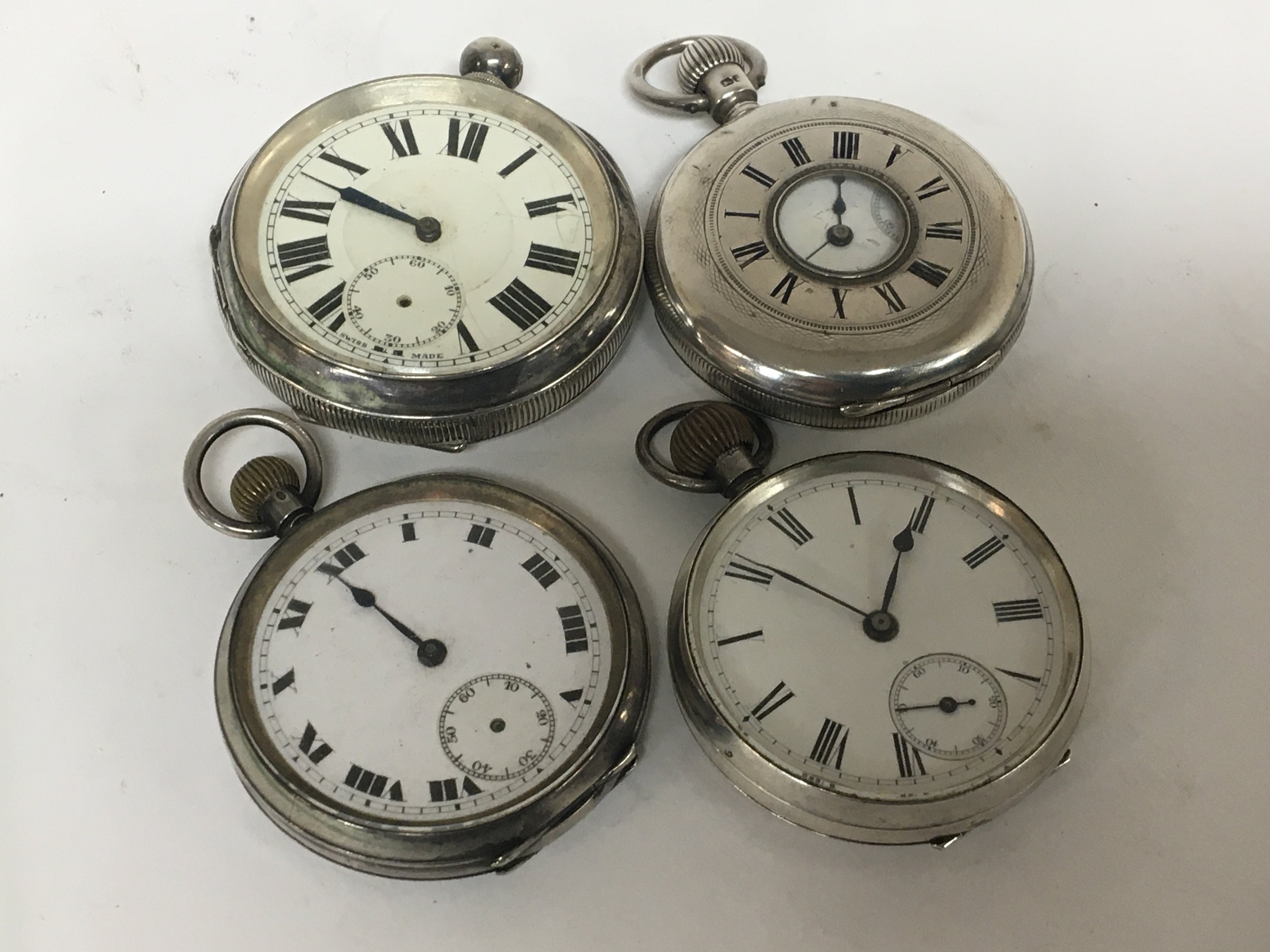 A silver cased half Hunter button wind pocket watch and three other silver cased watches (4)