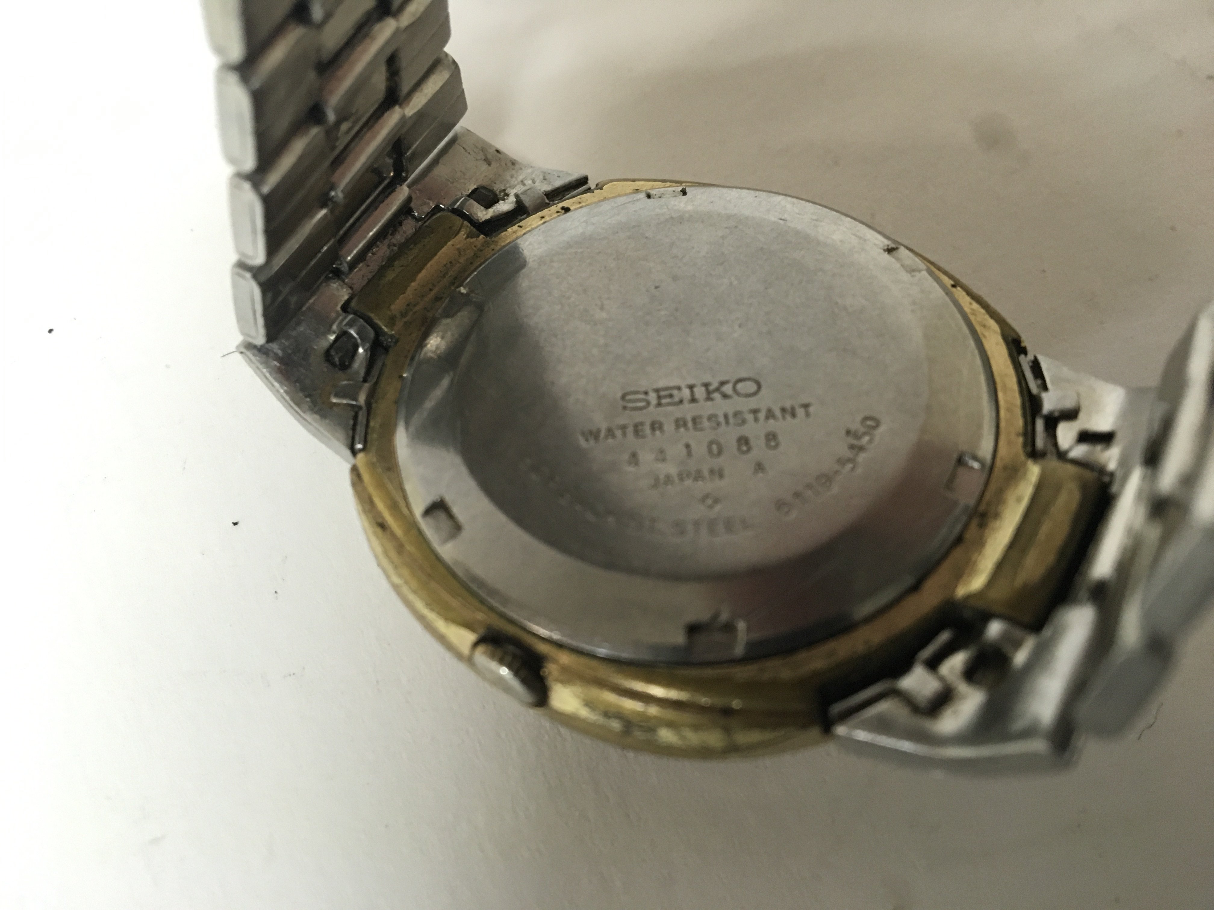 A rare Gents Vintage Seiko 5 wrist watch Automatic 21 Jewel with an oval brass vase and vertical day date serial number 441088 not seen working.