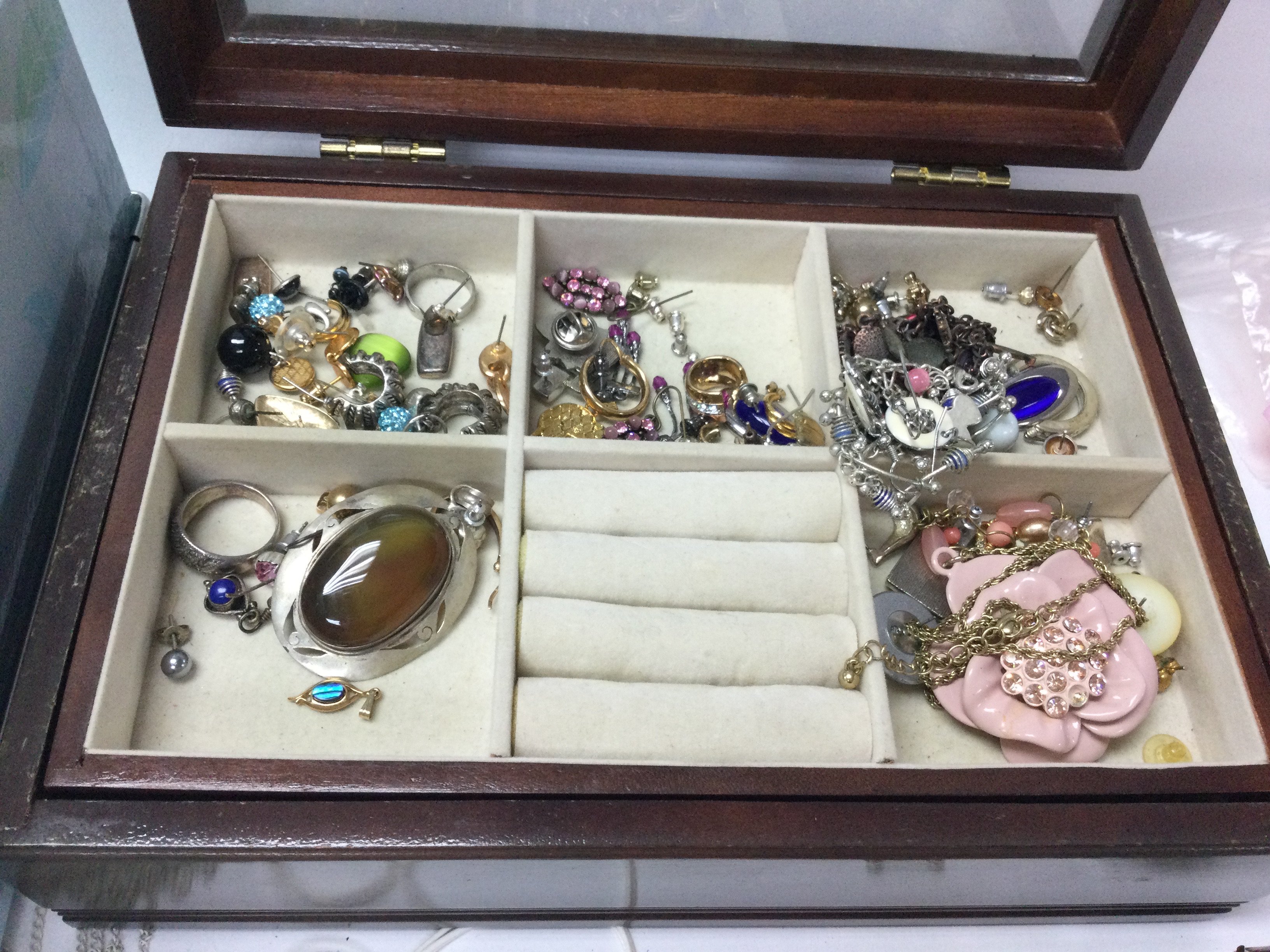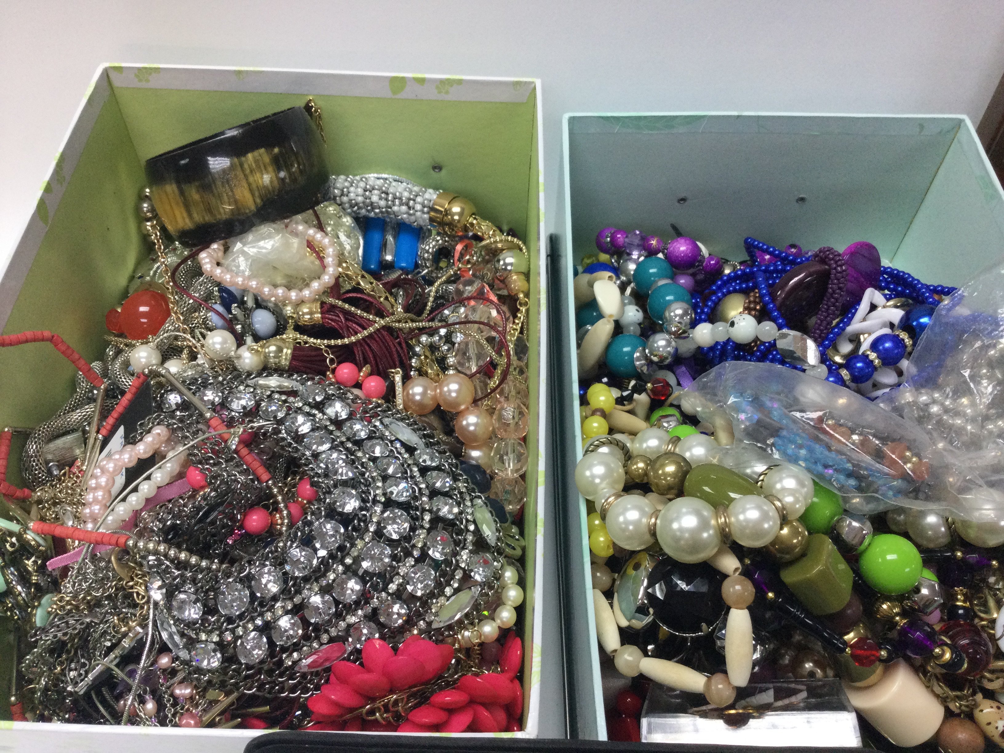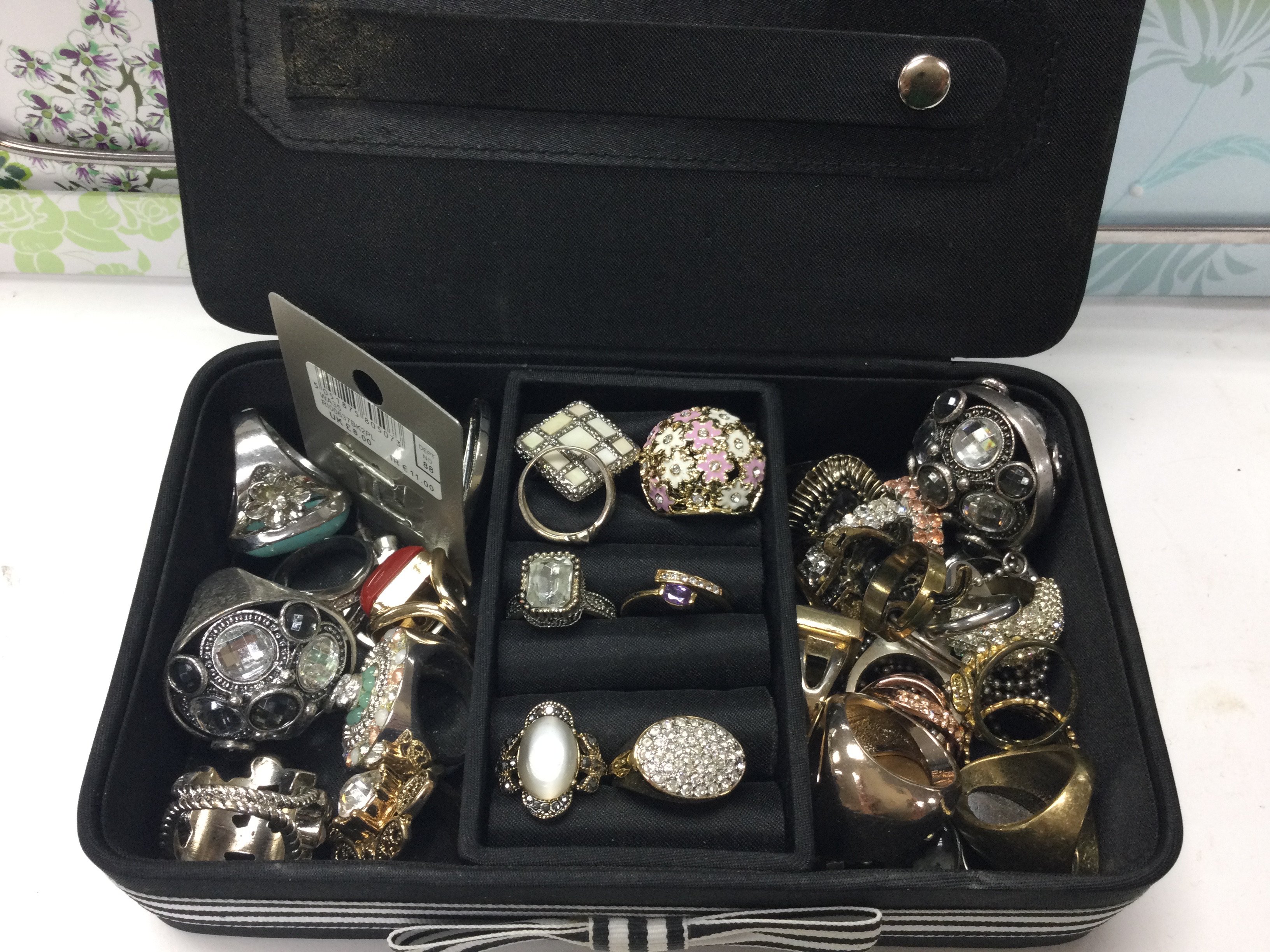 A large collection of assorted costume jewellery including rings necklaces bangles etc. Postage C