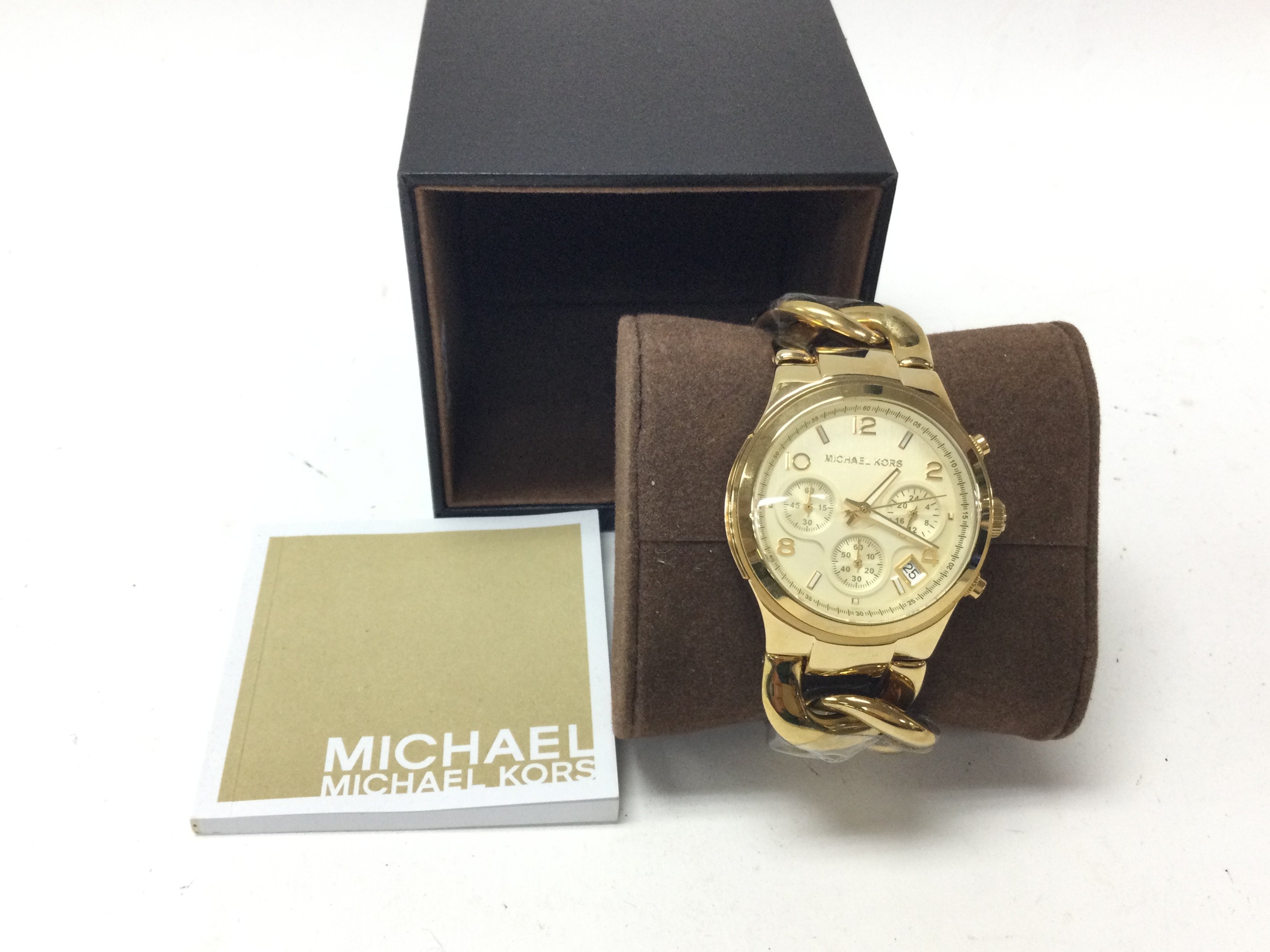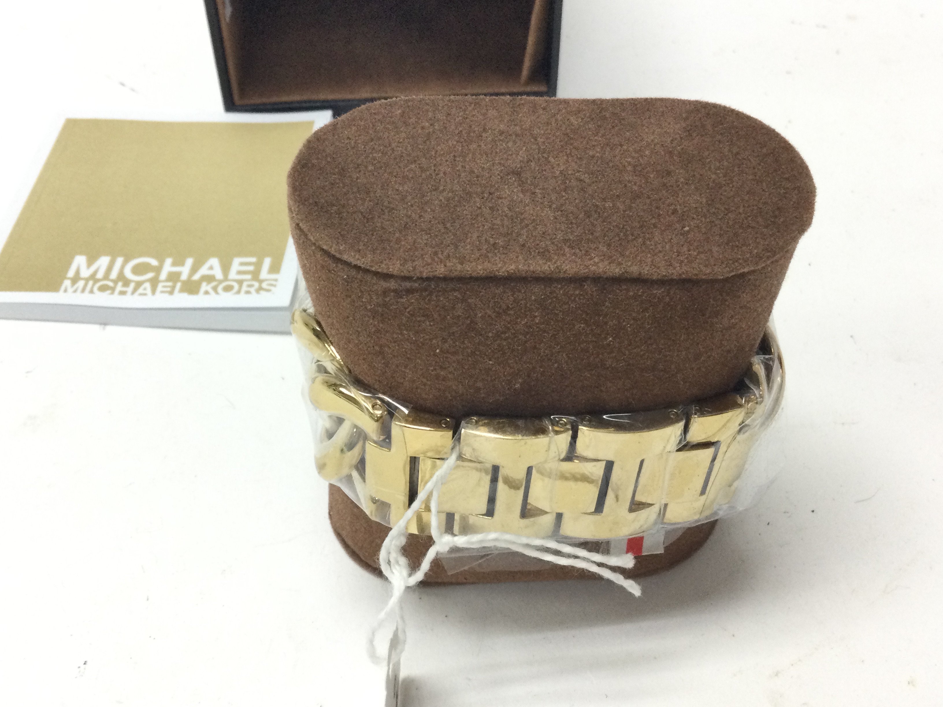 A Michael Kors yellow watch on curb link bracelet. With paperwork and seen running. Postage B