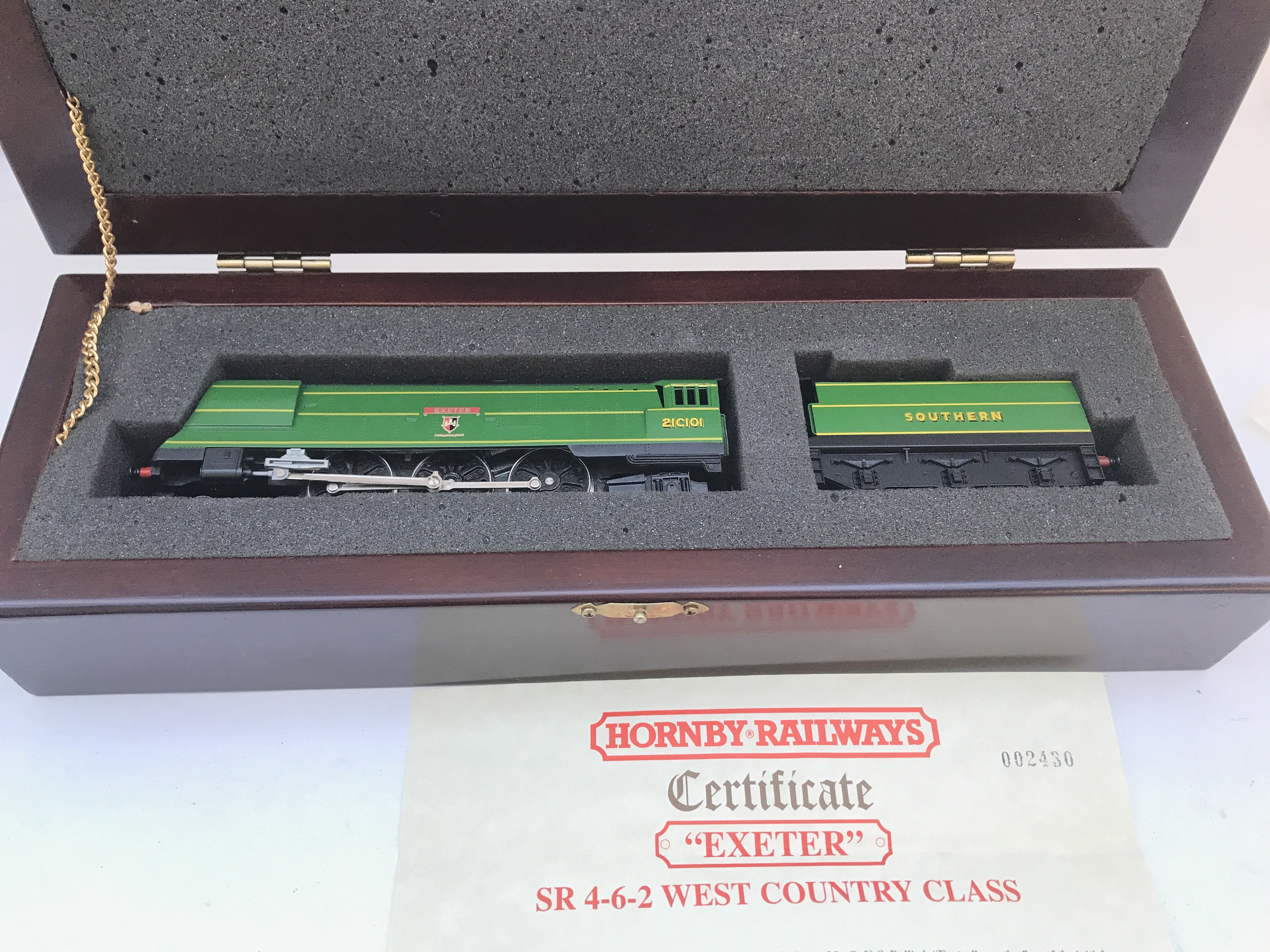 A Wooden Boxed Hornby SR 4-6-2 West Country Class Exeter Locomotive.
