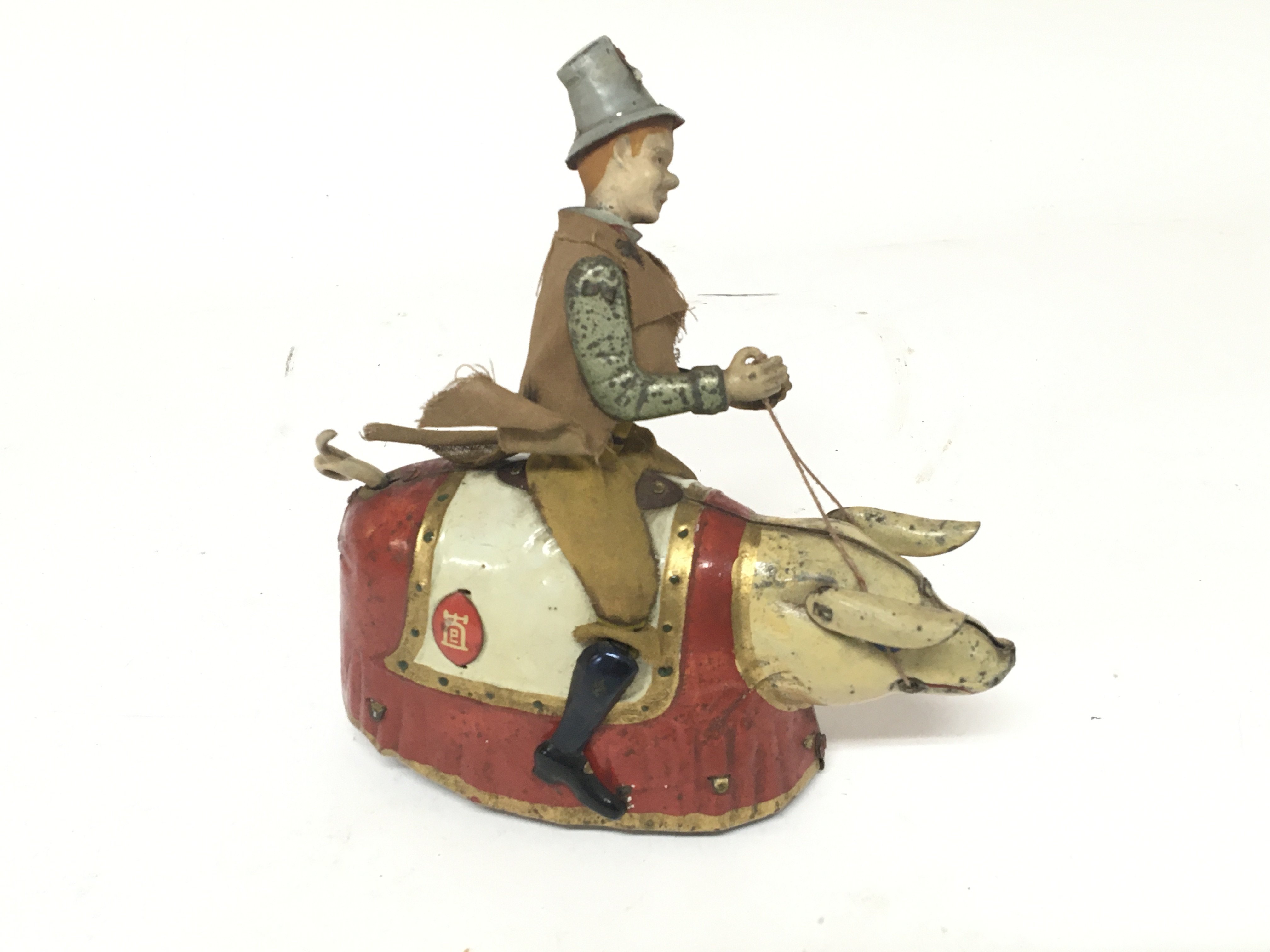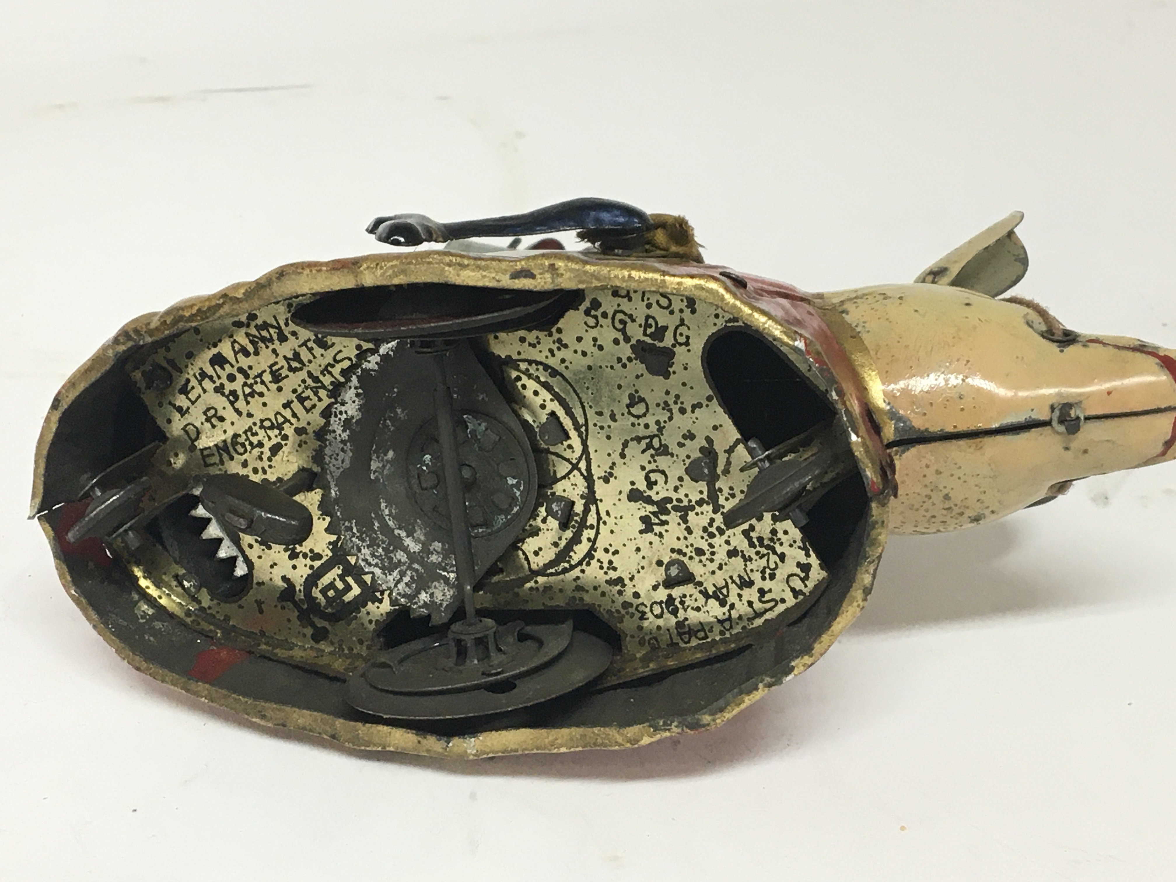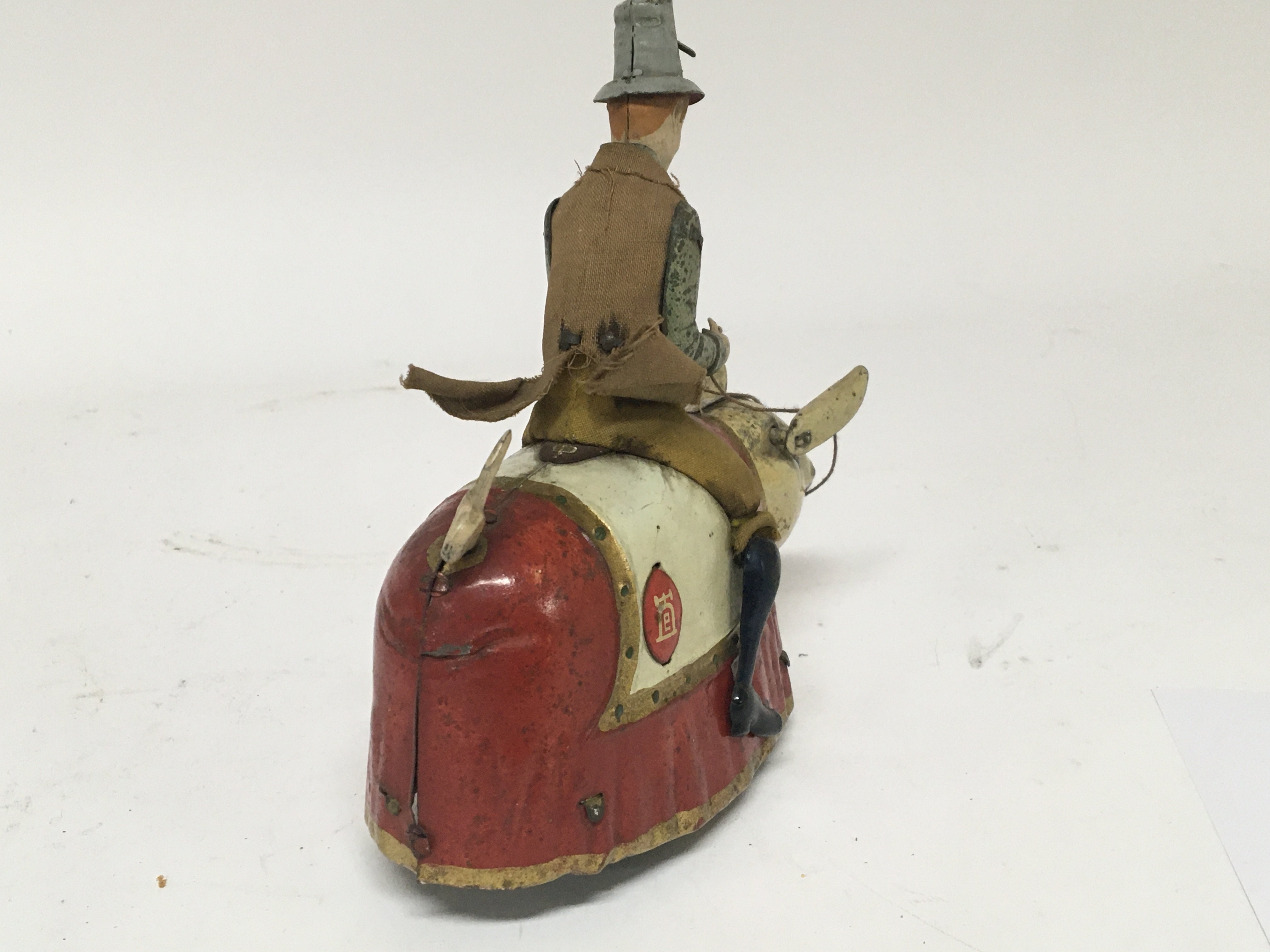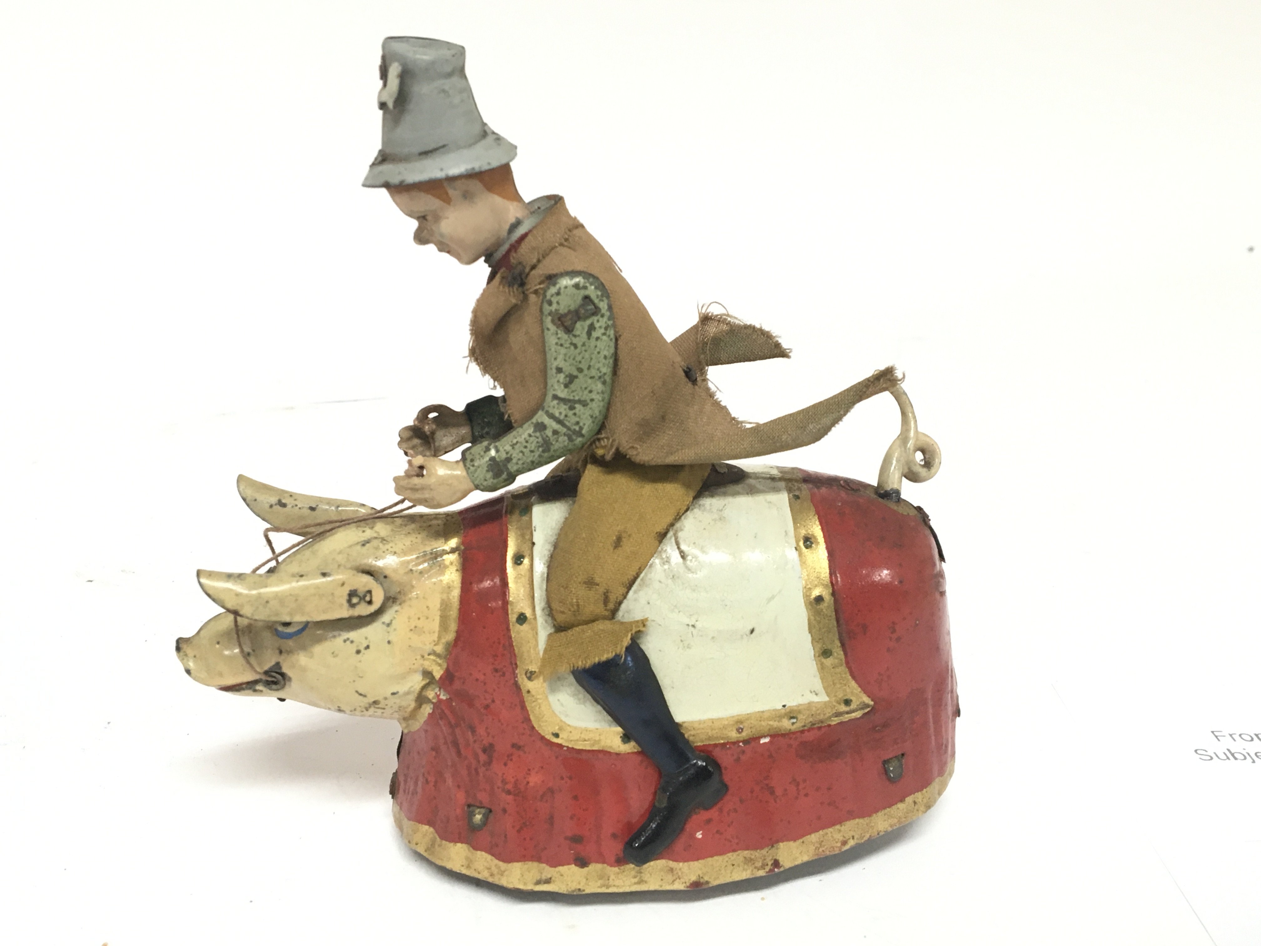 A rare and original tin plate clockwork Lehmans German Paddy and the pig seen working.
