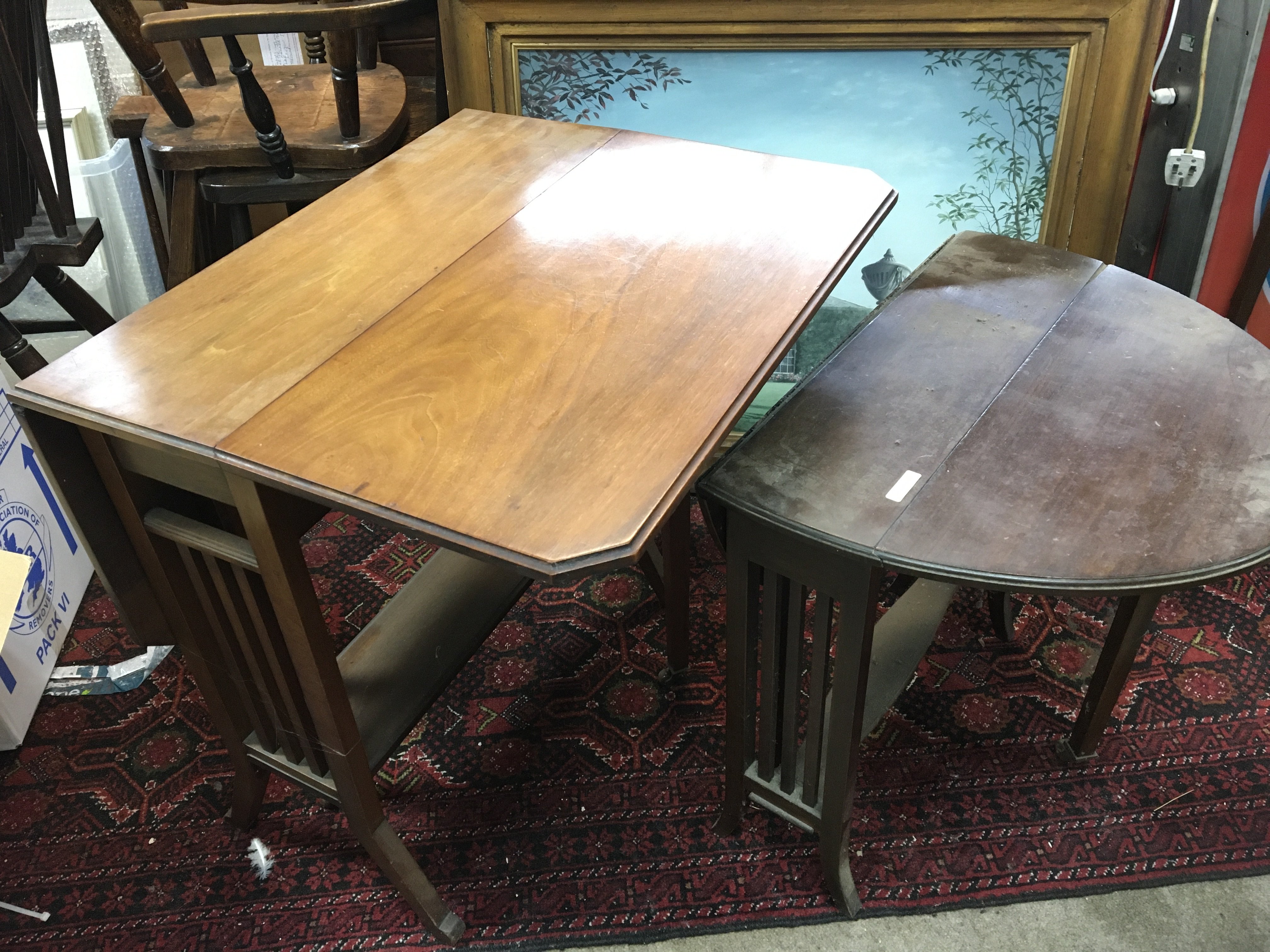 Two Edwardian walnut Sutherland tableswith drop flap sides (2)
