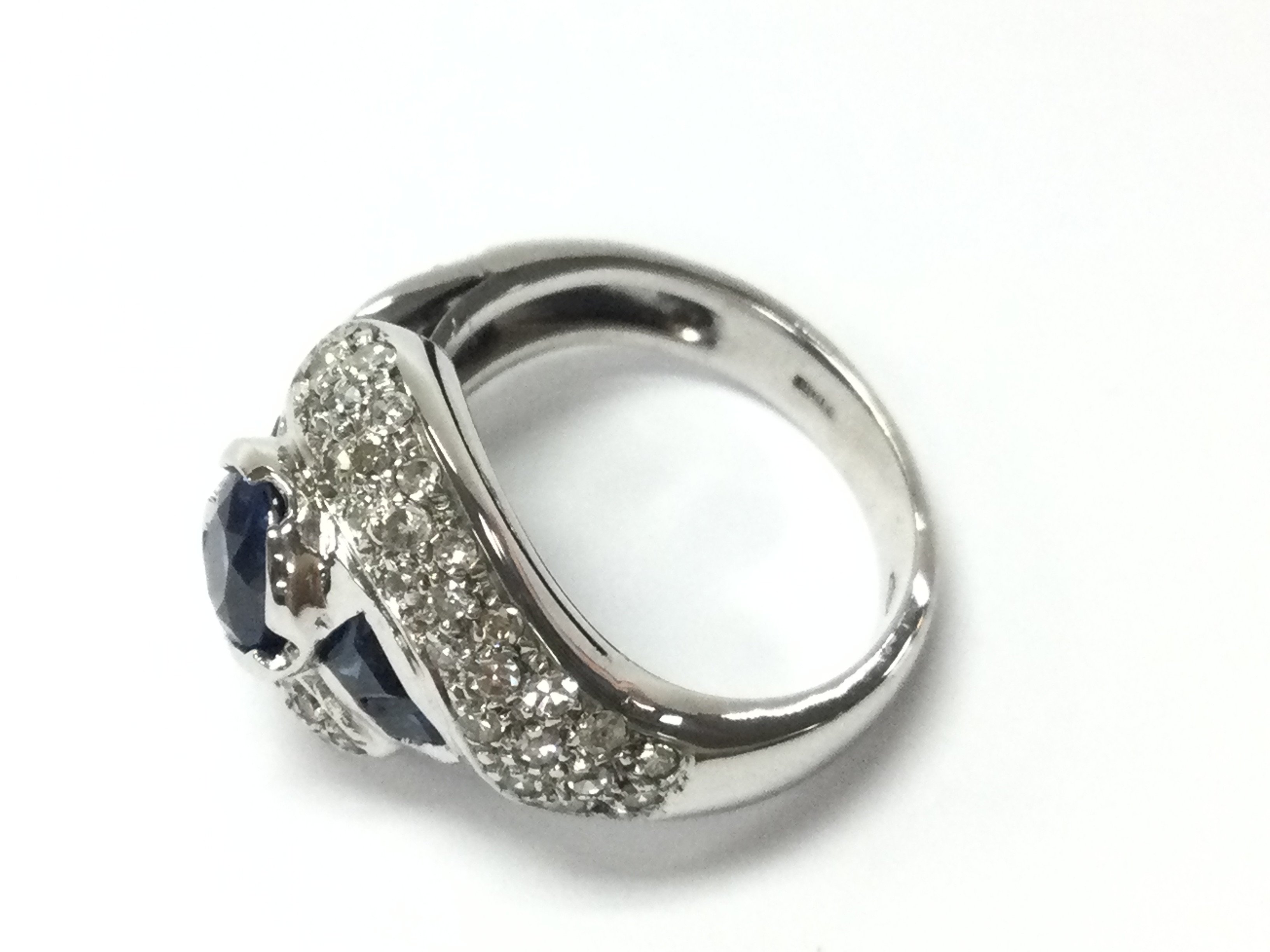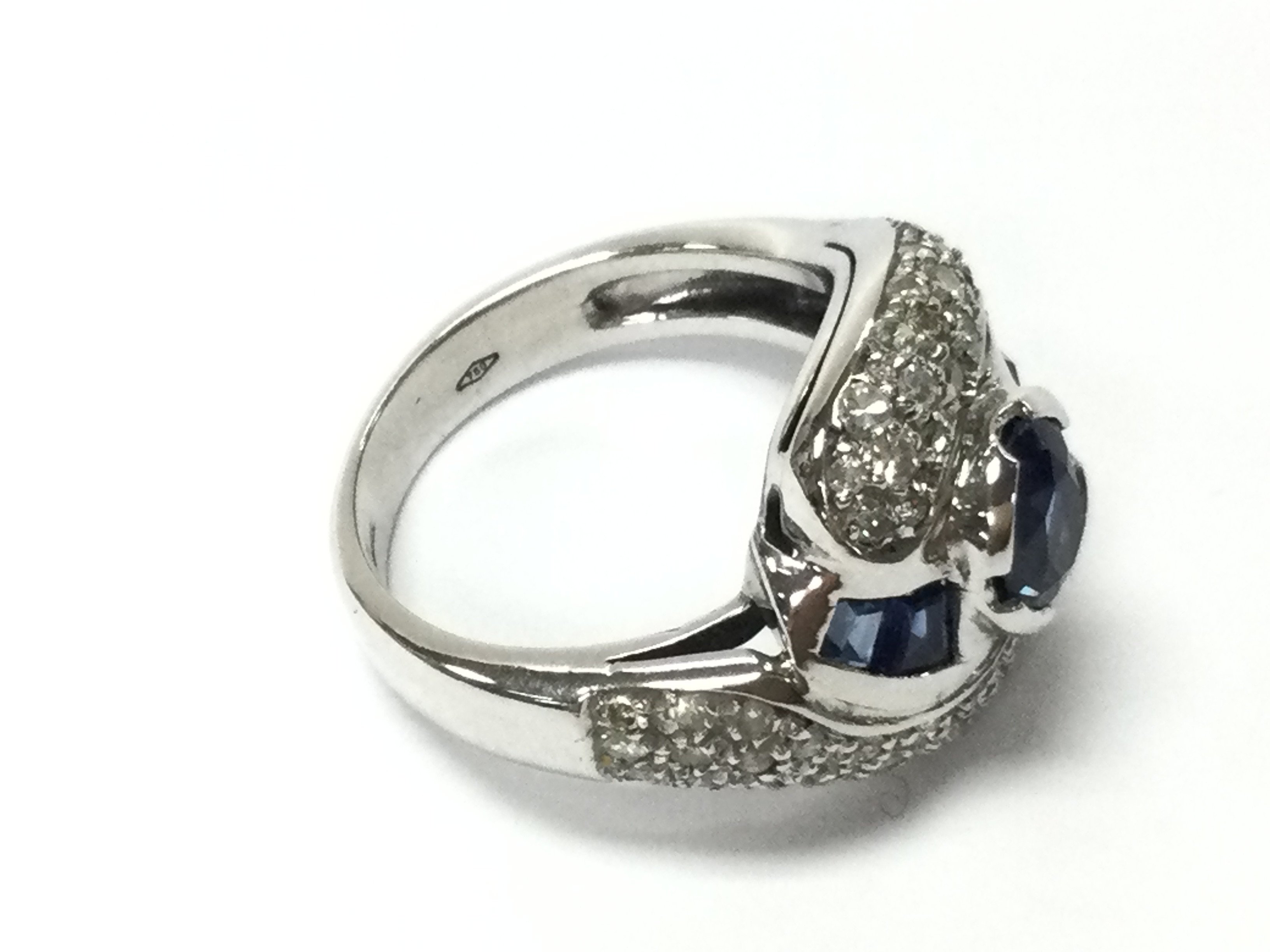 An 18ct white gold ring set with sapphires and diamonds. Size J and 6.90g. Postage B