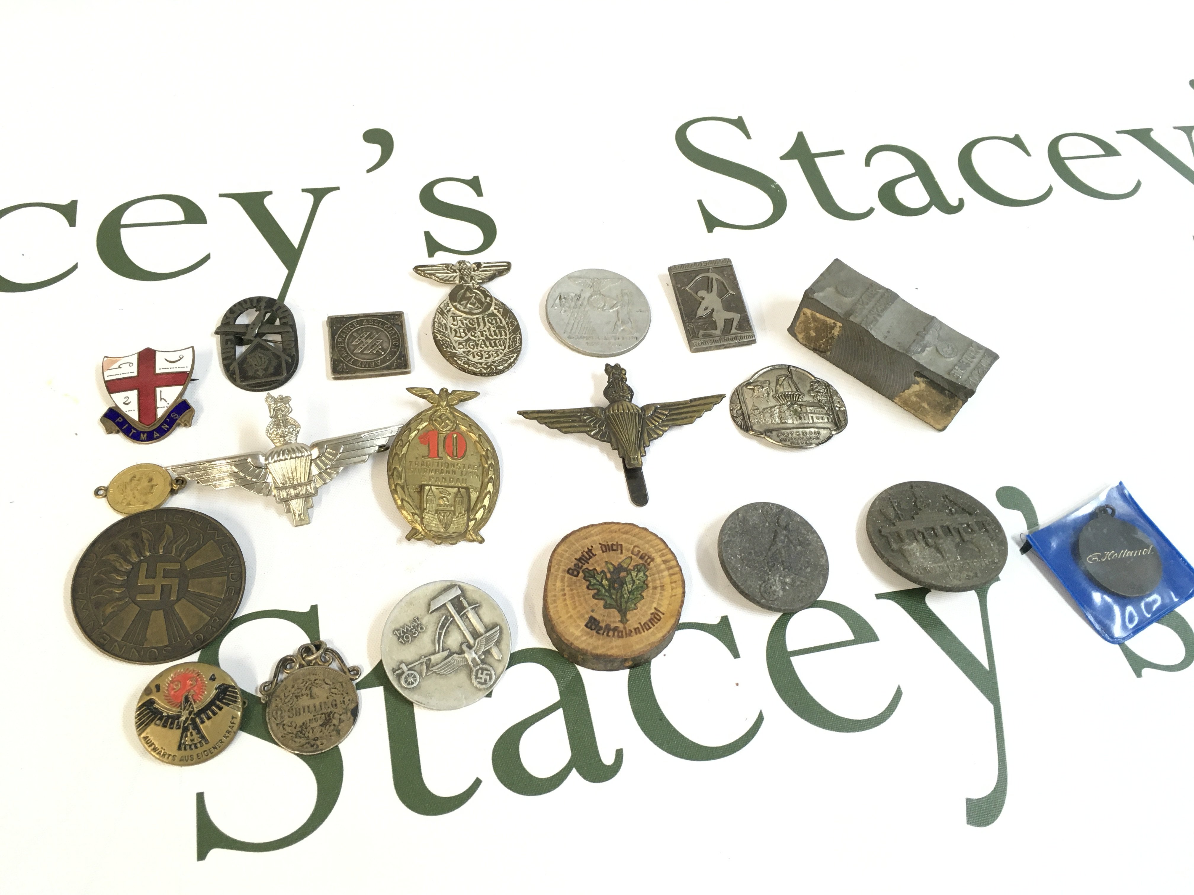 A Collection of German third Reich medals including a 1933 summer solstice medal, 1st May Day badge, Reichsparteitag 1937 badge, and other items