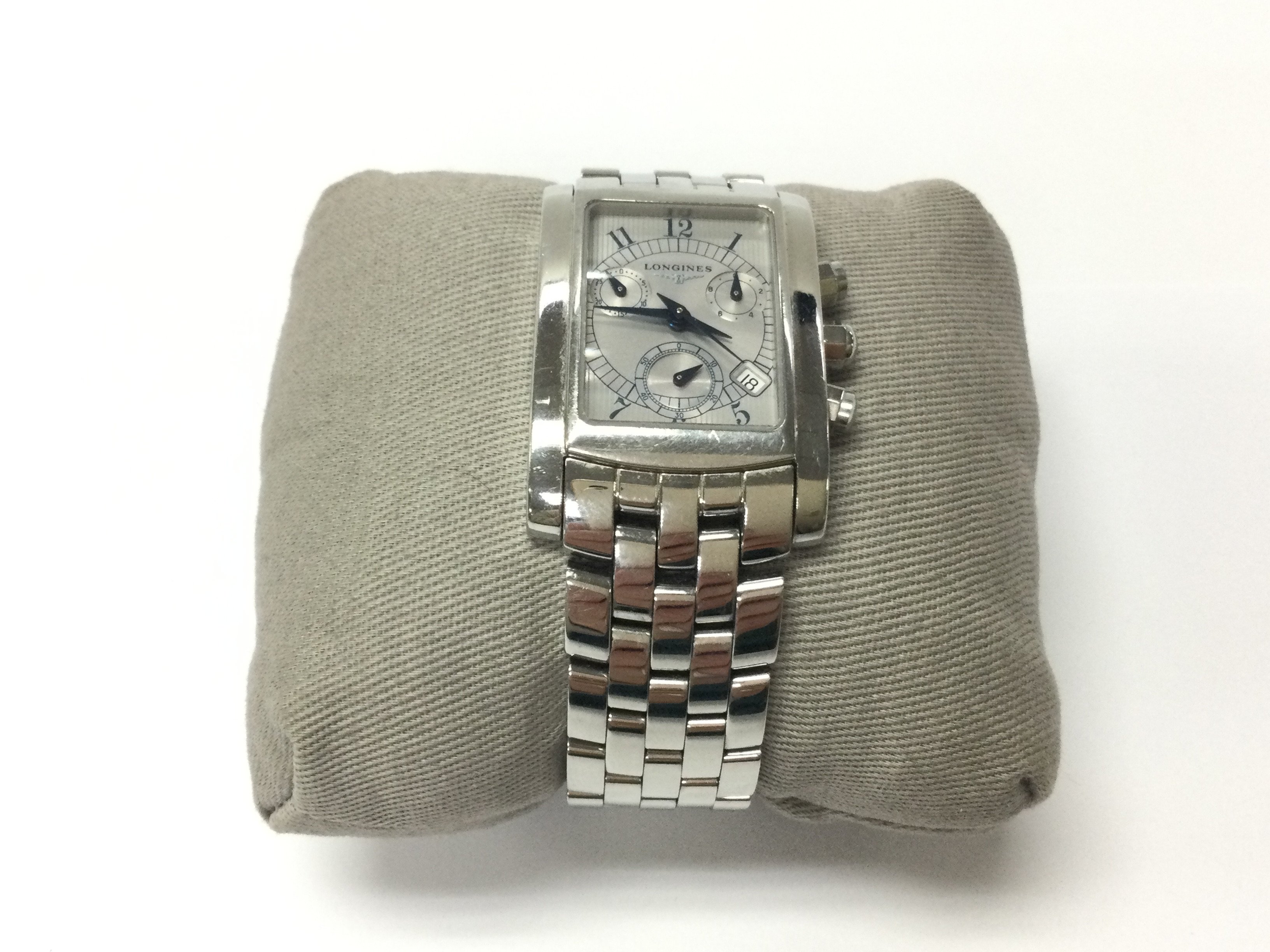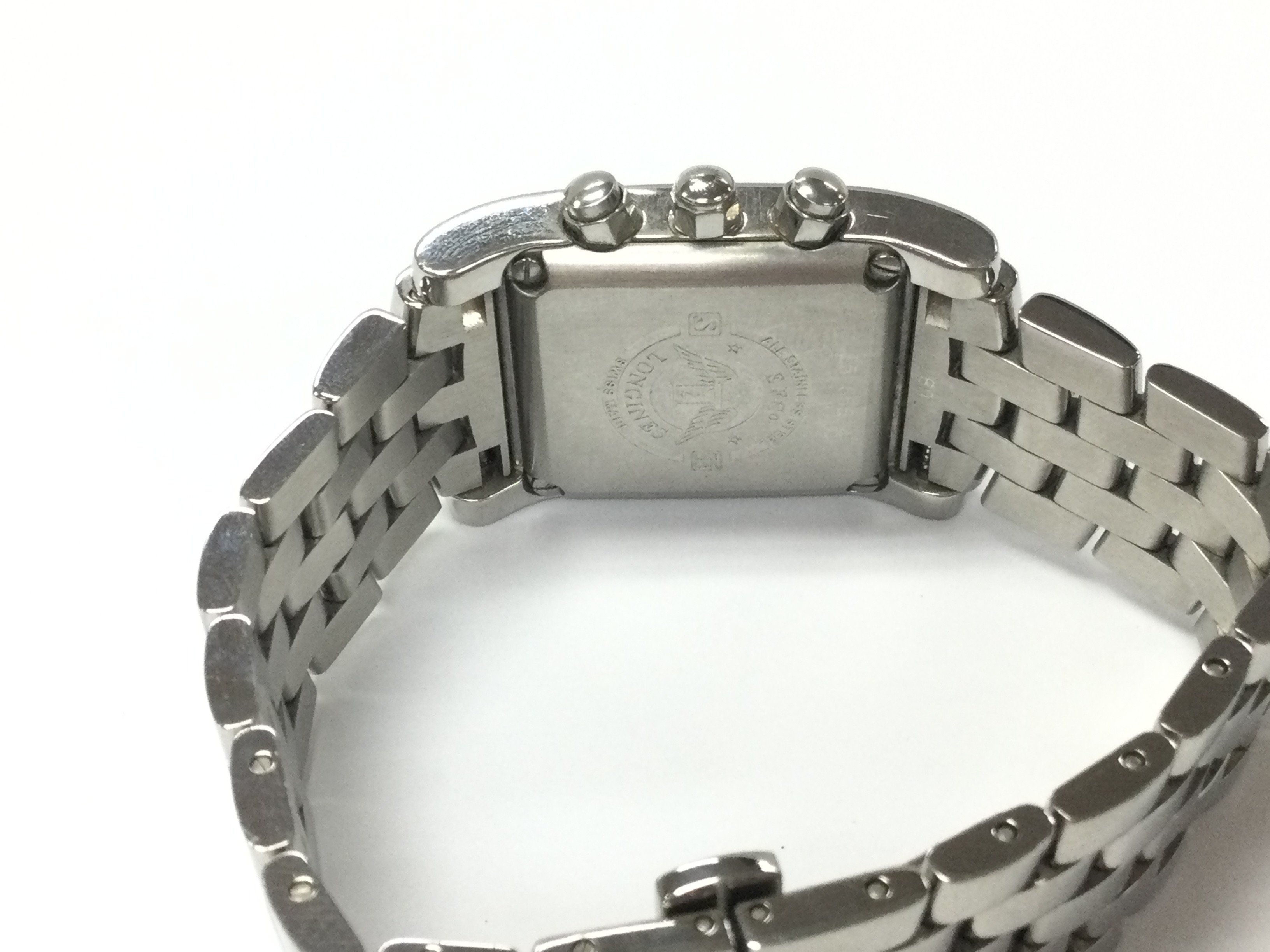 A Longines Chronograph quartz wrist watch with original movement and stainless steel case with a spare strap. Has been fully serviced by swiss watch company based in Hatton garden in 2022 Postage B