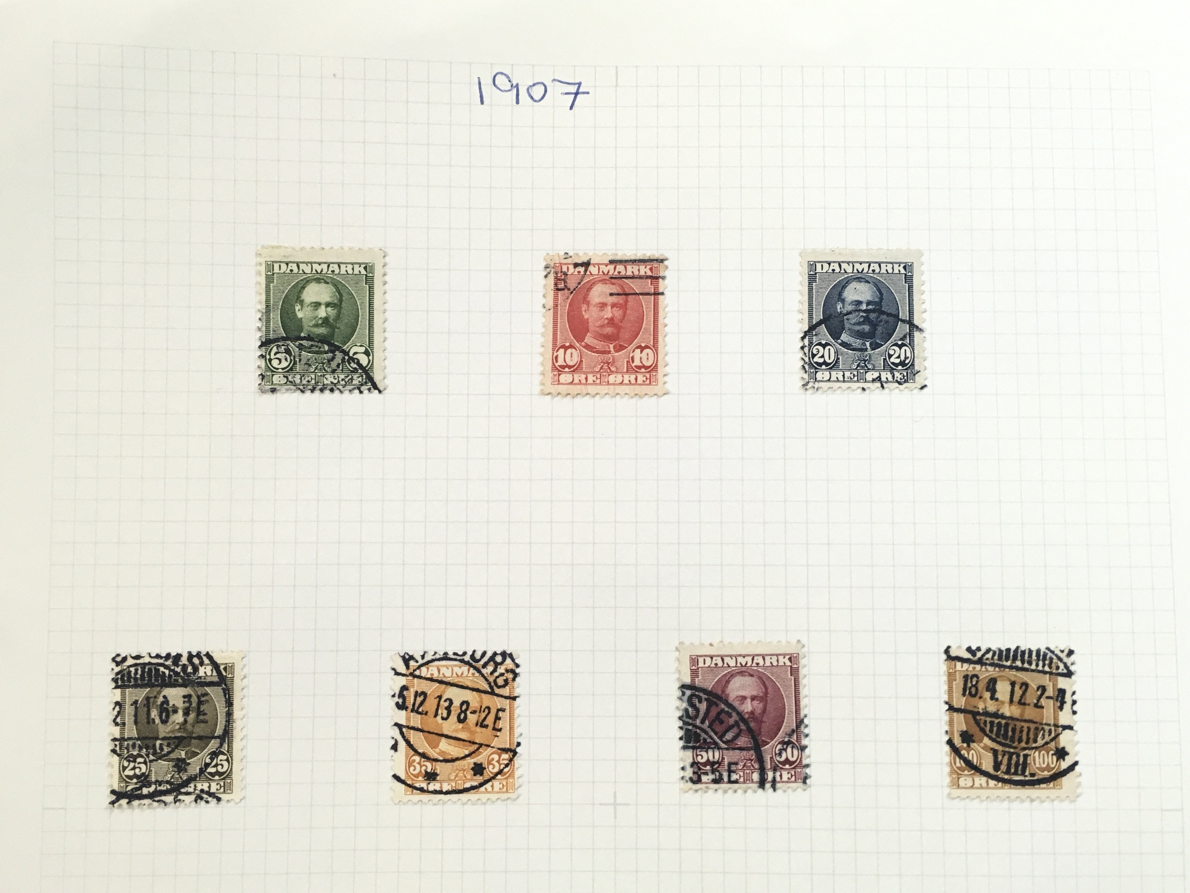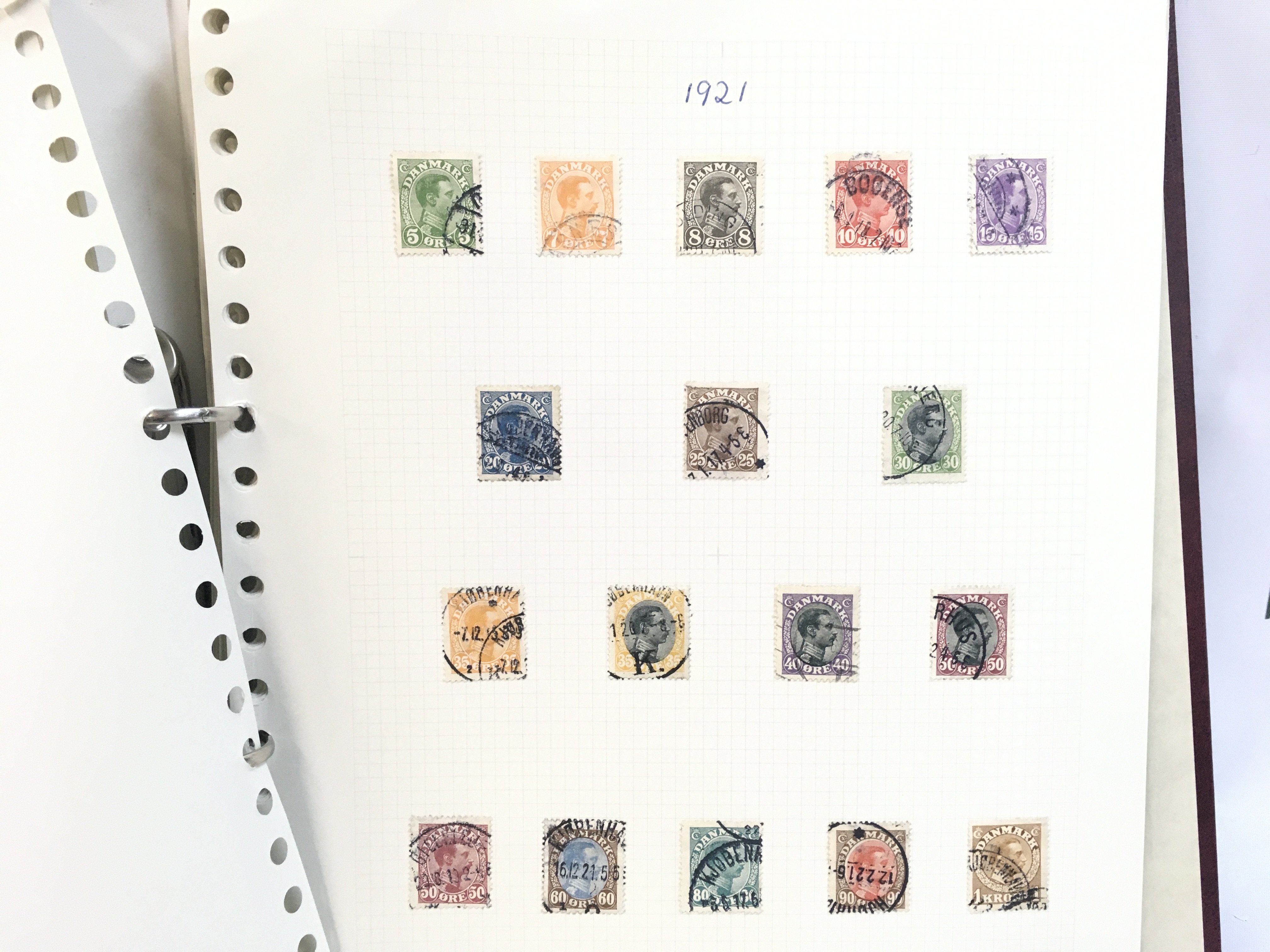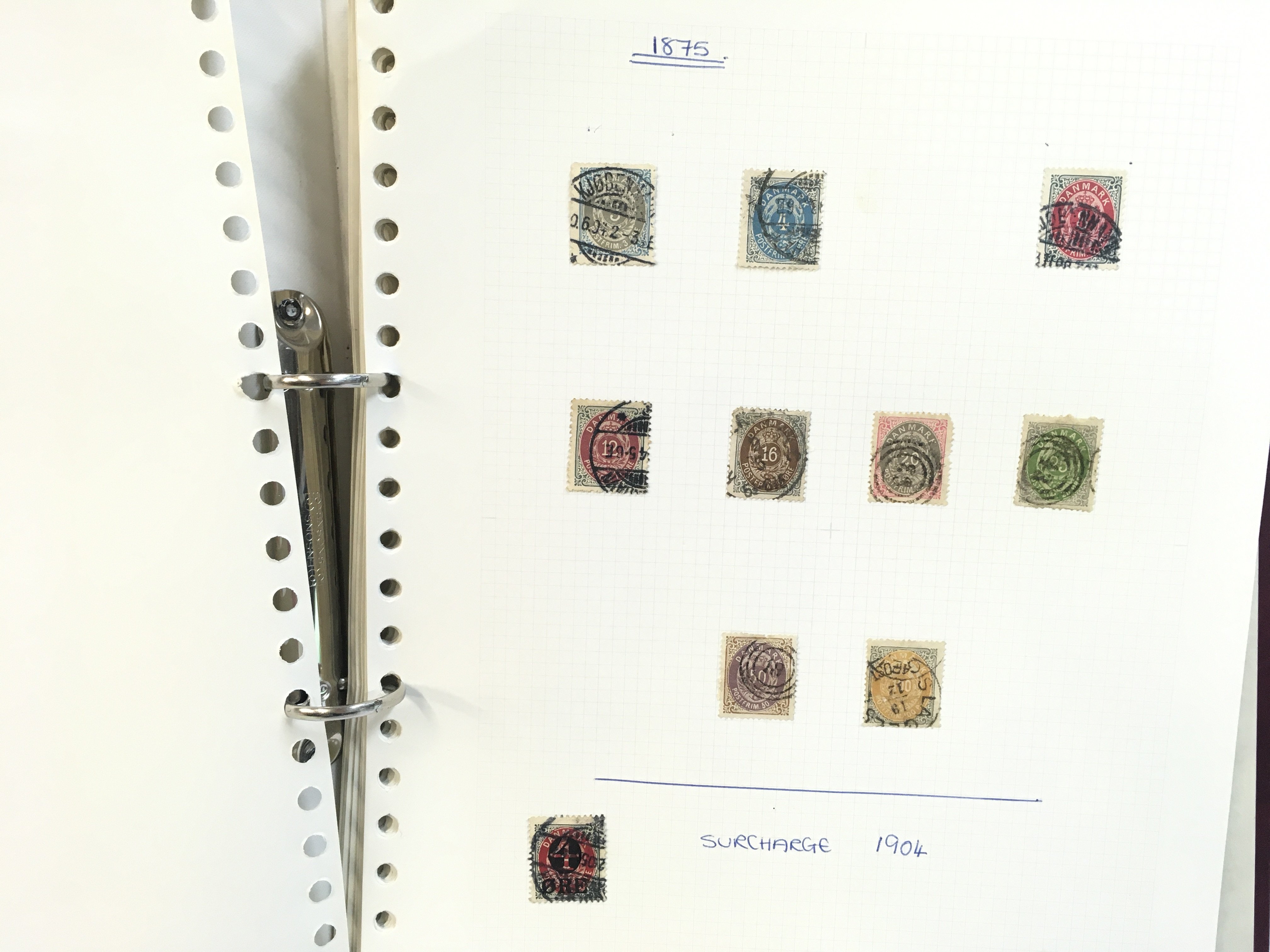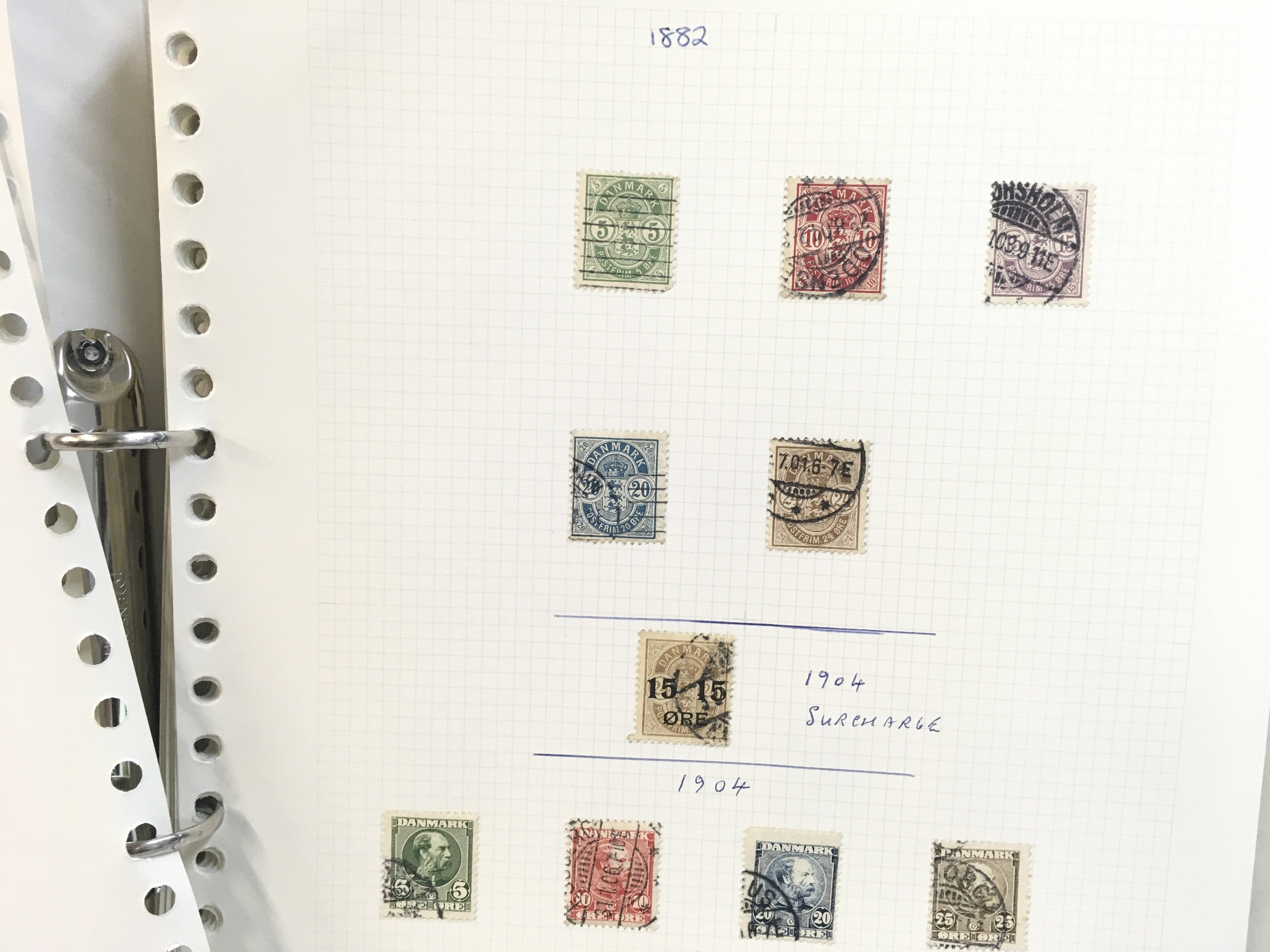 Danish stamp album containing used pre 20th century and early- later 20th century stamps.
