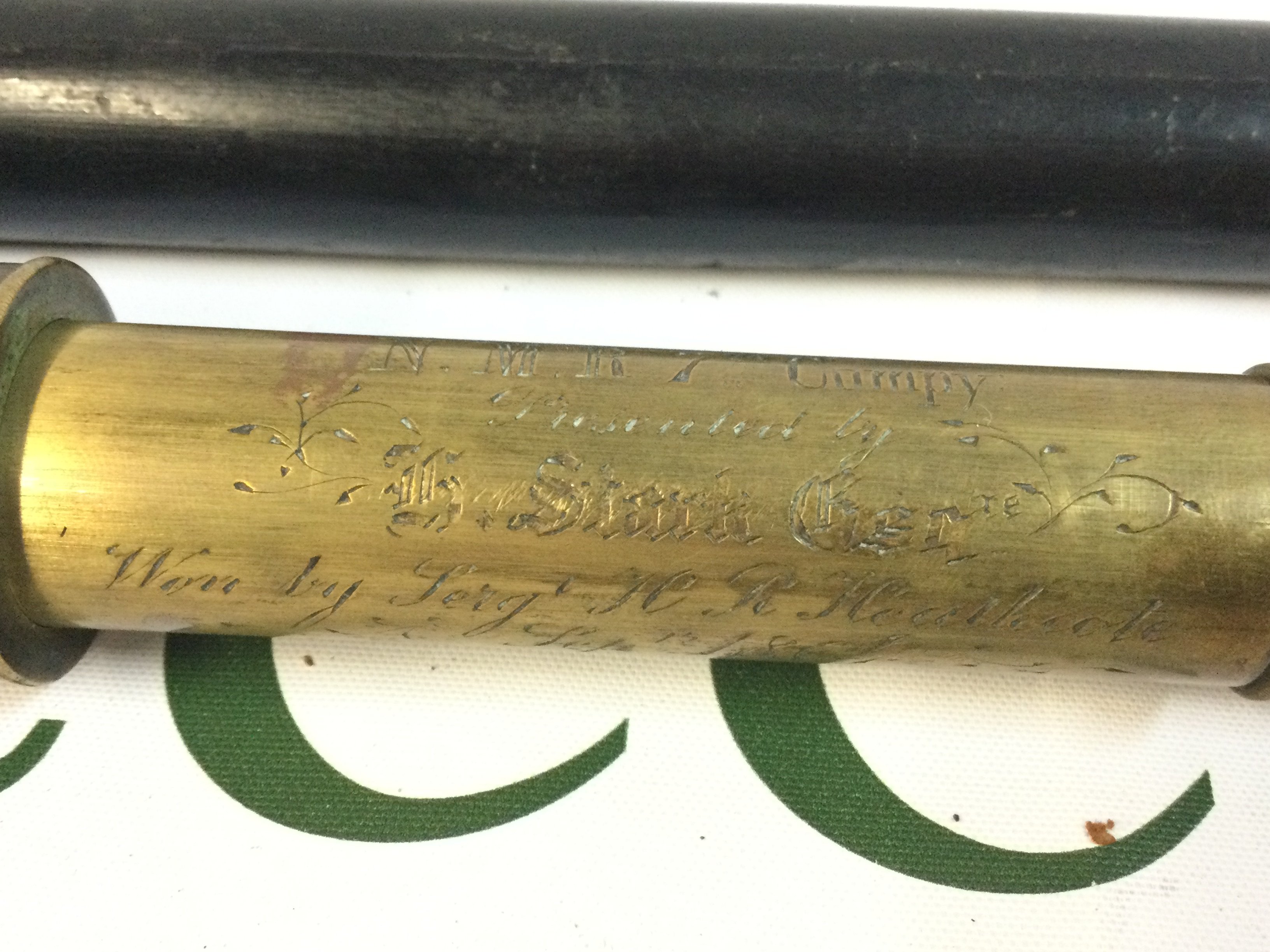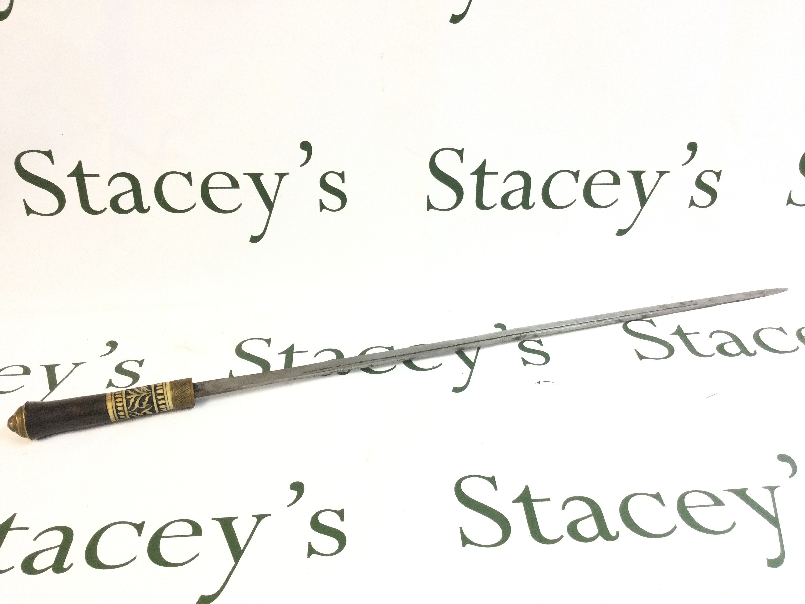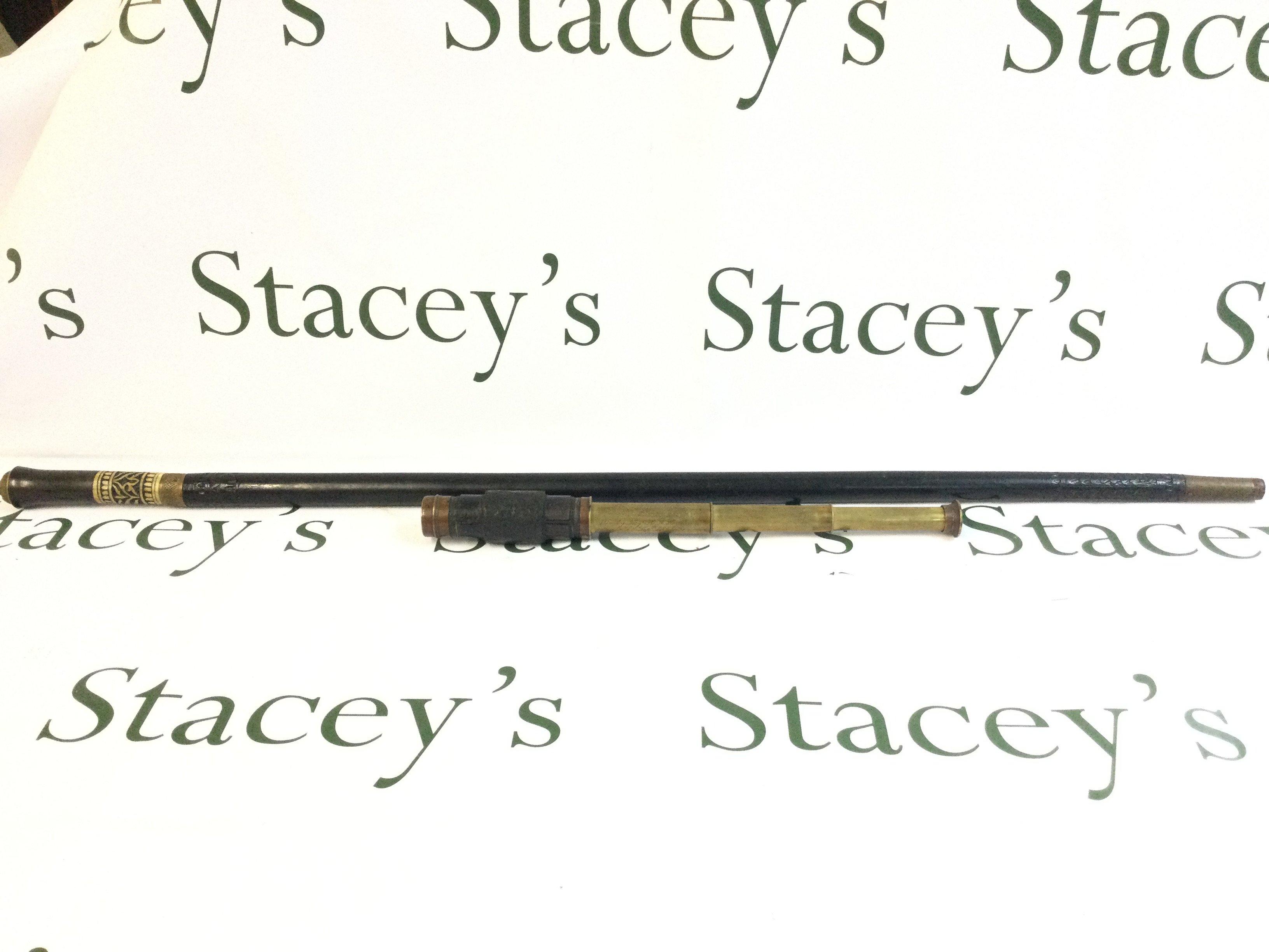 An Indian sword stick and a vintage three draw brass and leather telescope (36.5cm long). This lot cannot be posted