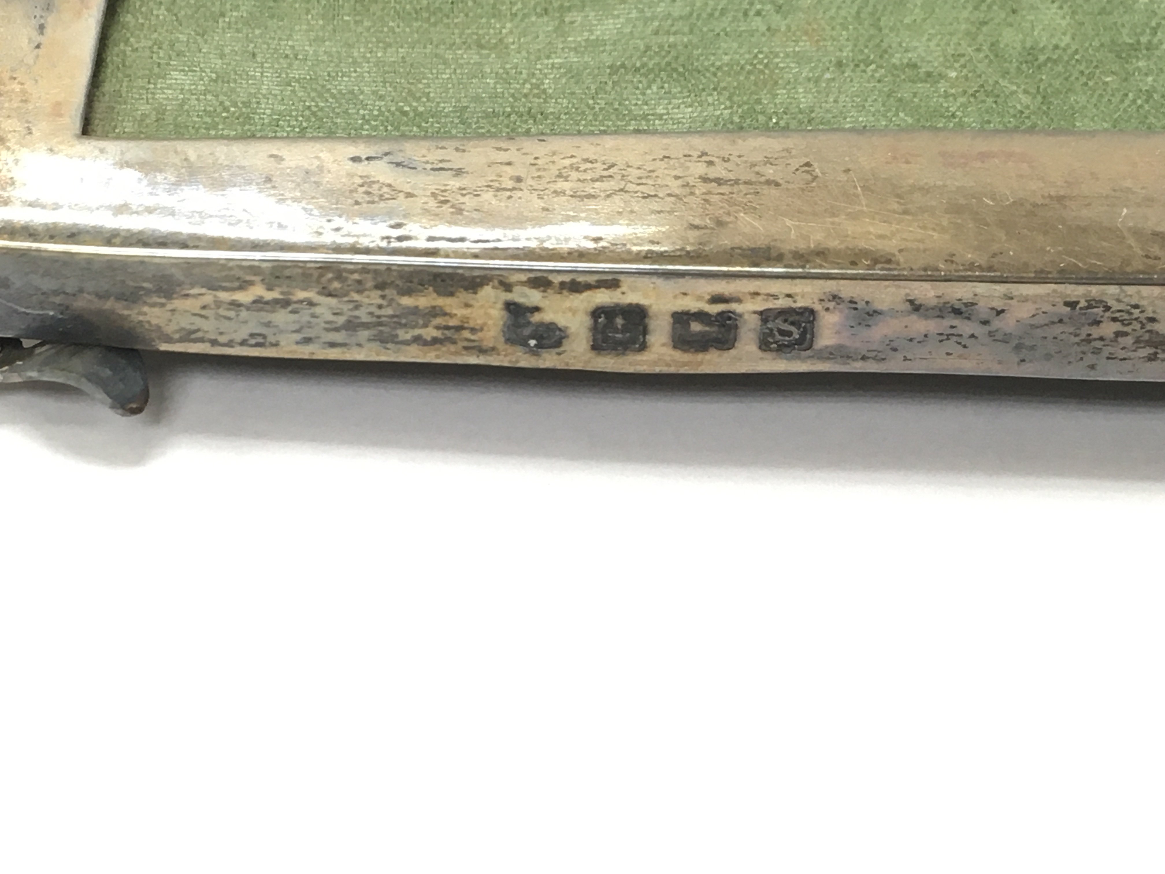 A silver picture frame and childs rattle and a pair of vintage dress earrings. Postage B