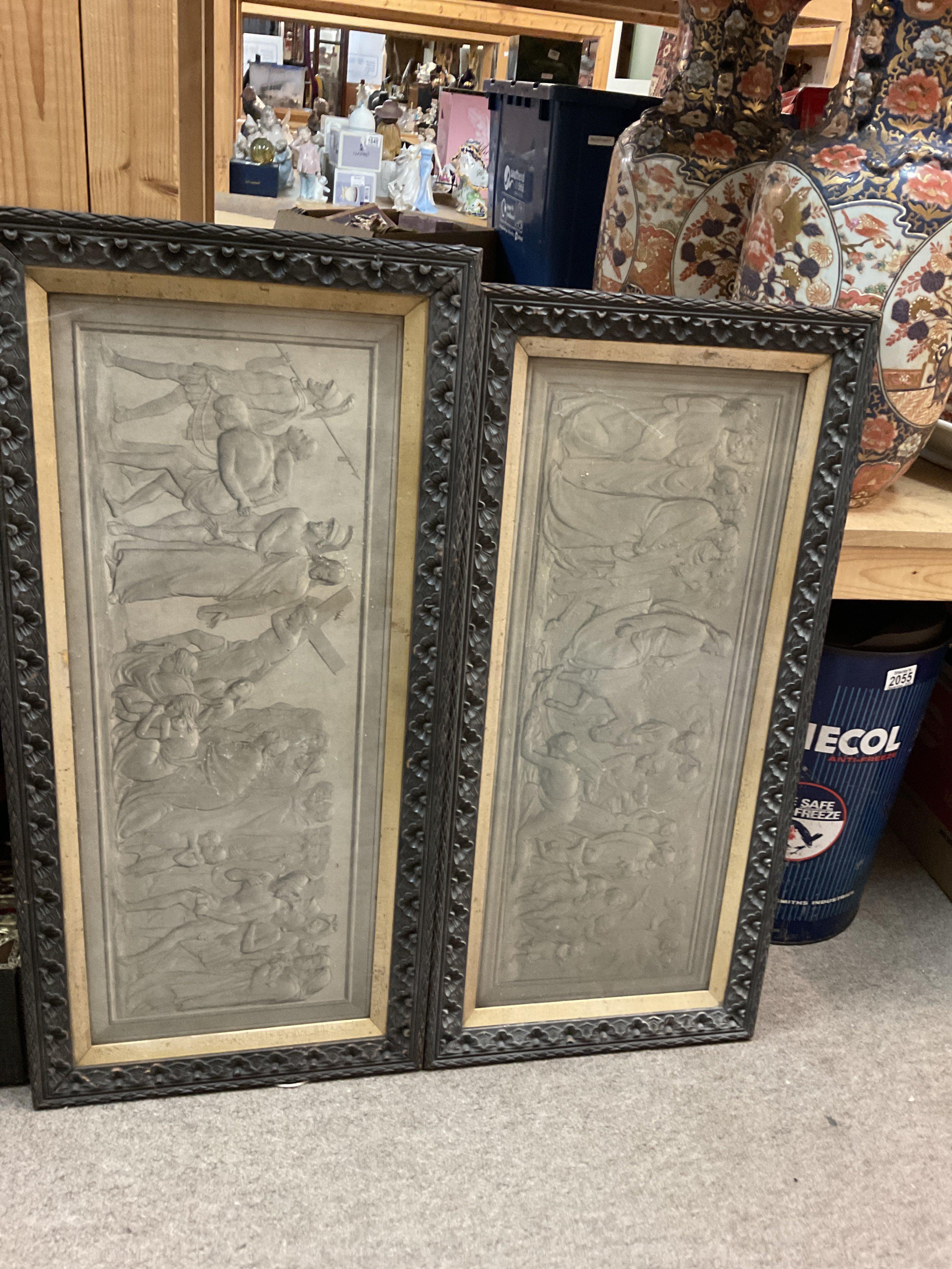 A pair of Victorian oak framed prints including Christ led to Crucifiction. Frame Dimensions 38x80cm .This lot cannot be posted