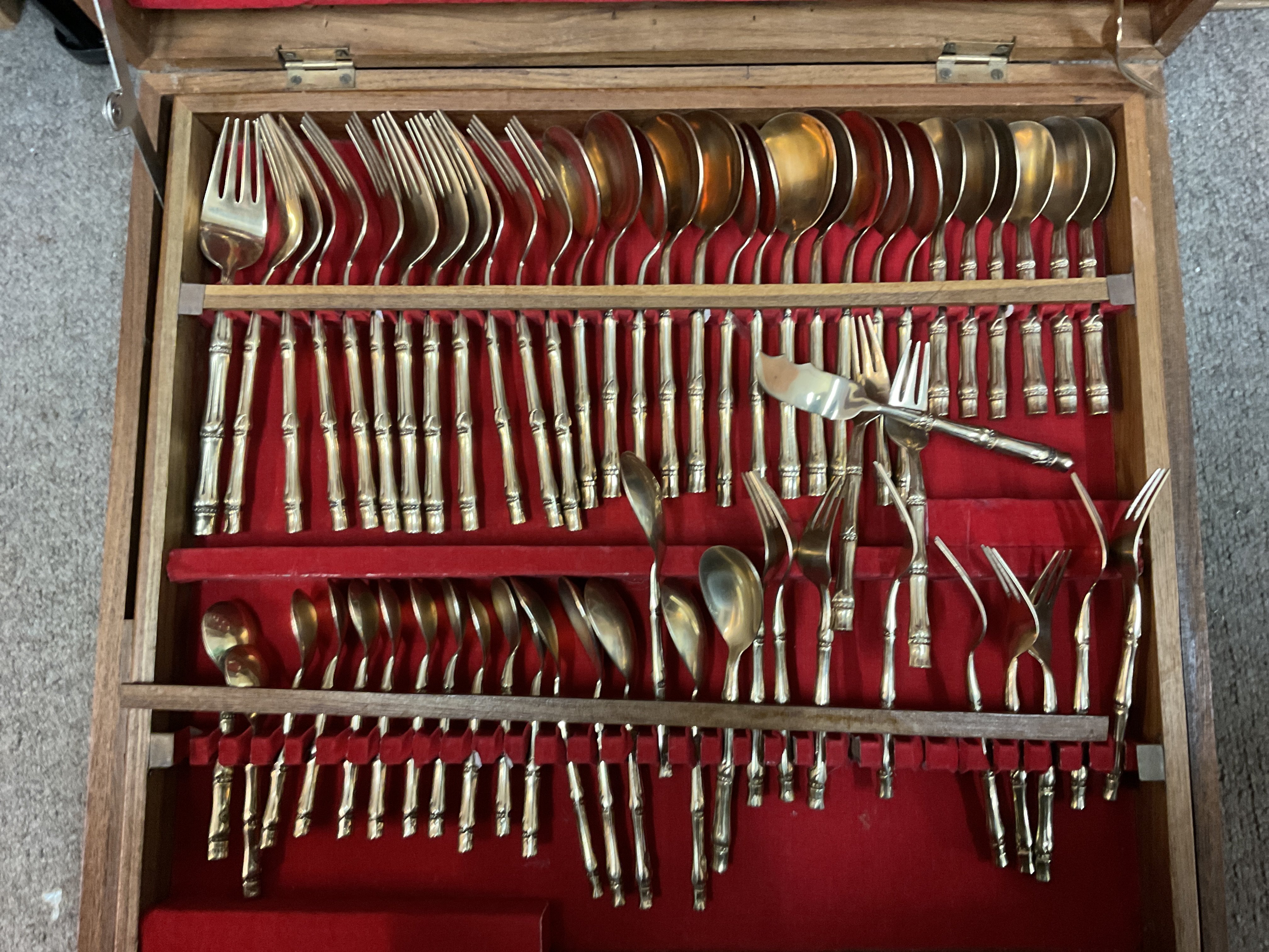 A cased set of Thai cutlery including knives, forks , spoons etc. This lot cannot be posted