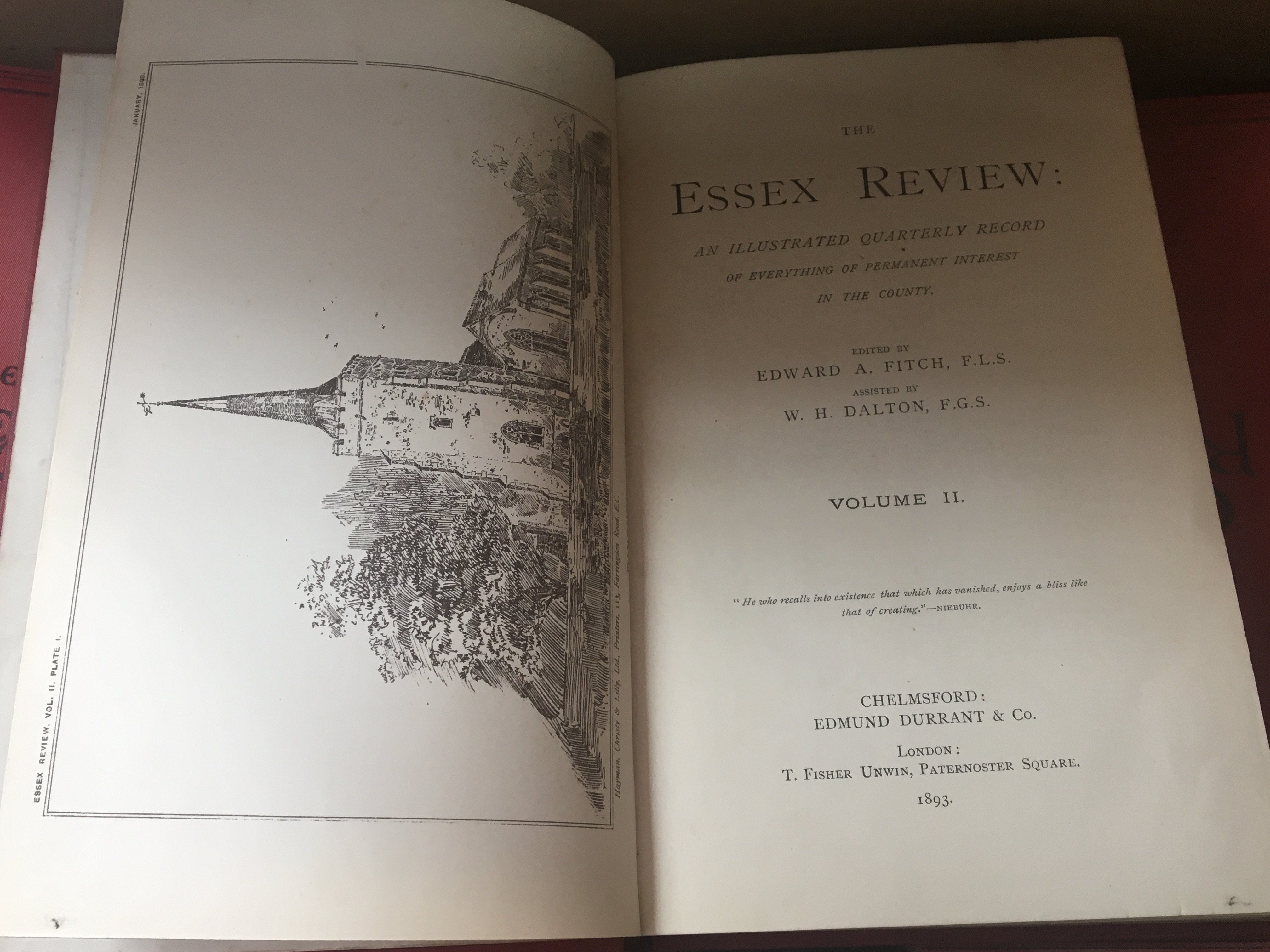 A collection of bound volumes of 19th century books The Essex Review an illustrated quarterly record of everything of percent interest in the county of Essex 1893