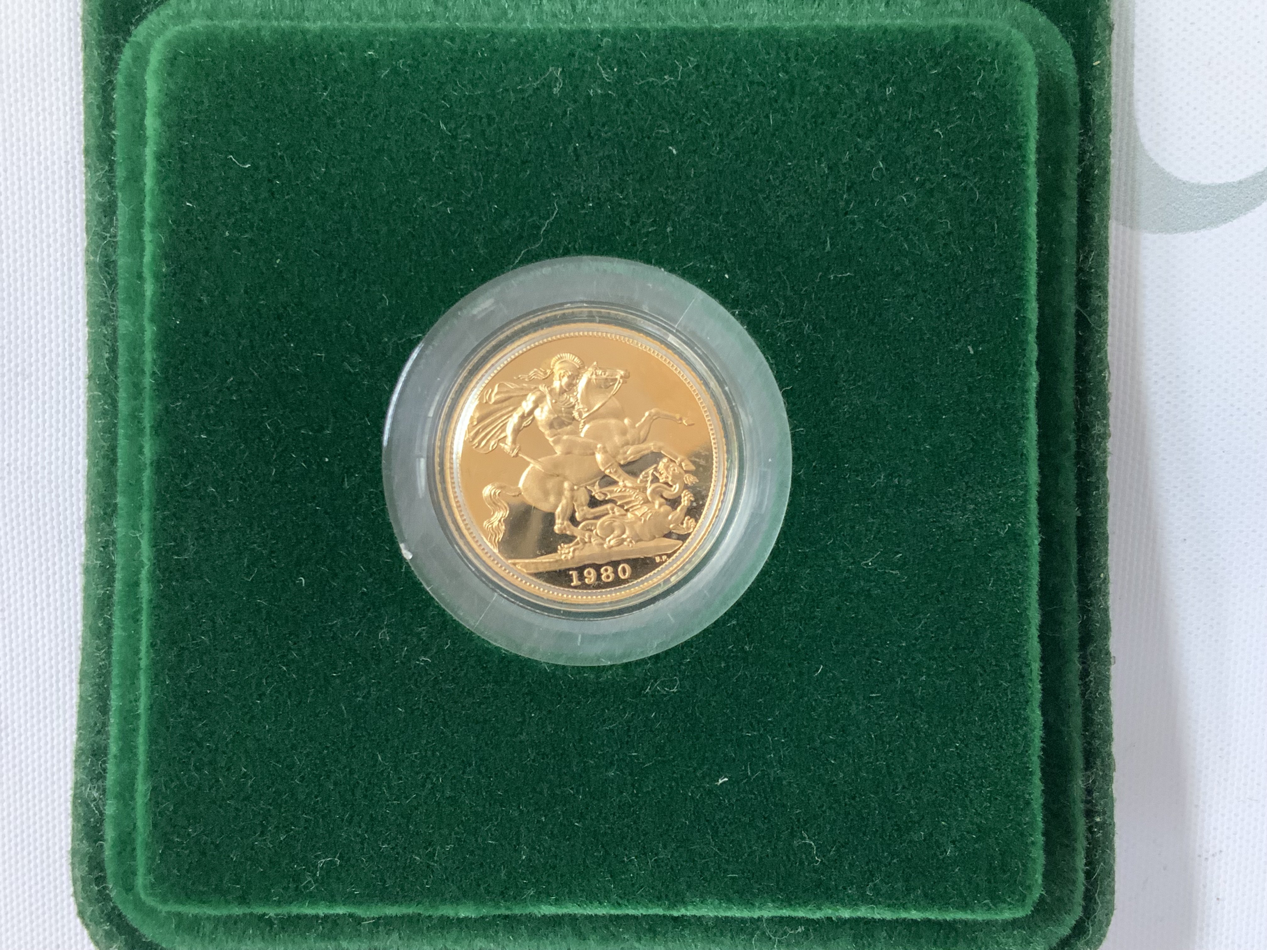Elizabeth II 1980 proof gold sovereign in case. (A)