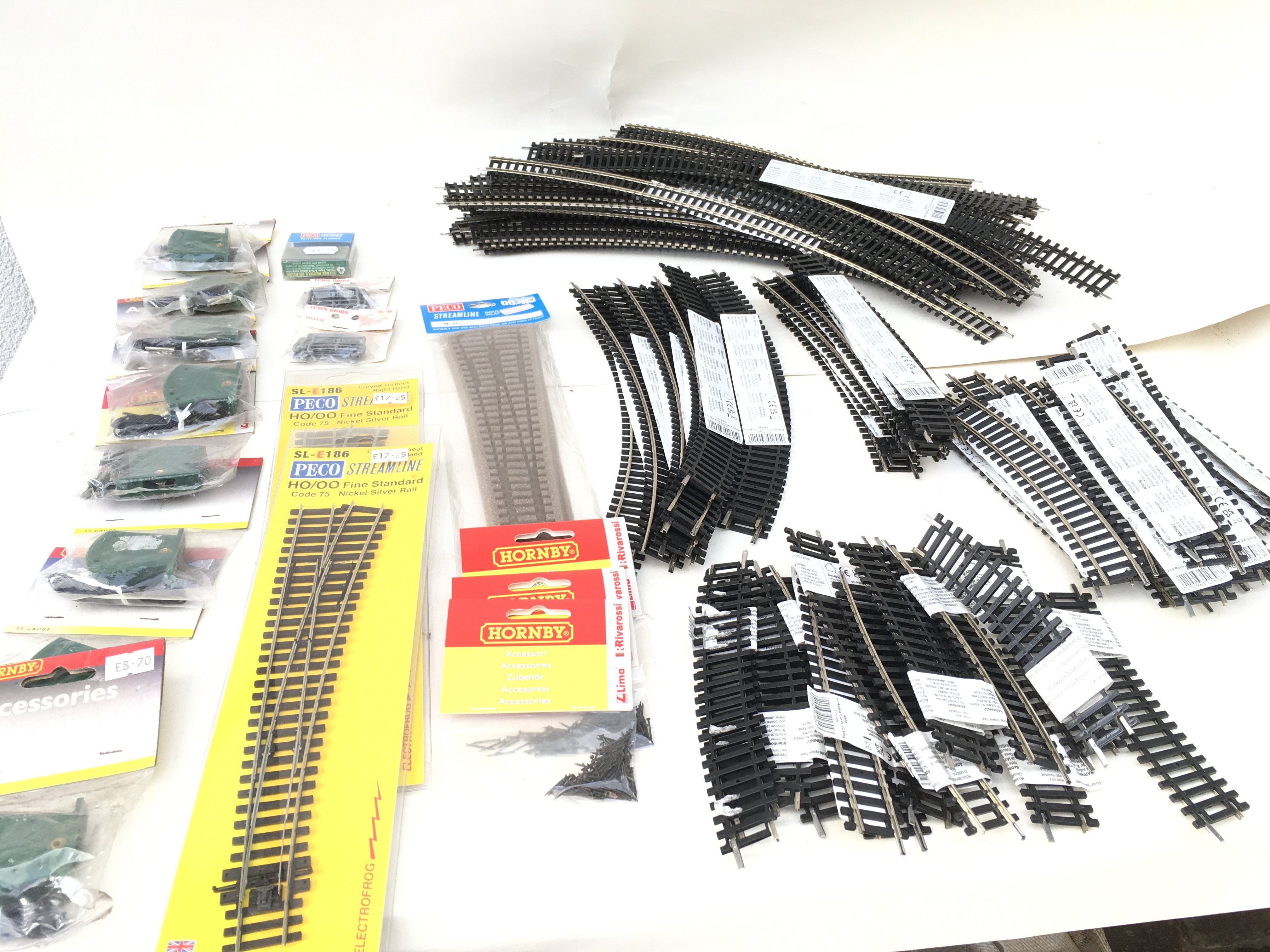 A collection of approximately 90 new 00 gauge track pieces by Hornby and PECO.. Plus accessories including switches etc. no reserve