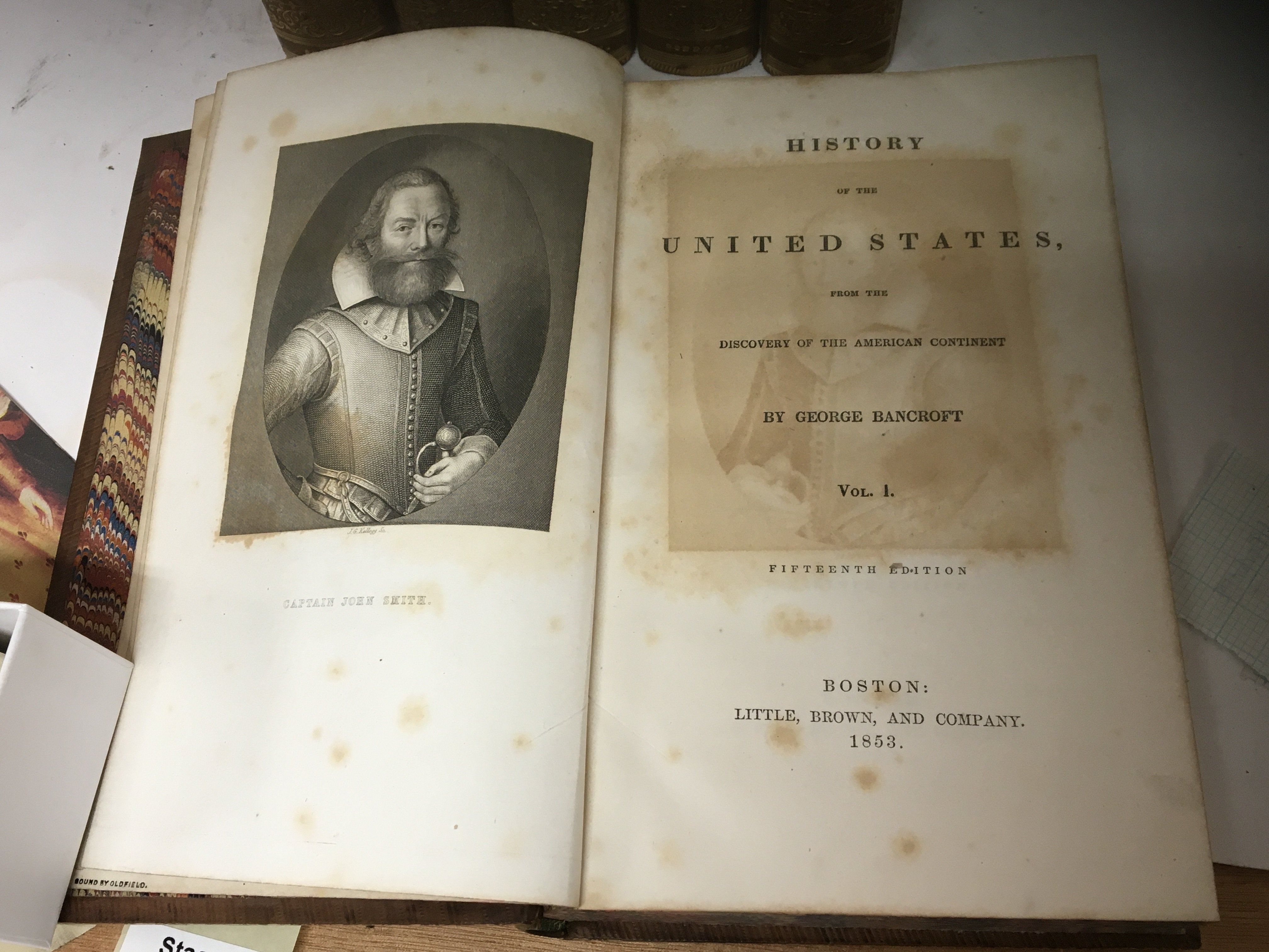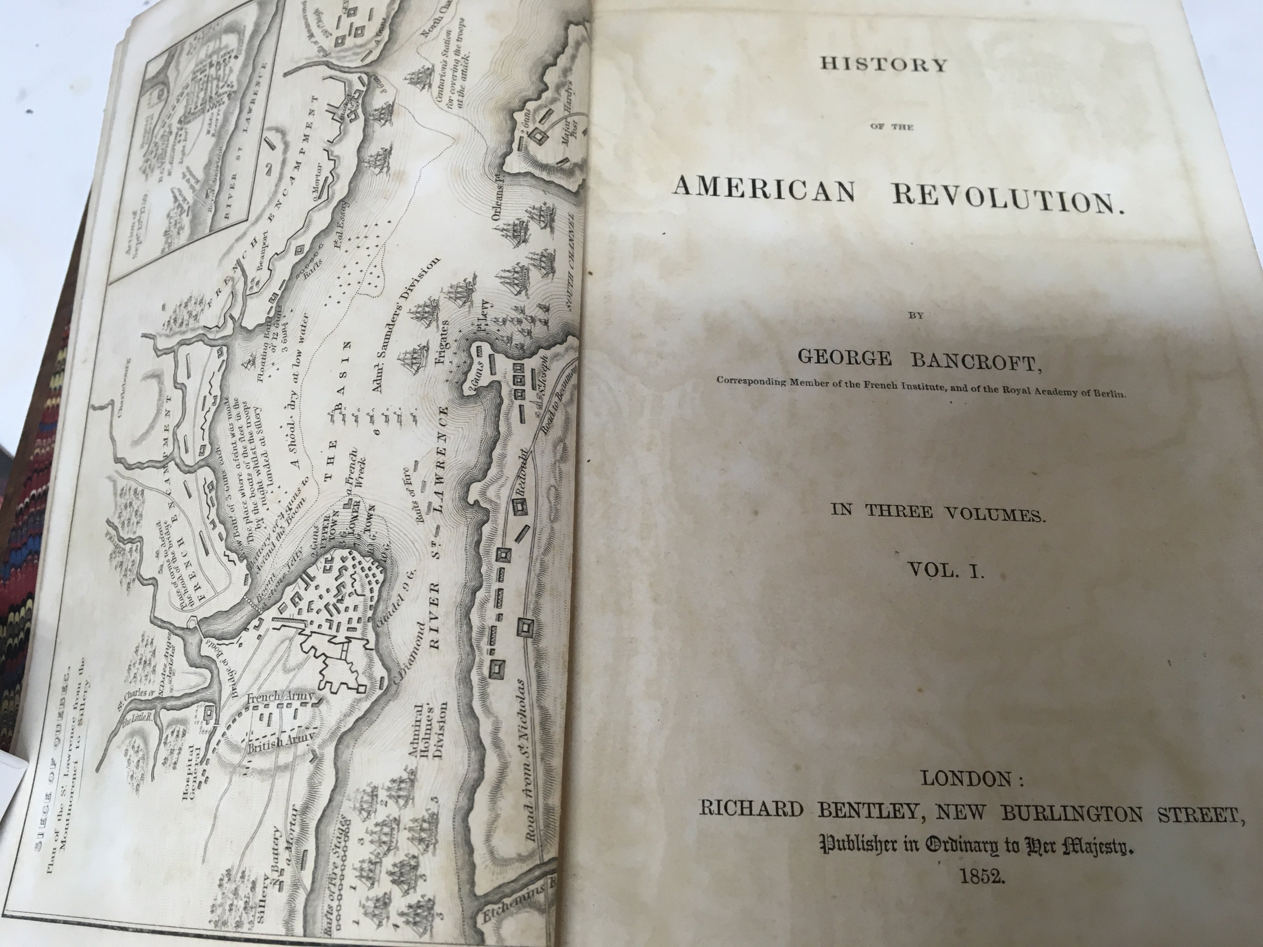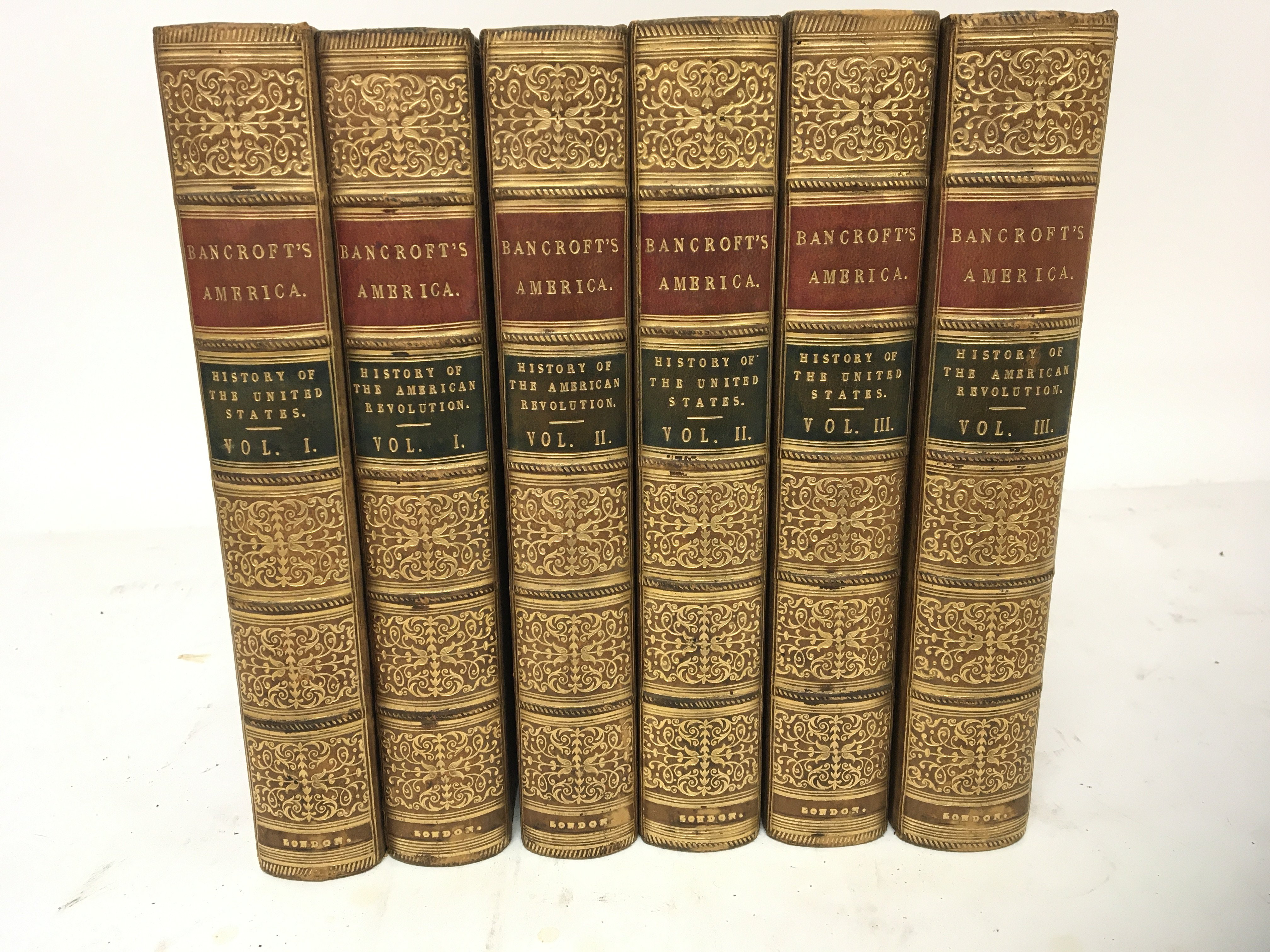 A set of tooled leather books Bancrofts America History of The United States and History of the American Revolution by George Bancroft dated 1852 and 1853 onwards. Two sets of three volumes (6)