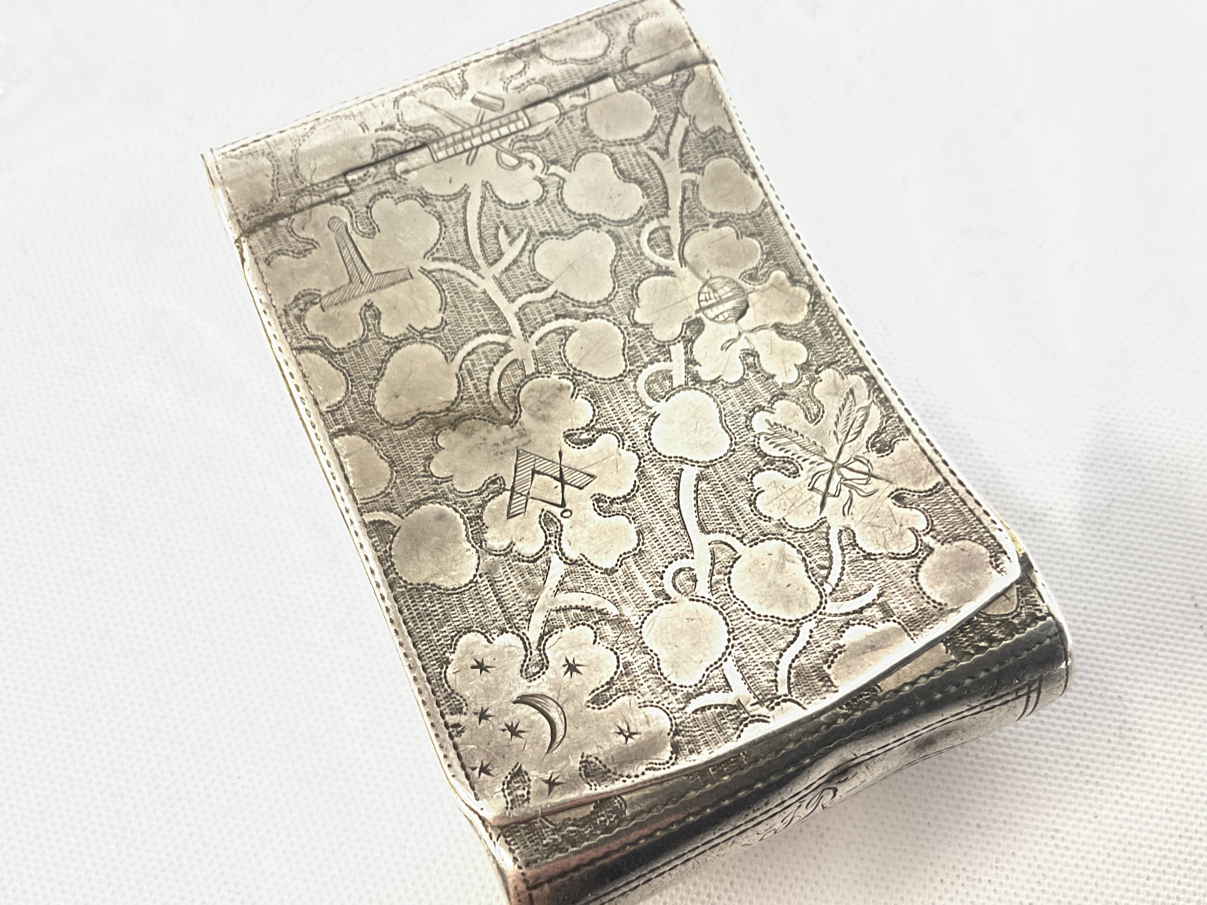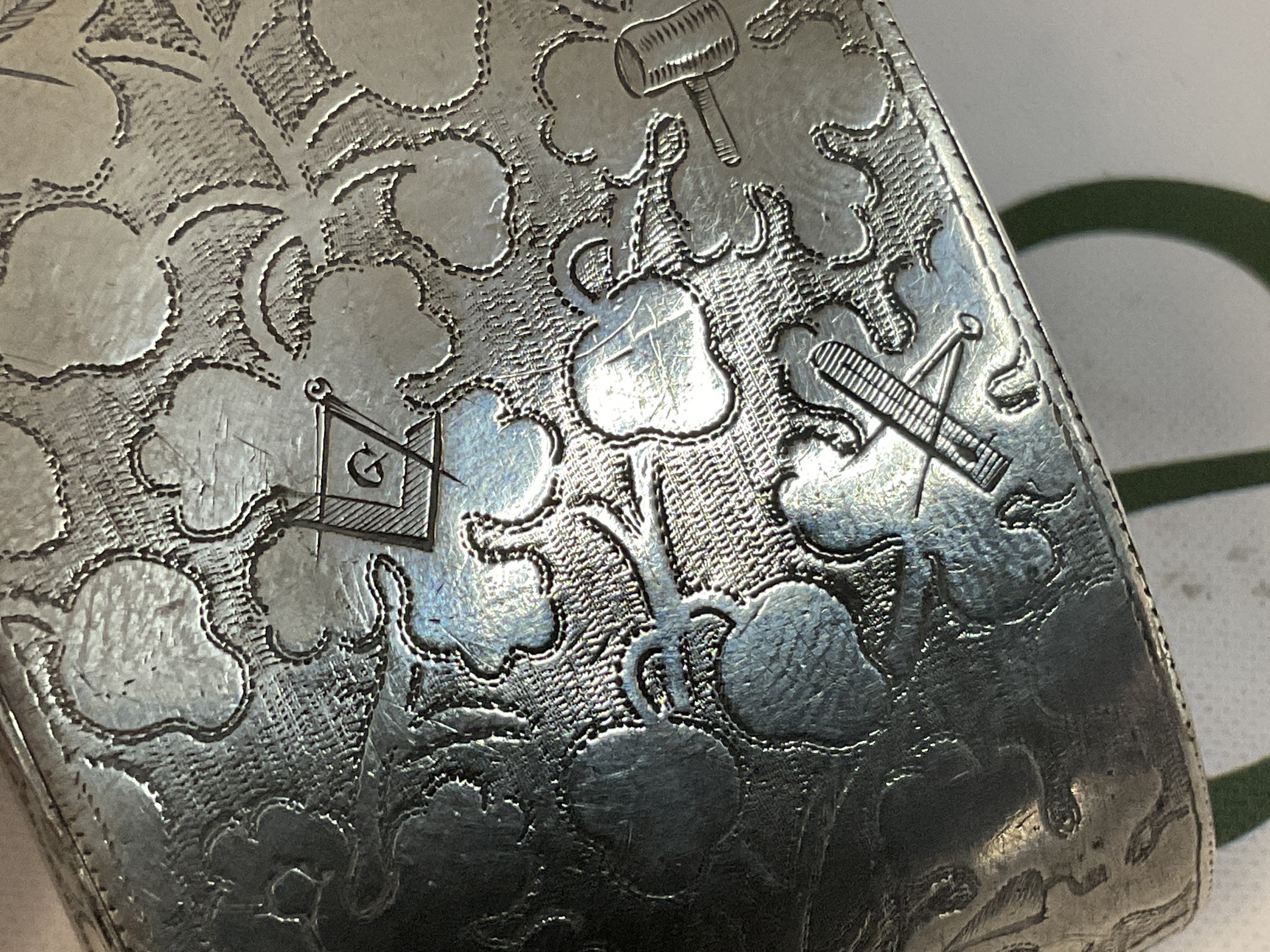 A Masonic silver hallmarked Vesta case marked 1809. Postage category A