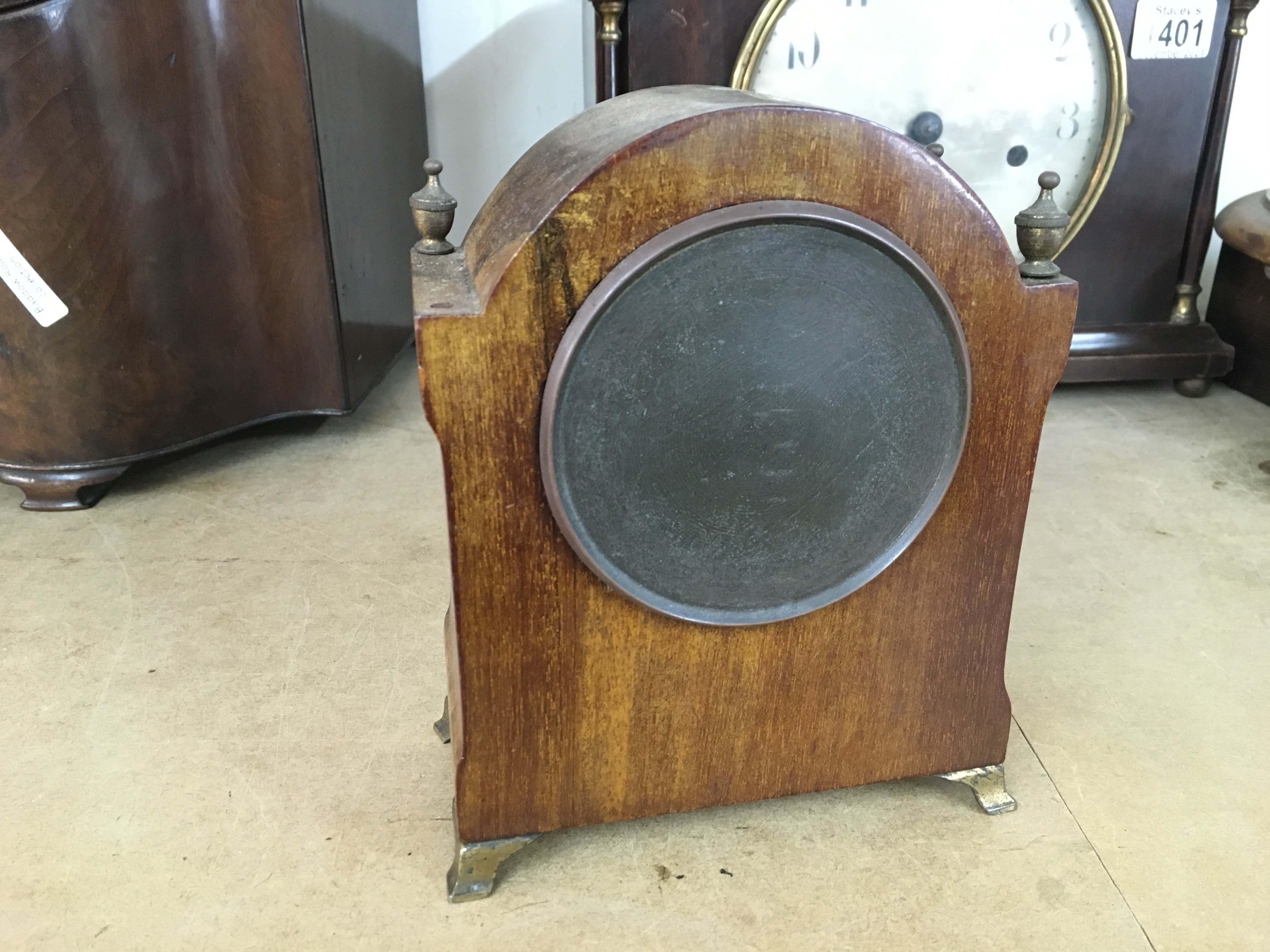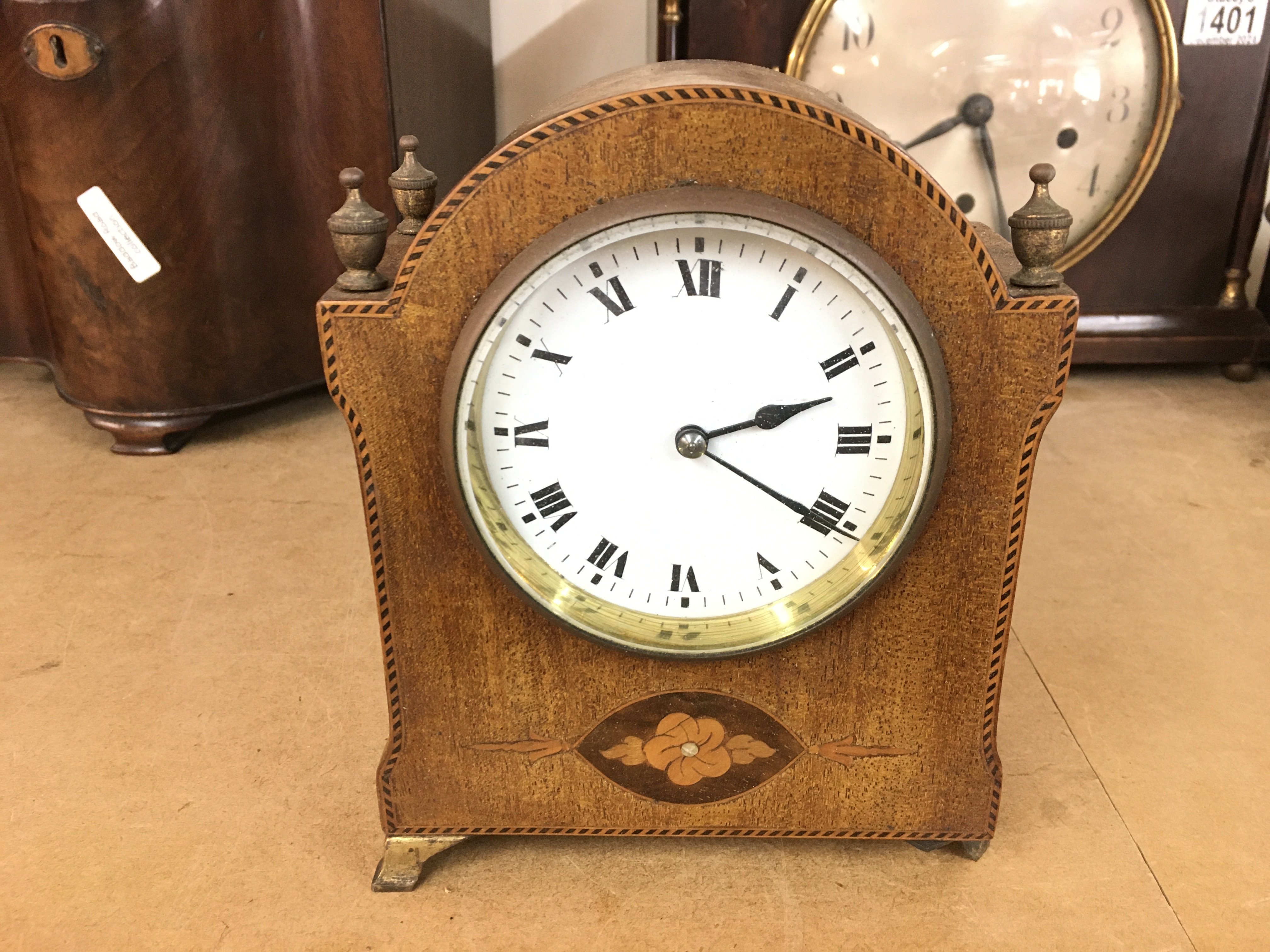 A small Edwardian mantle clock. 18cm tall by 14cm wide.