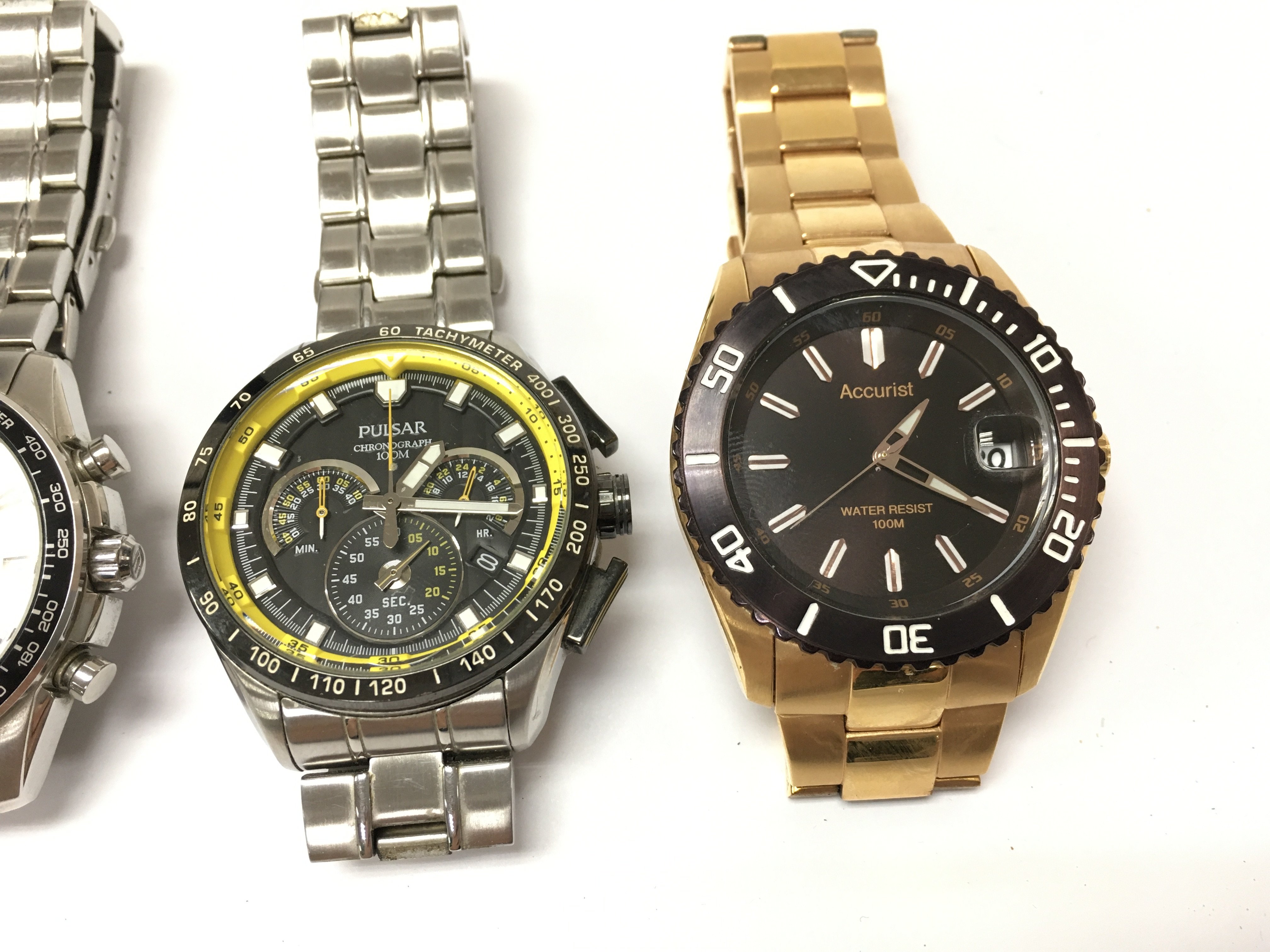 Three gents watches including pulsar chronograph and a accurist and a Casio Edifice. Postage B