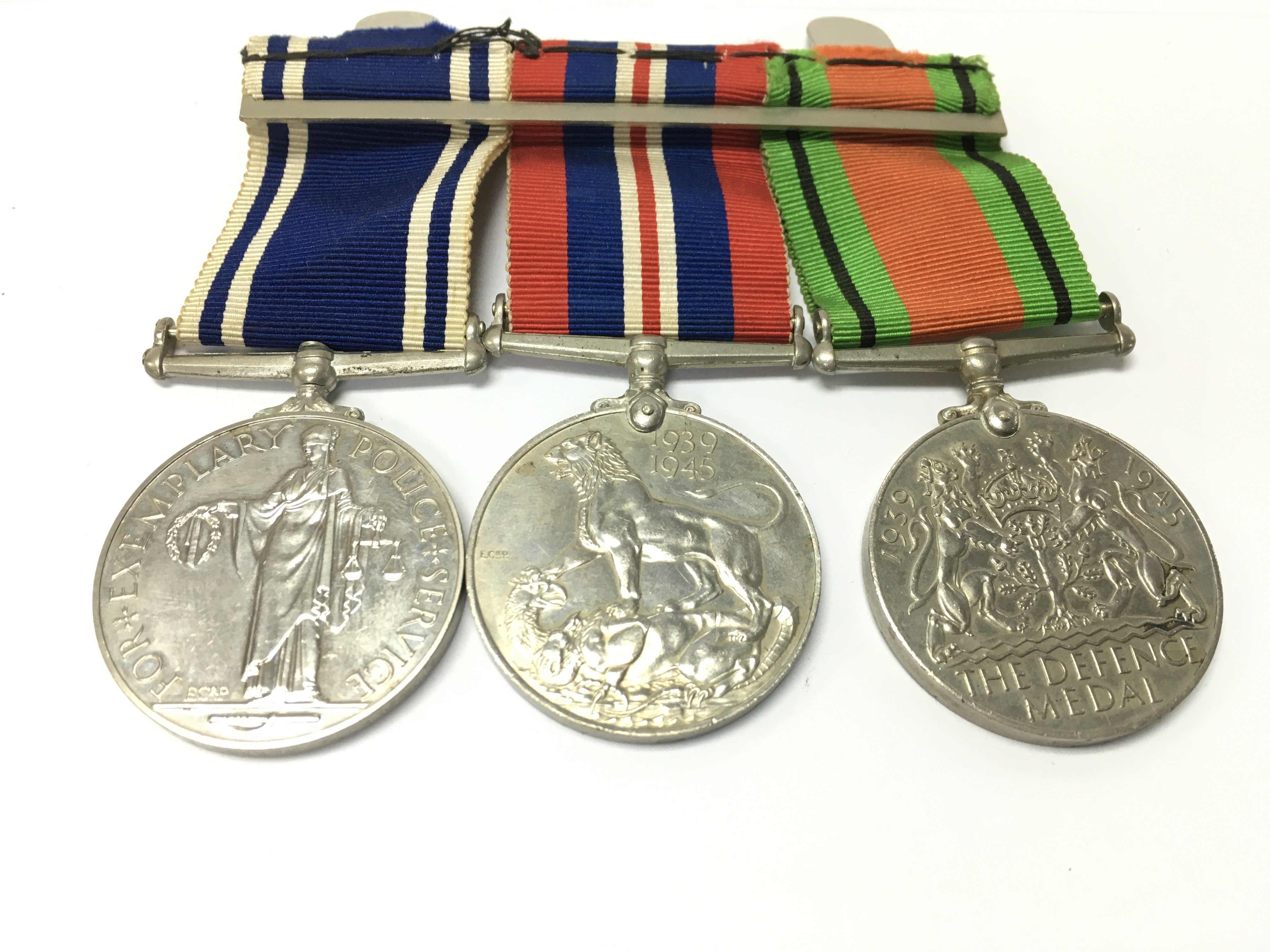 Three medals including an exemplary police service medal awarded to Stn . Sergt Alfred E Stevenson Postage B